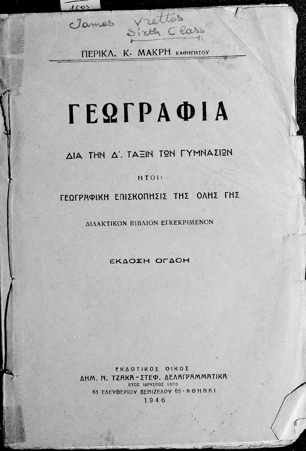 Τάξη:  Δ' Γυμνασίου παλαιού τύπου / ΣΤ΄ Γυμνασίου νέου τύπου