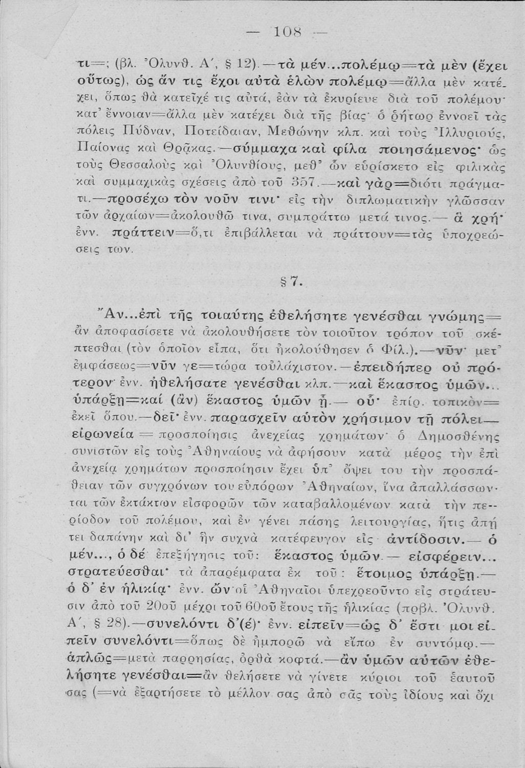 Σχολικό εγχειρίδιο Αρχαίων Ελληνικών Δ΄ Γυμνασίου που περιλαμβάνει εισαγωγή στη ζωή και στο έργο του Δημοσθένη, τον Α΄ κατά Φιλίππου, και τους Α΄ και Β΄ Ολυνθιακούς και ερμηνευτικά και ετυμολογικά σχόλια.
