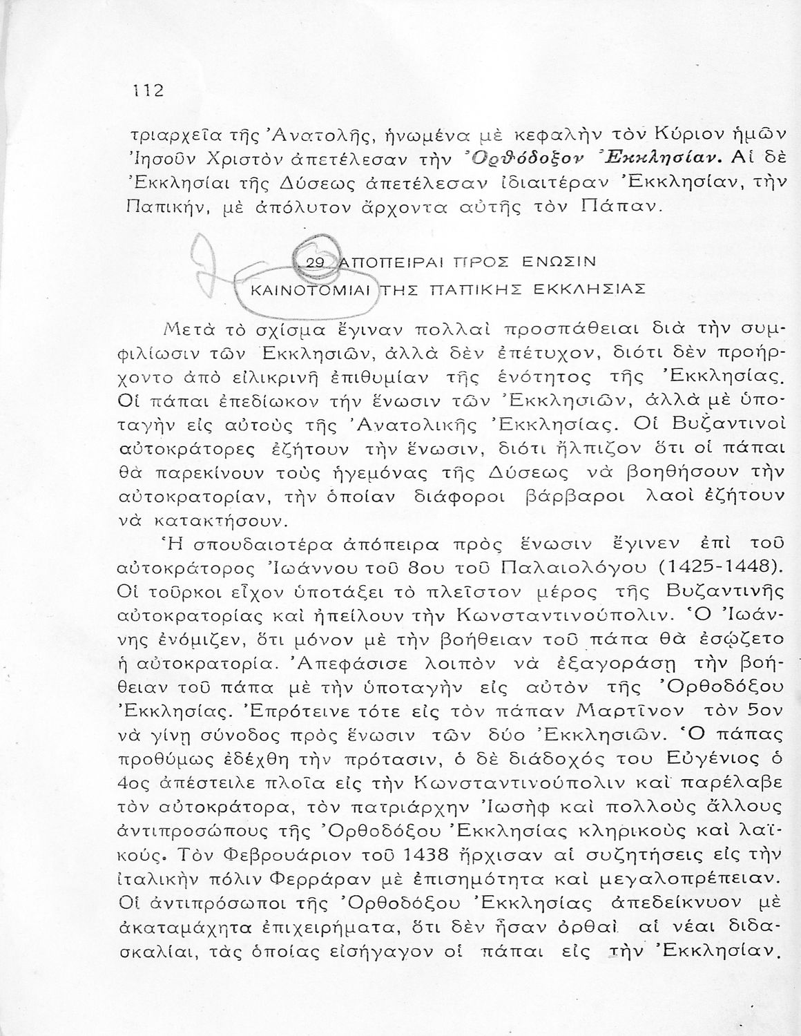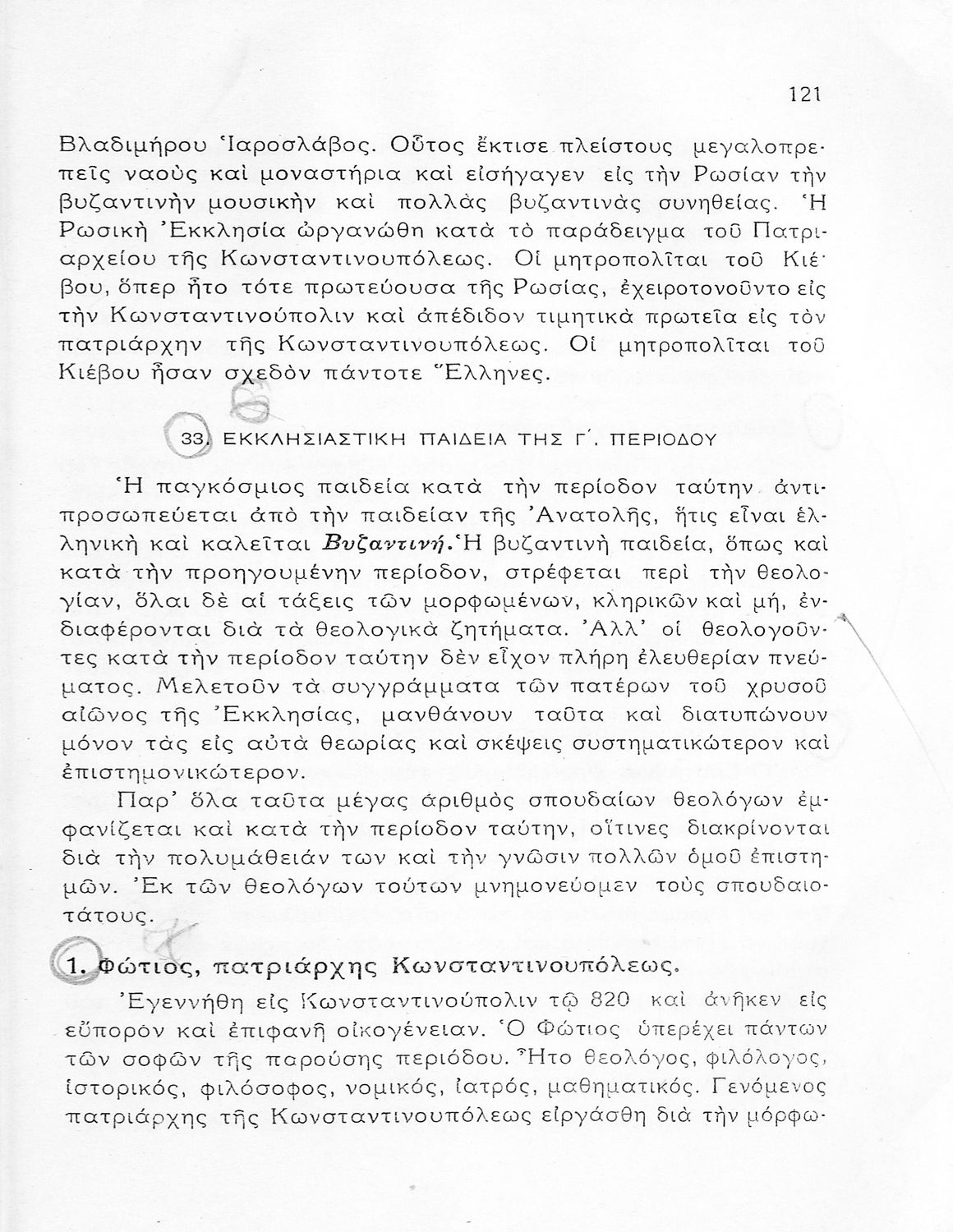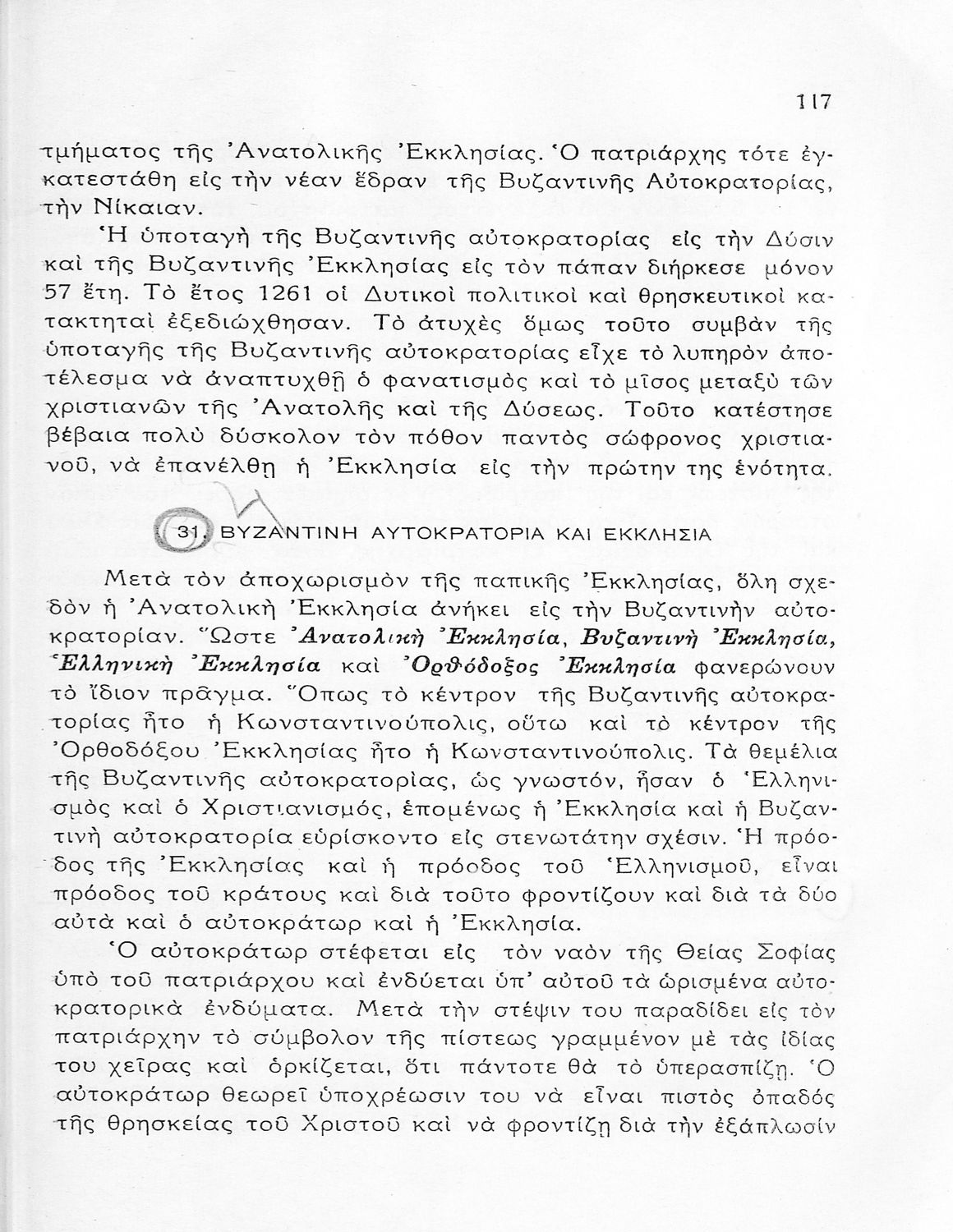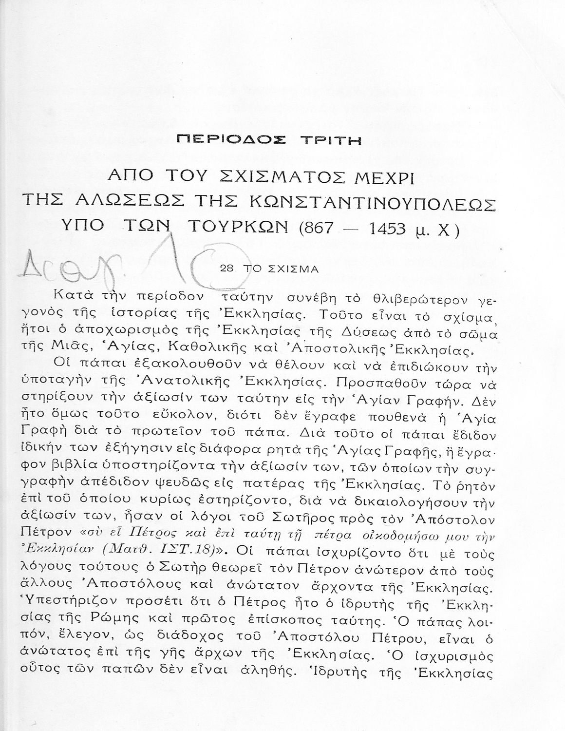 Σχολικό εγχειρίδιο Θρησκευτικών για την Δ' Γυμνασίου παλαιού τύπου που περιέχει την ιστορία της ορθόδοξης Εκκλησίας από την ίδρυσή της μέχρι την δημιουργία της Εκκλησίας της Ελλάδας.