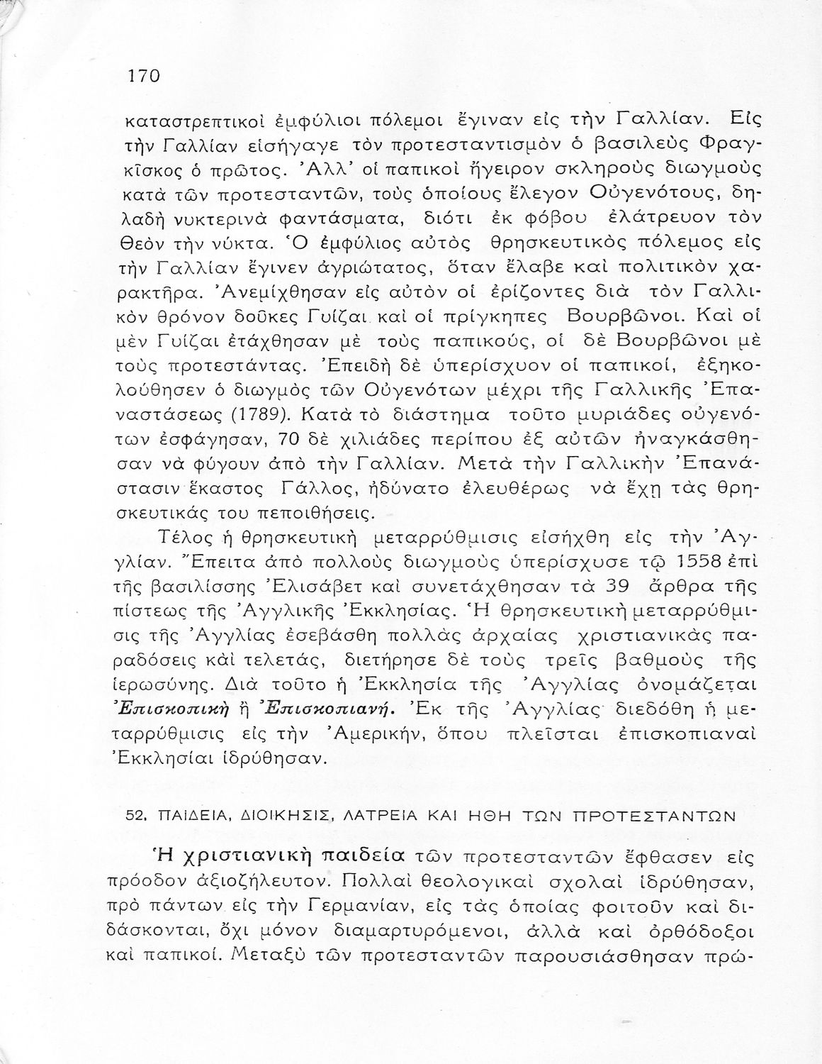 Σχολικό εγχειρίδιο Θρησκευτικών για την Δ' Γυμνασίου παλαιού τύπου που περιέχει την ιστορία της ορθόδοξης Εκκλησίας από την ίδρυσή της μέχρι την δημιουργία της Εκκλησίας της Ελλάδας.