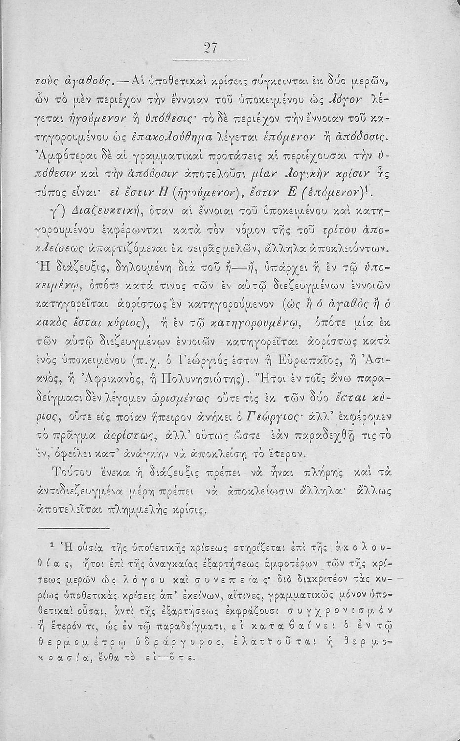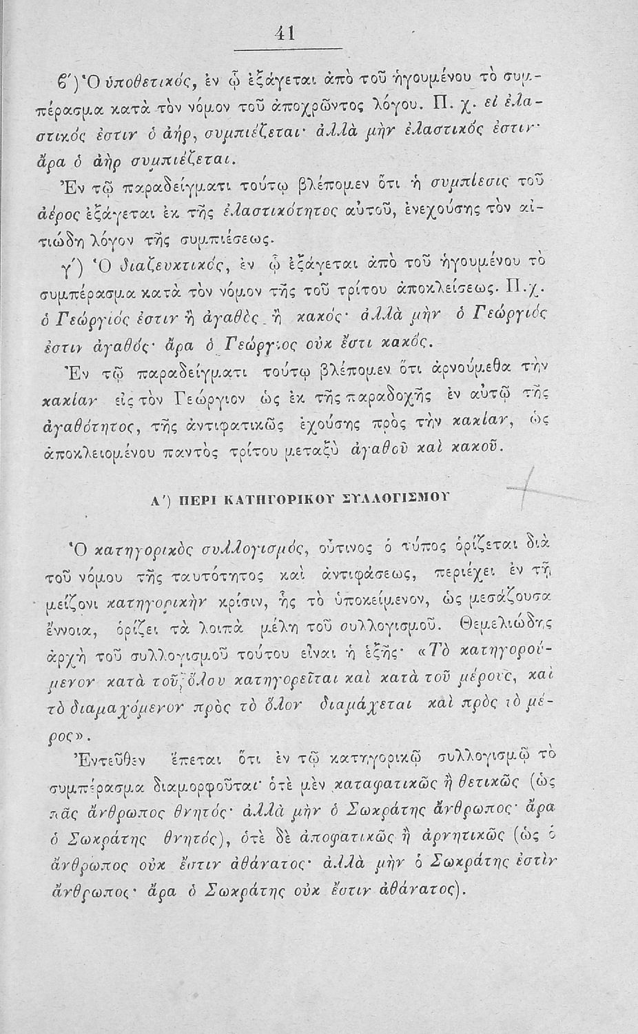 Σχολικό εγχειρίδιο Λογικής Γυμνασίου που είναι χωρισμένο σε στοιχειολογία και μεθοδολογία. Ο συγγραφέας ήταν Δρ Φιλοσοφίας και καθηγητής στη Ριζάρειο Σχολή και το Αρσάκειο Παρθεναγωγείο.