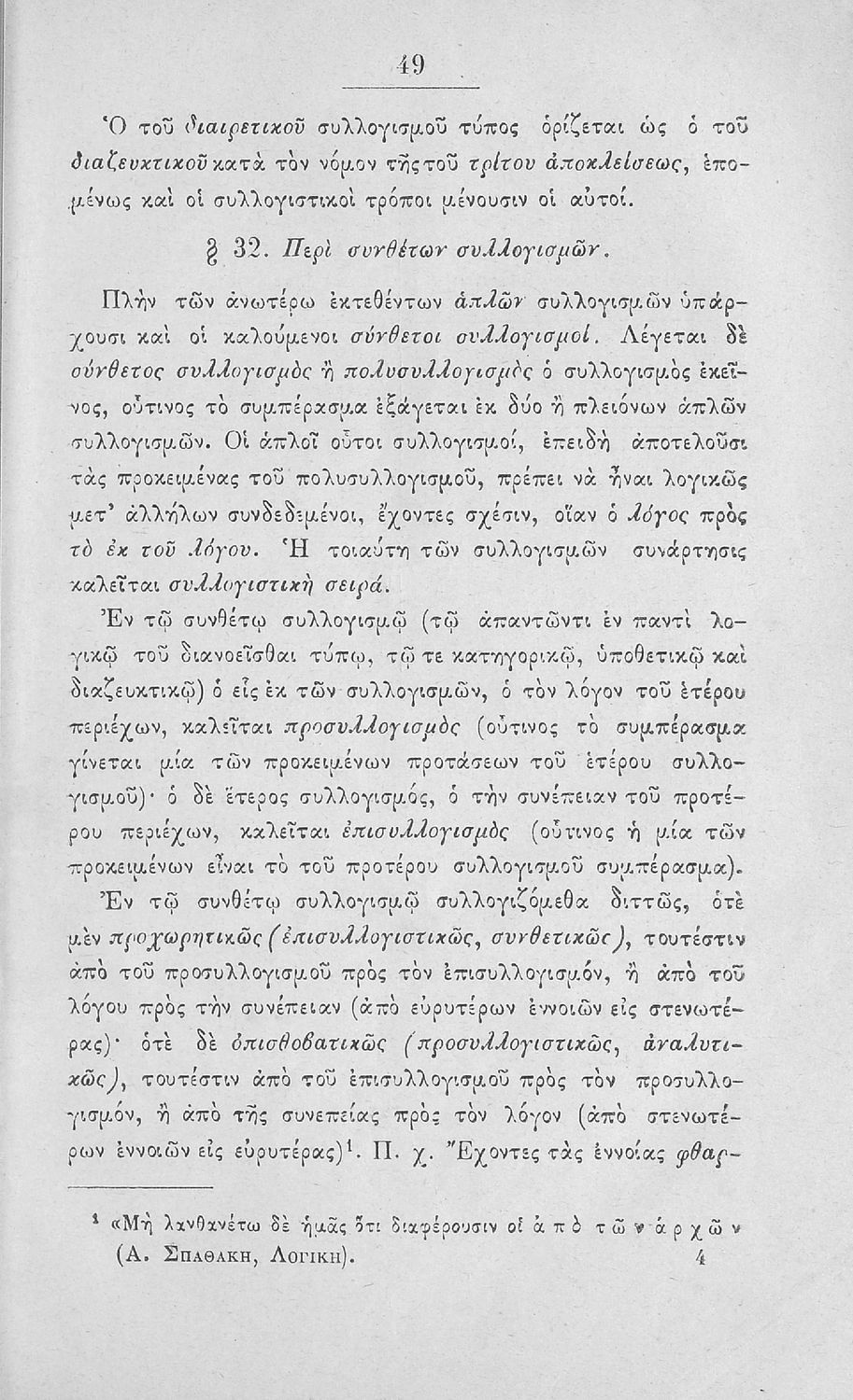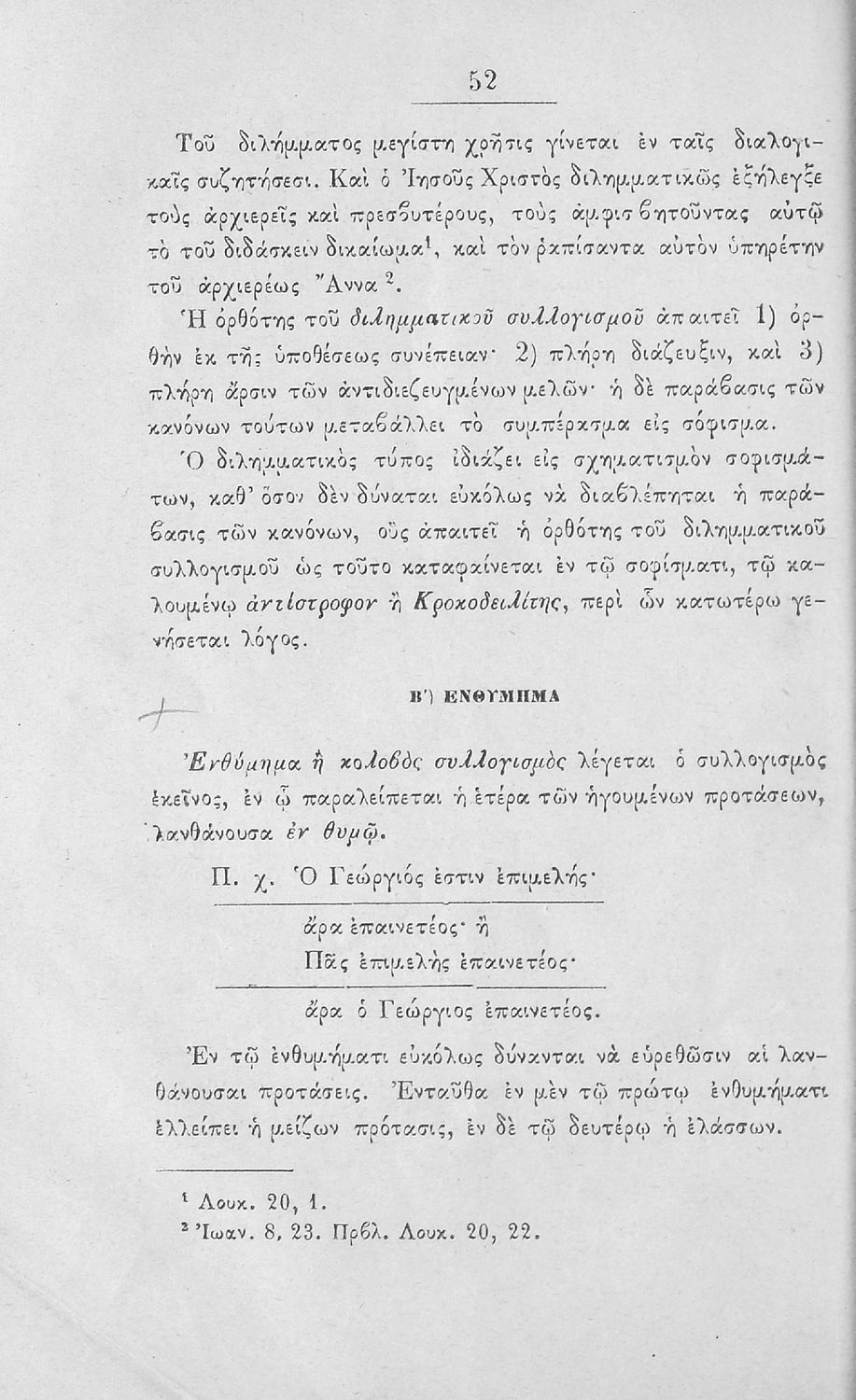 Σχολικό εγχειρίδιο Λογικής Γυμνασίου που είναι χωρισμένο σε στοιχειολογία και μεθοδολογία. Ο συγγραφέας ήταν Δρ Φιλοσοφίας και καθηγητής στη Ριζάρειο Σχολή και το Αρσάκειο Παρθεναγωγείο.