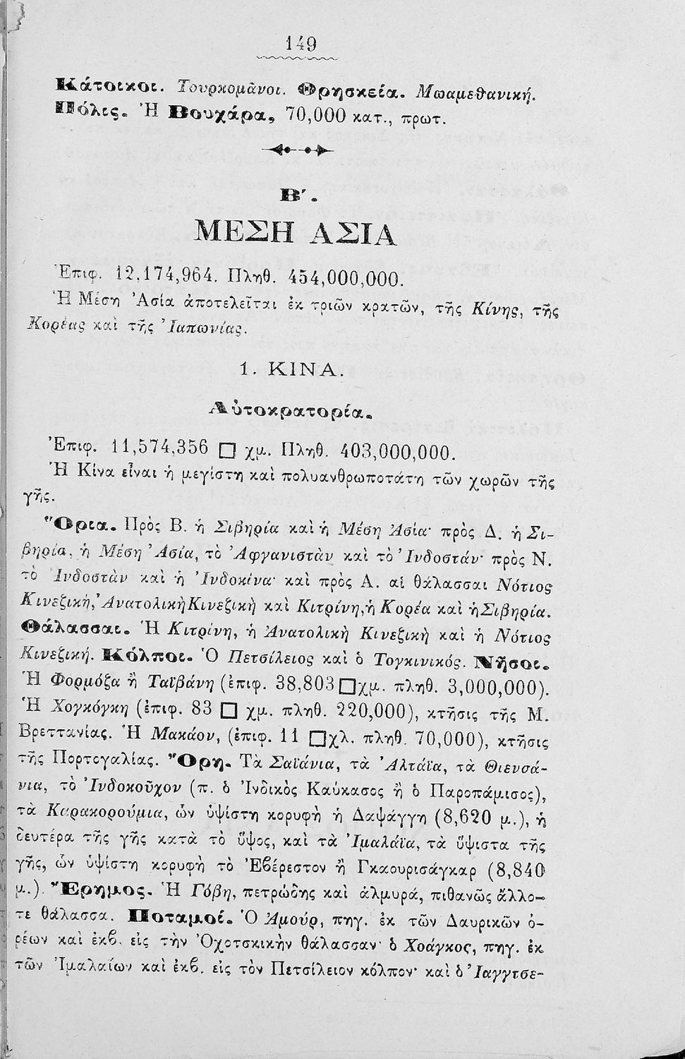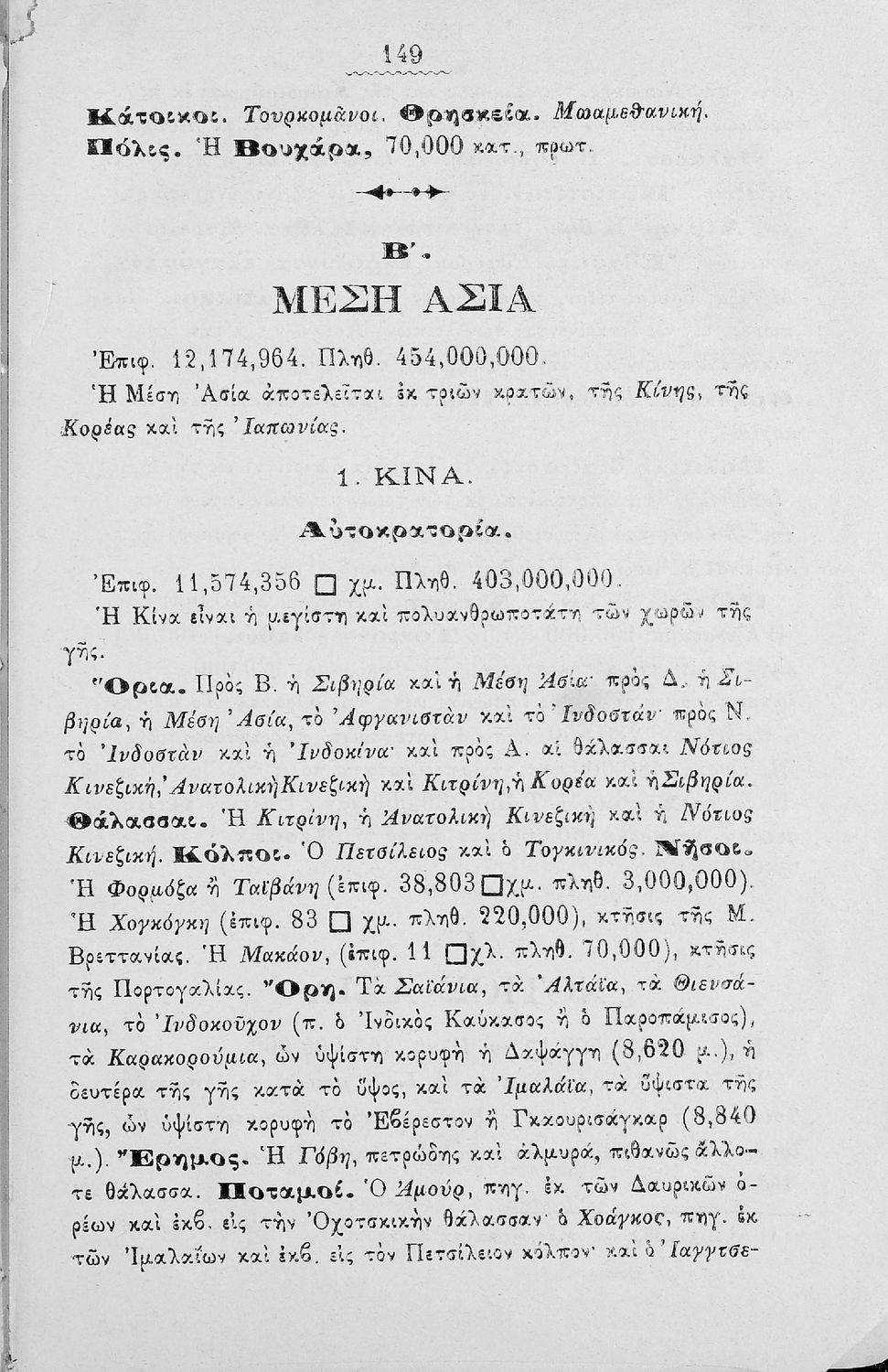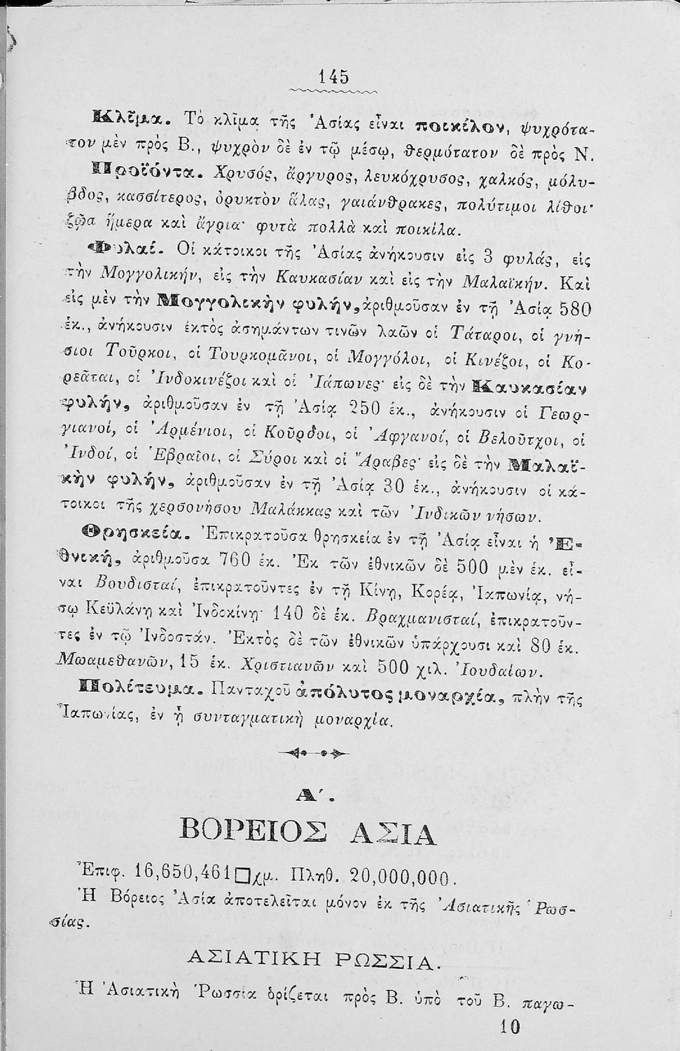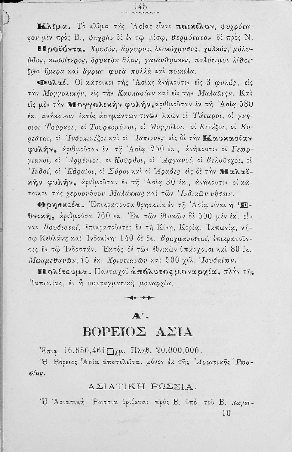 Σχολικό εγχειρίδιο Γεωγραφίας για τα Παρθεναγωγεία και τα Ελληνικά Σχολεία που περιλαμβάνει εισαγωγή στη φυσική, μαθηματική και πολιτική γεωγραφία και εξετάζει την Ελλάδα και ενδεικτικές χώρες και περιοχές από τις πέντε ηπείρους.