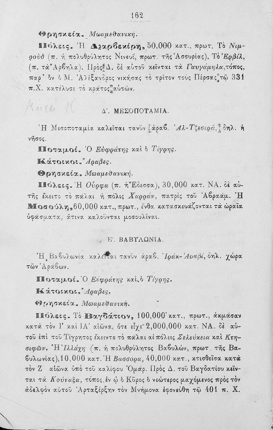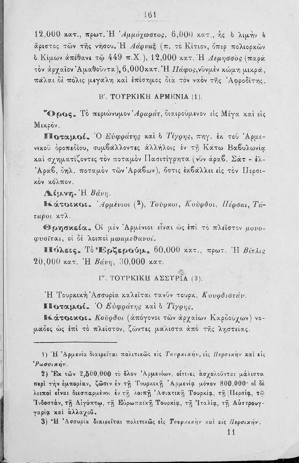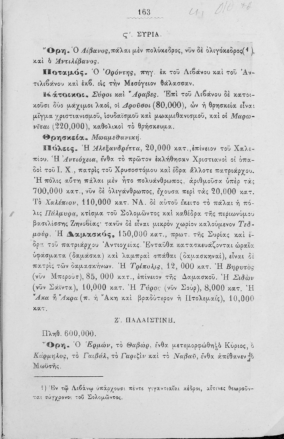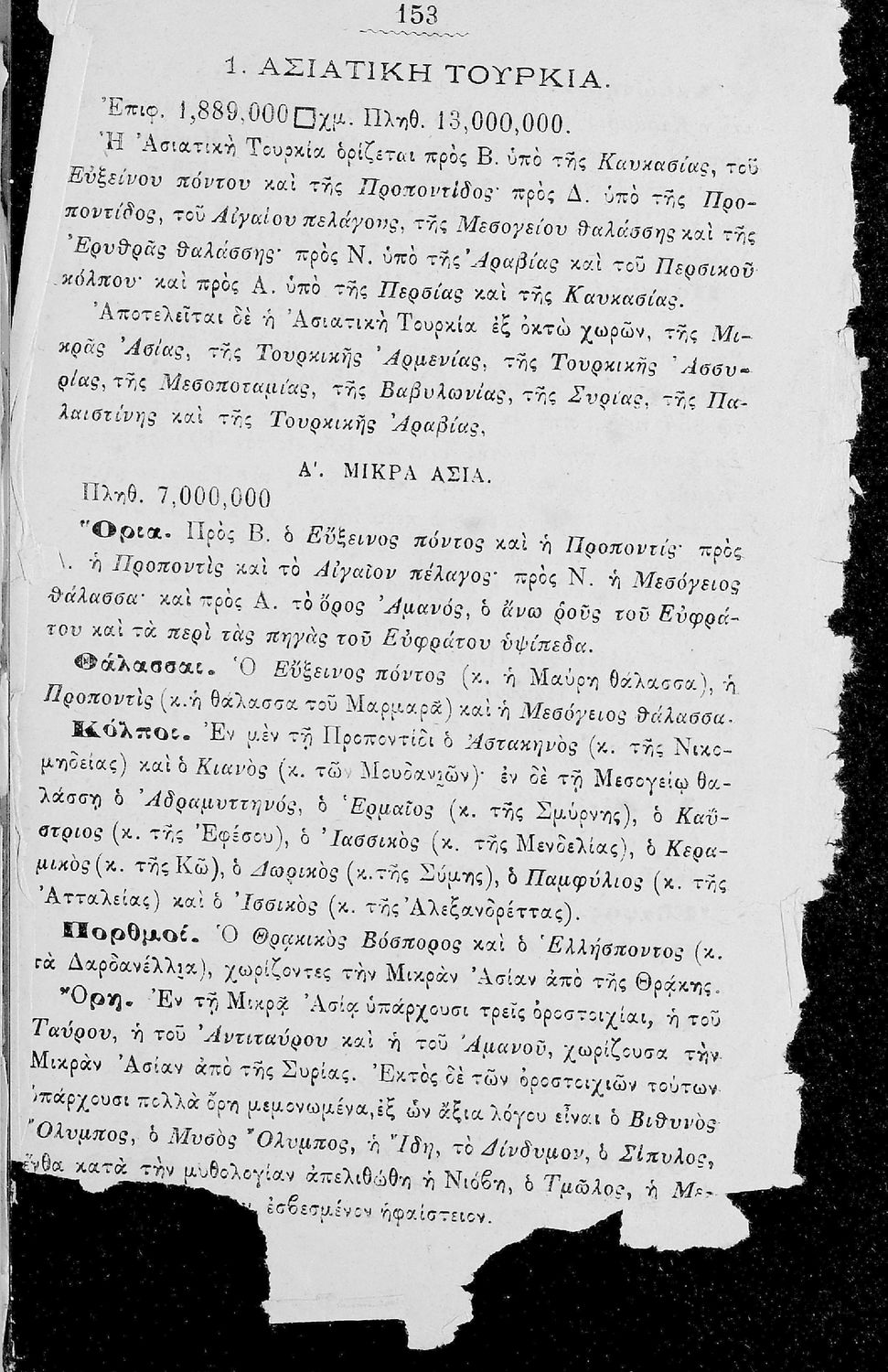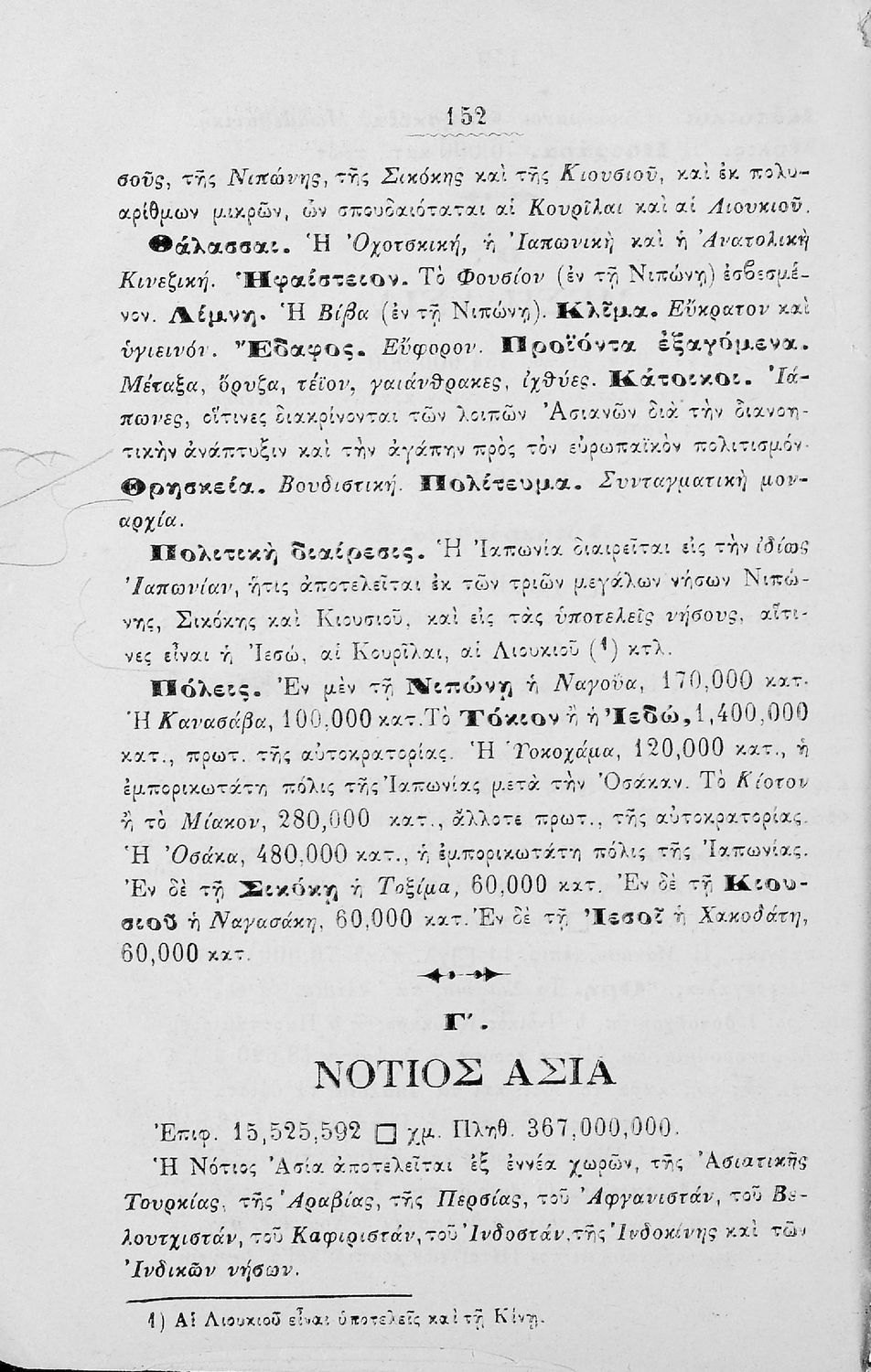 Σχολικό εγχειρίδιο Γεωγραφίας για τα Παρθεναγωγεία και τα Ελληνικά Σχολεία που περιλαμβάνει εισαγωγή στη φυσική, μαθηματική και πολιτική γεωγραφία και εξετάζει την Ελλάδα και ενδεικτικές χώρες και περιοχές από τις πέντε ηπείρους.
