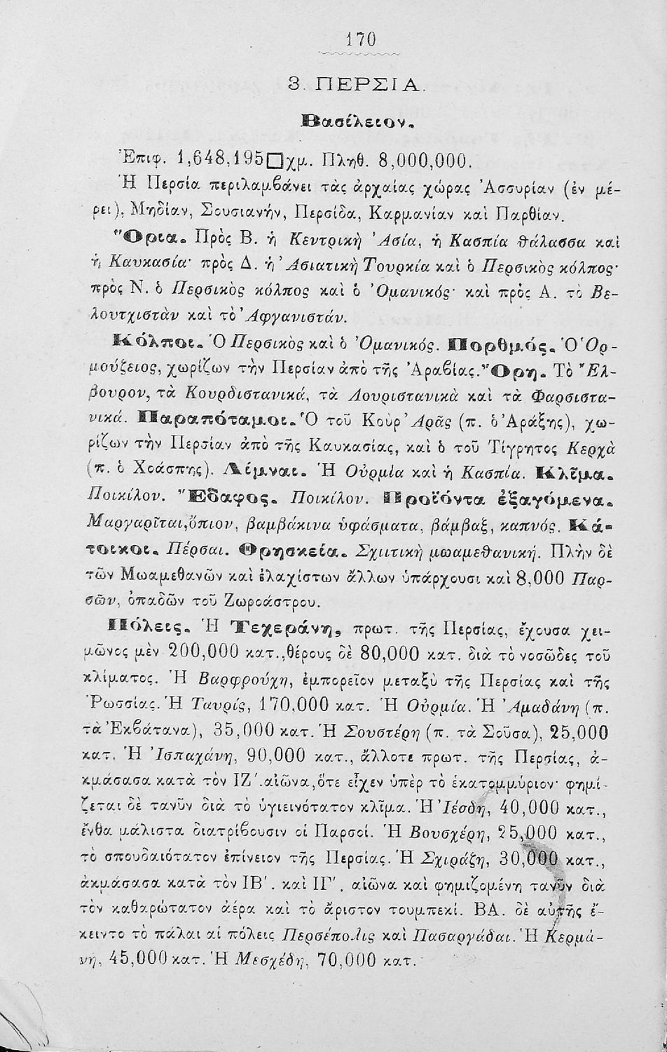 Σχολικό εγχειρίδιο Γεωγραφίας για τα Ελληνικά Σχολεία, τα Γυμνάσια, τα Διδασκαλεία, τα Παρθεναγωγεία και τις Εμπορικές-Στρατιωτικές-Ναυτικές Σχολές που περιέχει εισαγωγή στην κοσμογραφία, τη μαθηματική, ...