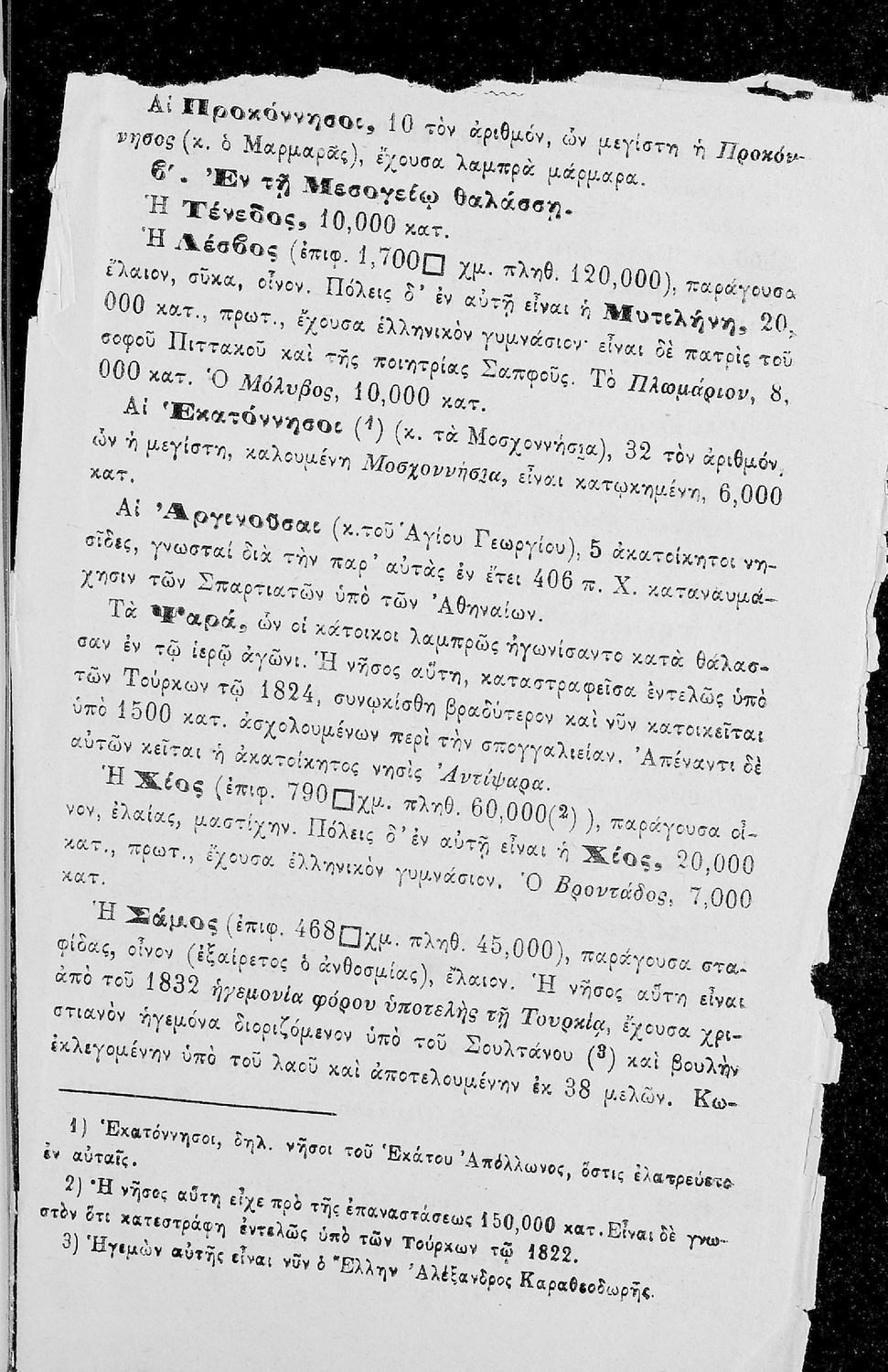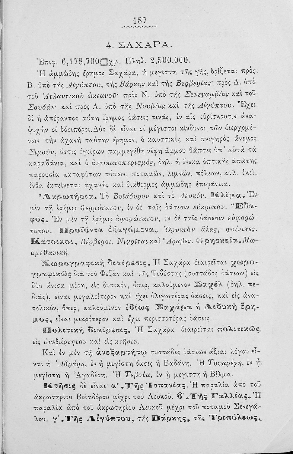 Σχολικό εγχειρίδιο Γεωγραφίας για τα Ελληνικά Σχολεία και Παρθεναγωγεία που περιλαμβάνει εισαγωγή στη φυσική, πολιτική και οικονομική γεωγραφία και μια γενική επισκόπηση της Ελλάδας και της Ευρωπαϊκής Τουρκίας