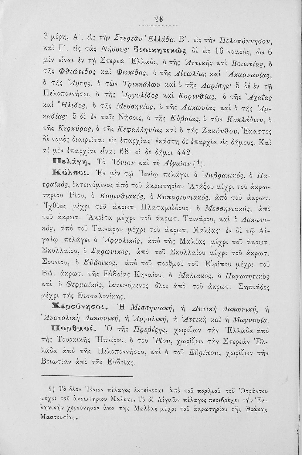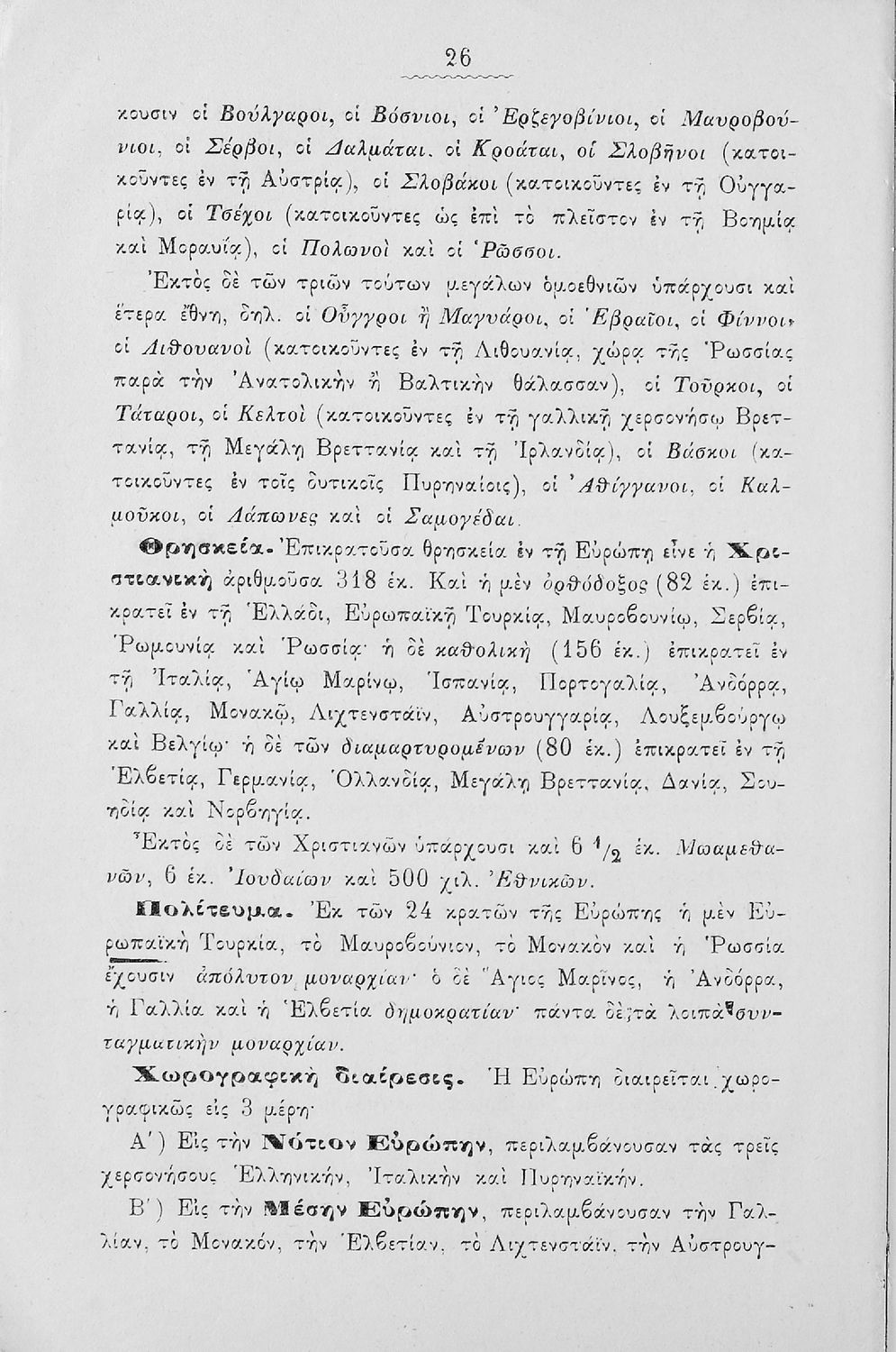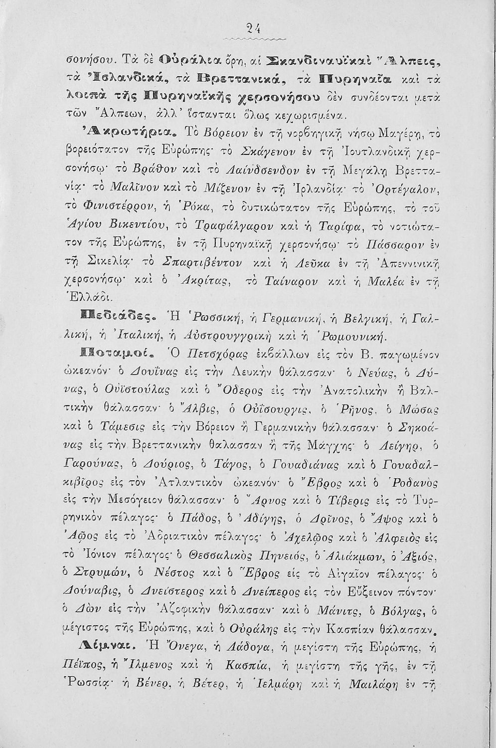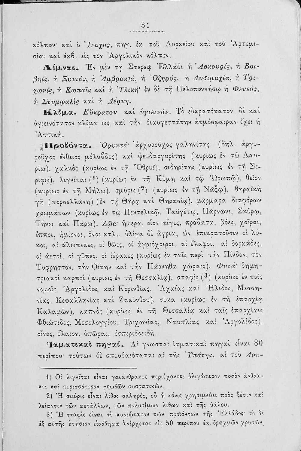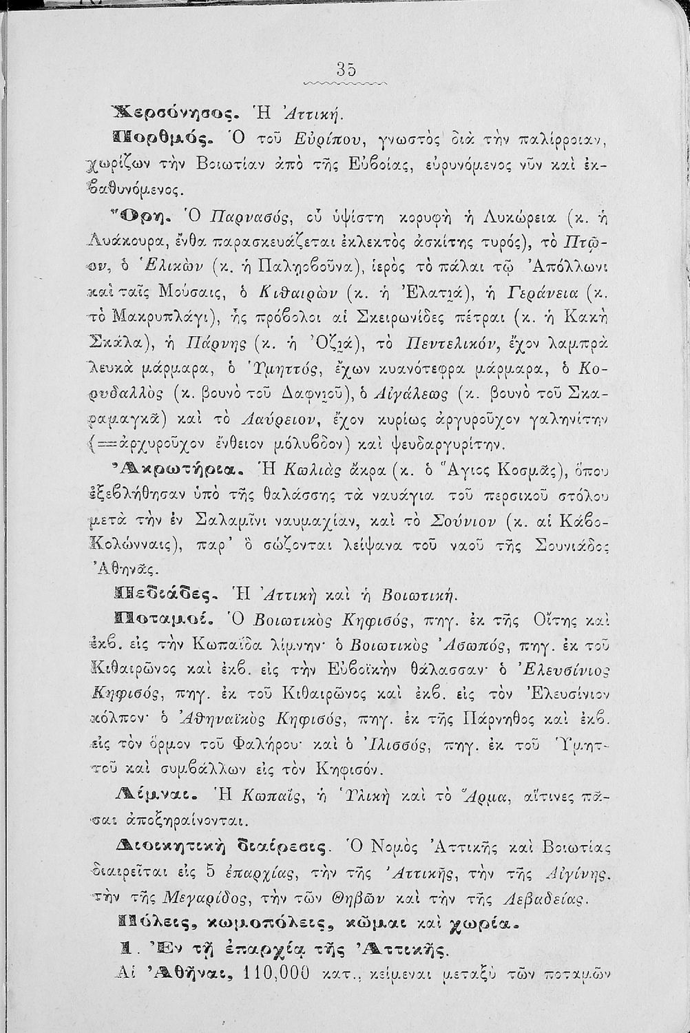 Σχολικό εγχειρίδιο Γεωγραφίας για τα Παρθεναγωγεία και τα Ελληνικά Σχολεία που περιλαμβάνει εισαγωγή στη φυσική, μαθηματική και πολιτική γεωγραφία και εξετάζει την Ελλάδα και ενδεικτικές χώρες και περιοχές από τις πέντε ηπείρους.