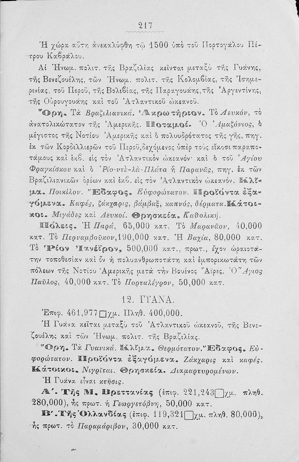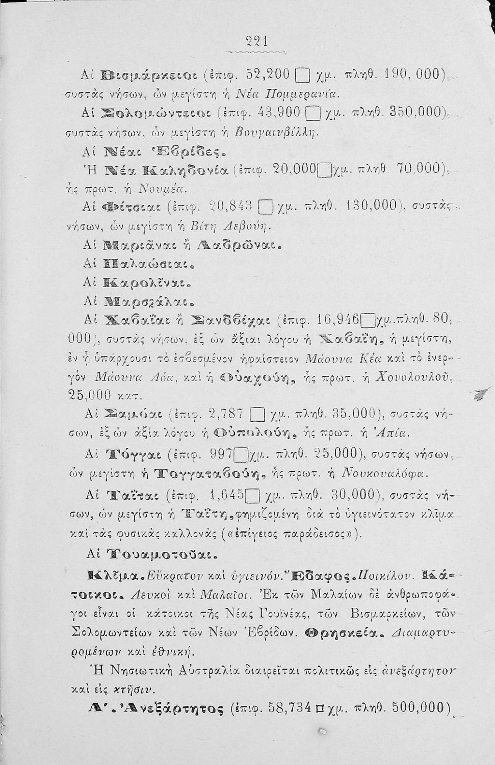 Σχολικό εγχειρίδιο Γεωγραφίας για τους μαθητές των Ελληνικών Σχολείων και Παρθεναγωγείων που περιλαμβάνει μια γενική επισκόπηση της πολιτικής, οικονομικής και φυσικής γεωγραφίας της Ελλάδας και ενδεικτικών ...