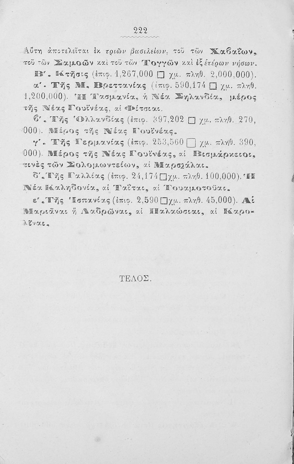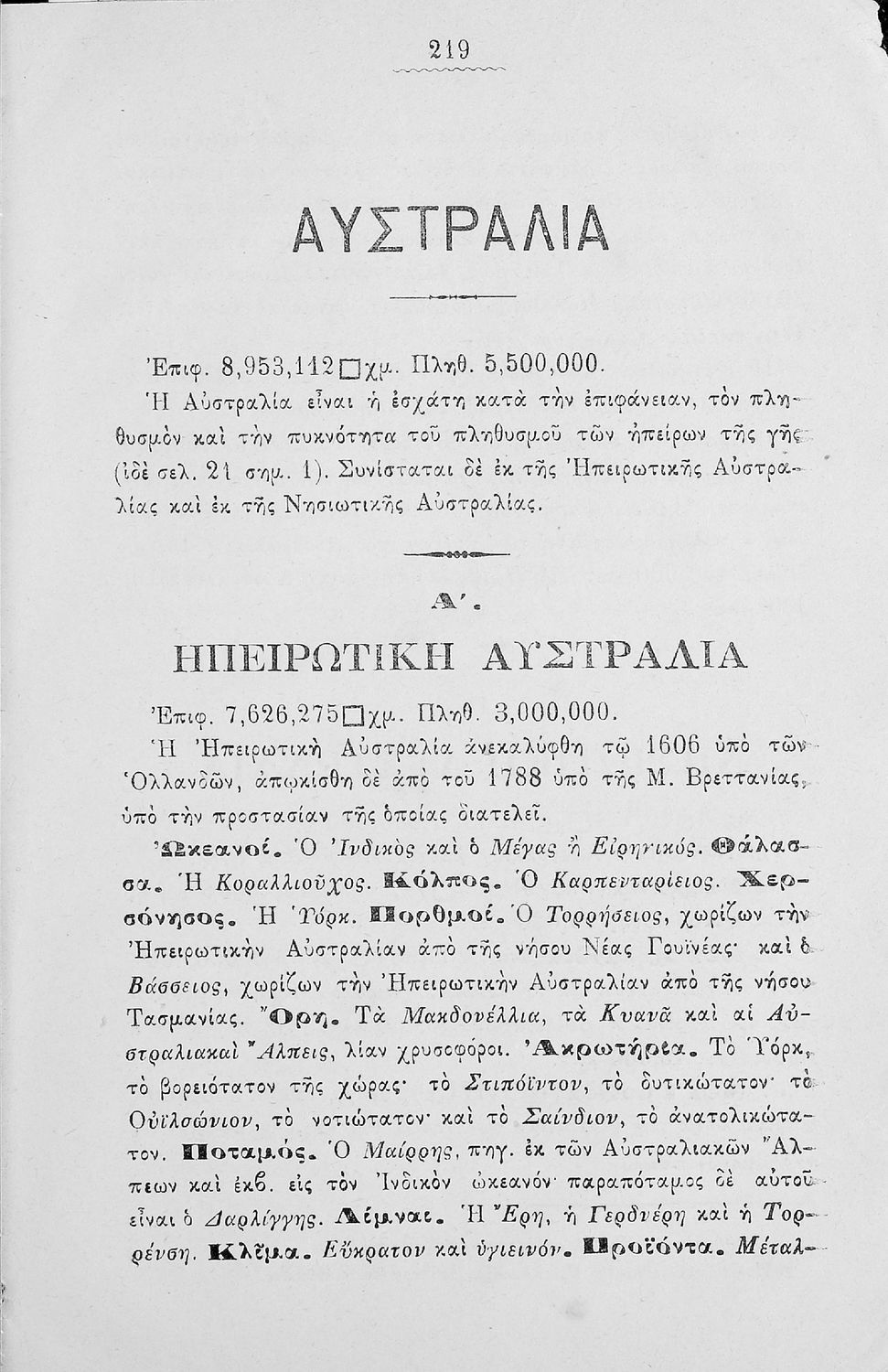 Σχολικό εγχειρίδιο Γεωγραφίας για τα Ελληνικά Σχολεία και Παρθεναγωγεία που περιλαμβάνει εισαγωγή στη φυσική, πολιτική και οικονομική γεωγραφία και μια γενική επισκόπηση της Ελλάδας και της Ευρωπαϊκής Τουρκίας