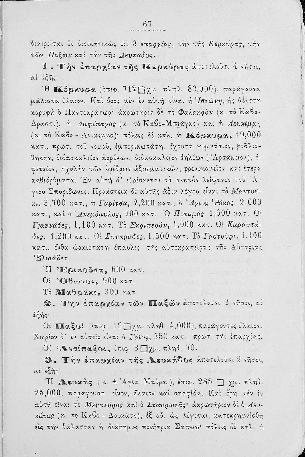 Σχολικό εγχειρίδιο Γεωγραφίας για τους μαθητές των Ελληνικών Σχολείων και Παρθεναγωγείων που περιλαμβάνει μια γενική επισκόπηση της πολιτικής, οικονομικής και φυσικής γεωγραφίας της Ελλάδας και ενδεικτικών ...