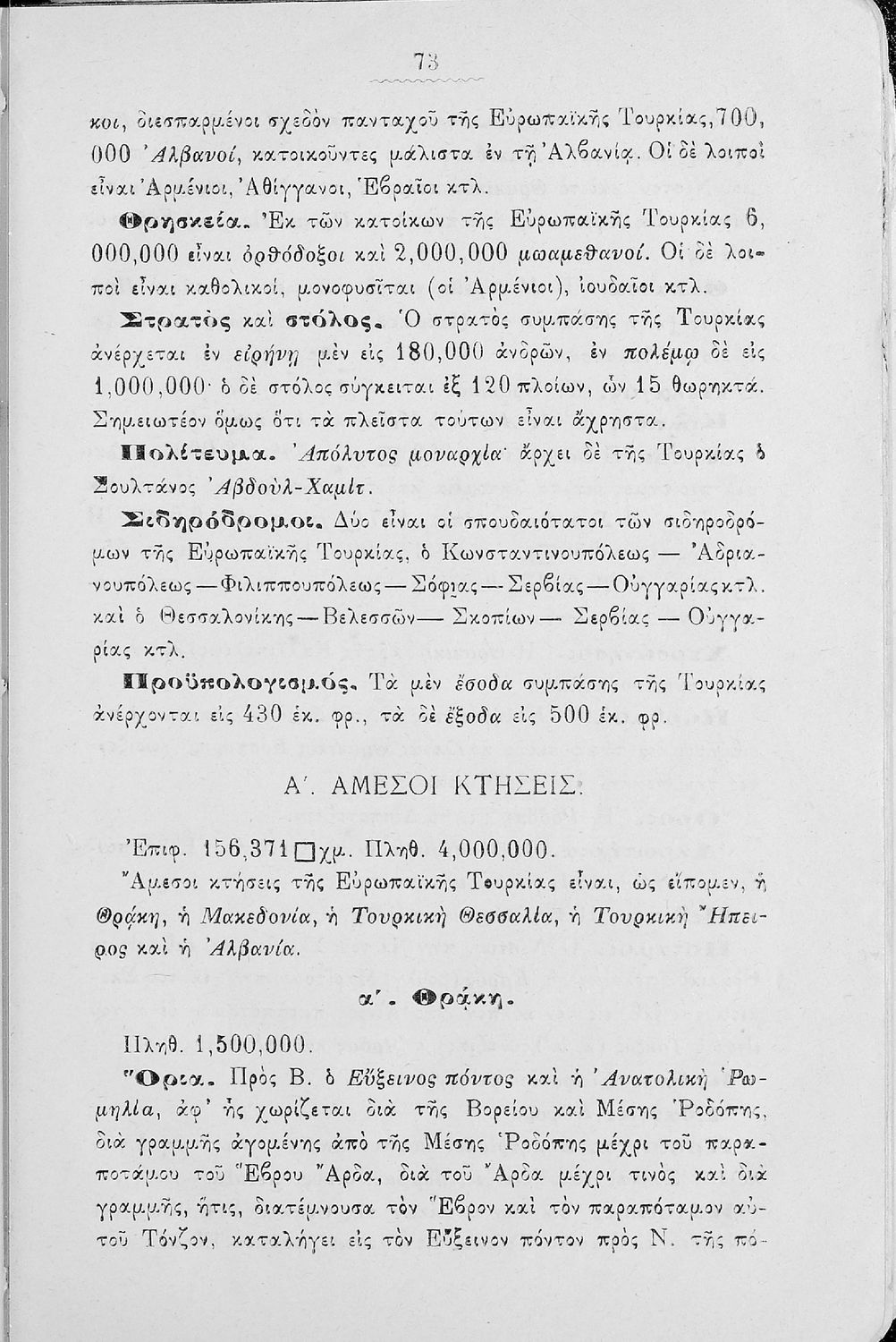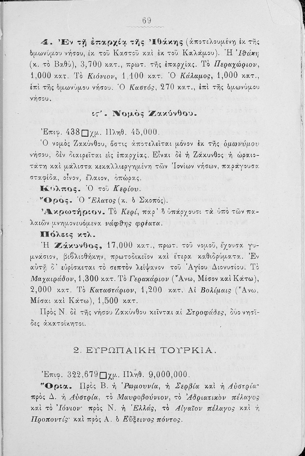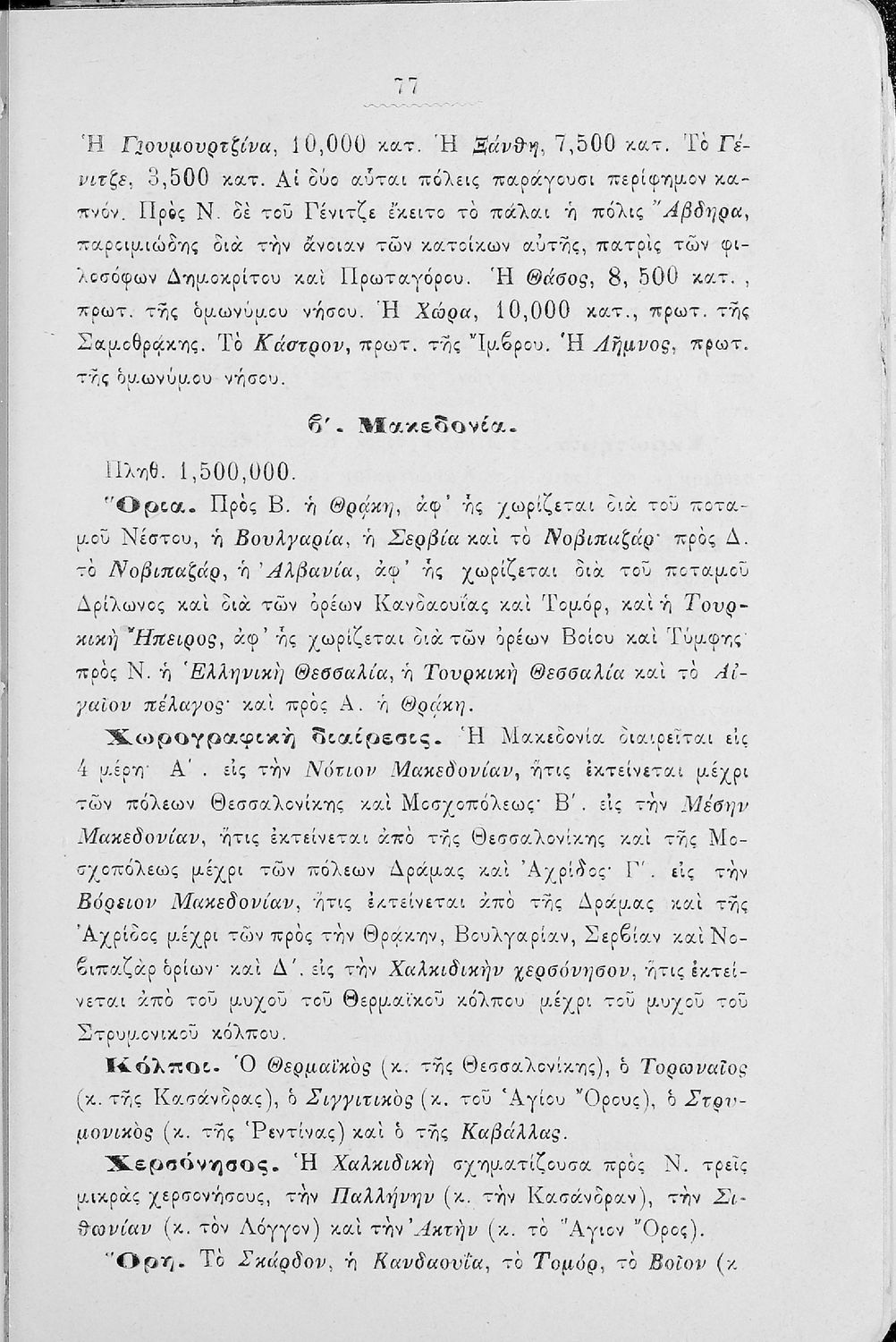 Σχολικό εγχειρίδιο Γεωγραφίας για τα Ελληνικά Σχολεία και Παρθεναγωγεία που περιλαμβάνει εισαγωγή στη φυσική, πολιτική και οικονομική γεωγραφία και μια γενική επισκόπηση της Ελλάδας και της Ευρωπαϊκής Τουρκίας