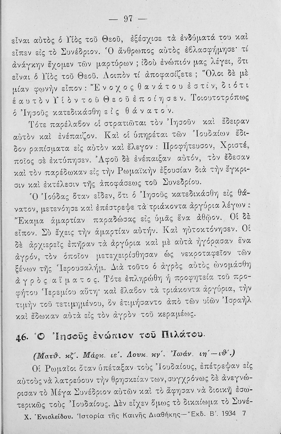 Τίτλος: Ιερά Ιστορία της Καινής Διαθήκης, προς χρήσιν των μαθητών της Δευτέρας Τάξεως των Ημιγυμνασίων, των Γυμνασίων, Πρακτικών Λυκείων ως και της αντιστοίχου των λοιπών Σχολείων της Μέσης Εκπαιδεύσεως