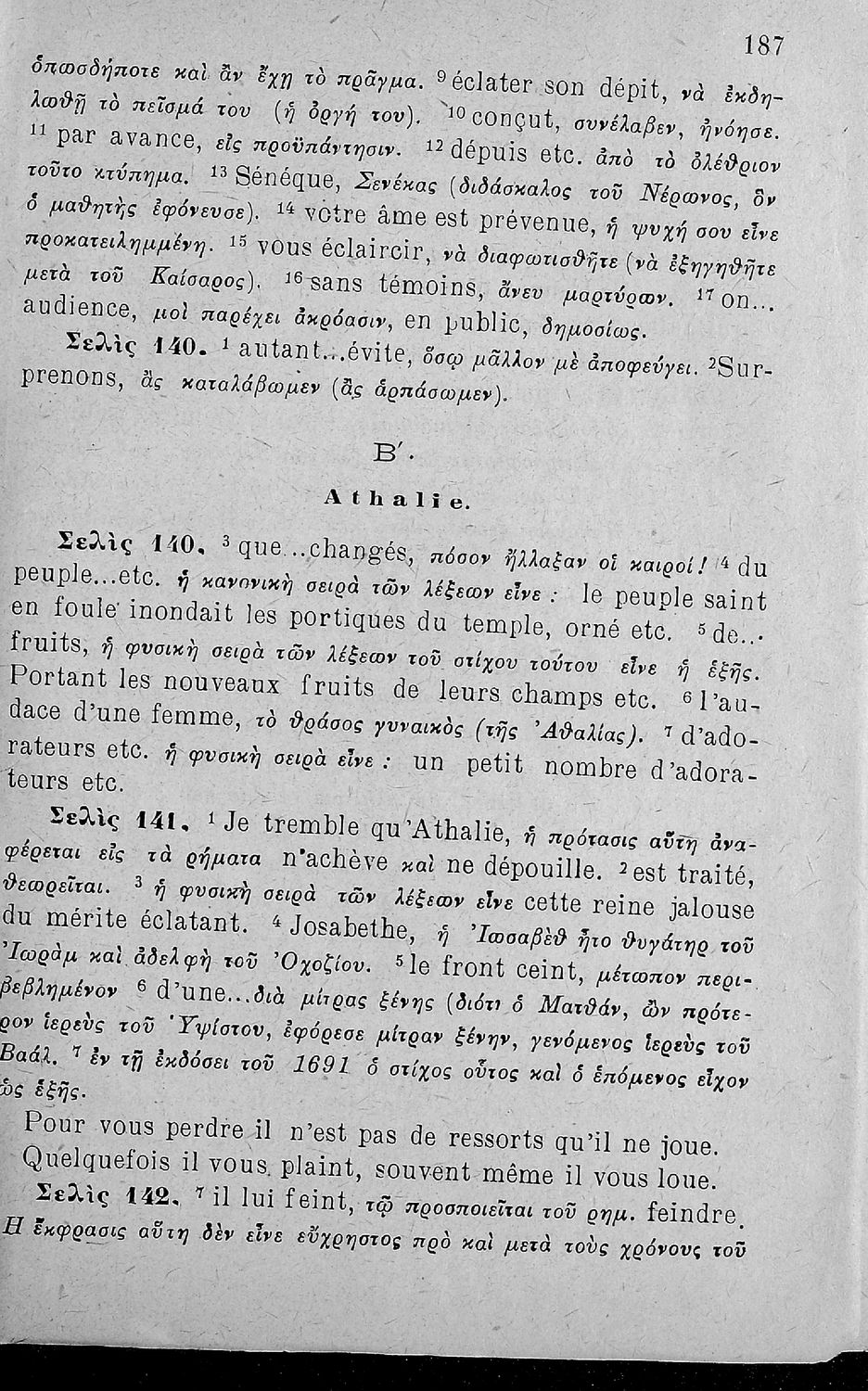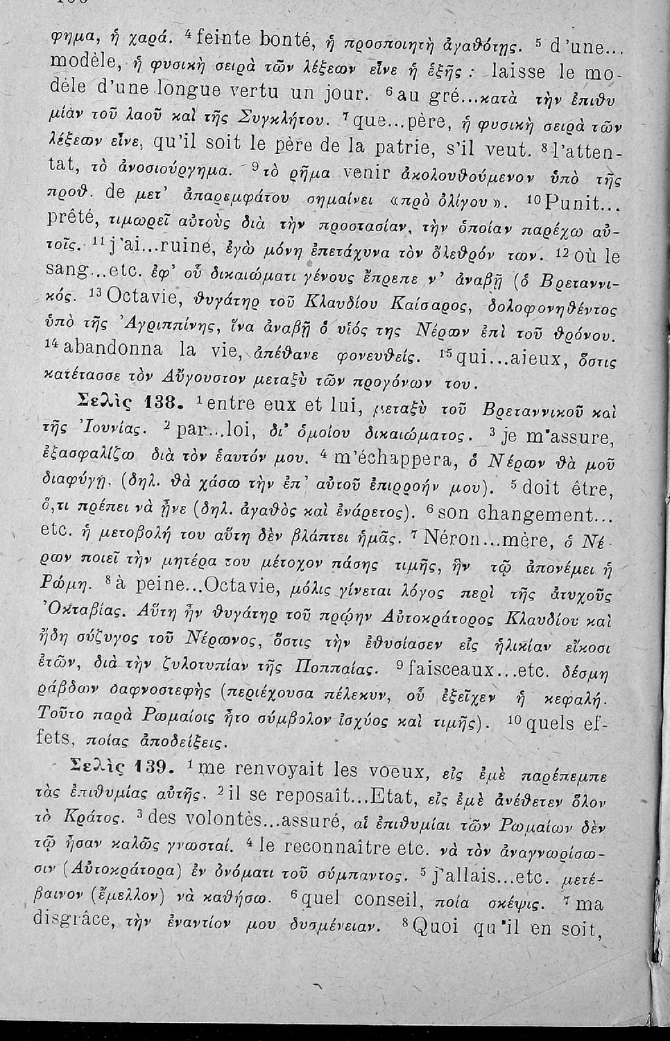 Σχολικό εγχειρίδιο Γαλλικών Γ΄ Γυμνασίου που περιλαμβάνει κείμενα των Bernadin de st. Pierre, Mme Stael, E. Renan, Prosper Merimme, Corneille, Racine, Boileau, A. Chenier, Beranger, Lamartine, Delavigne, V. Hugo και επεξηγηματικές σημειώσεις.
