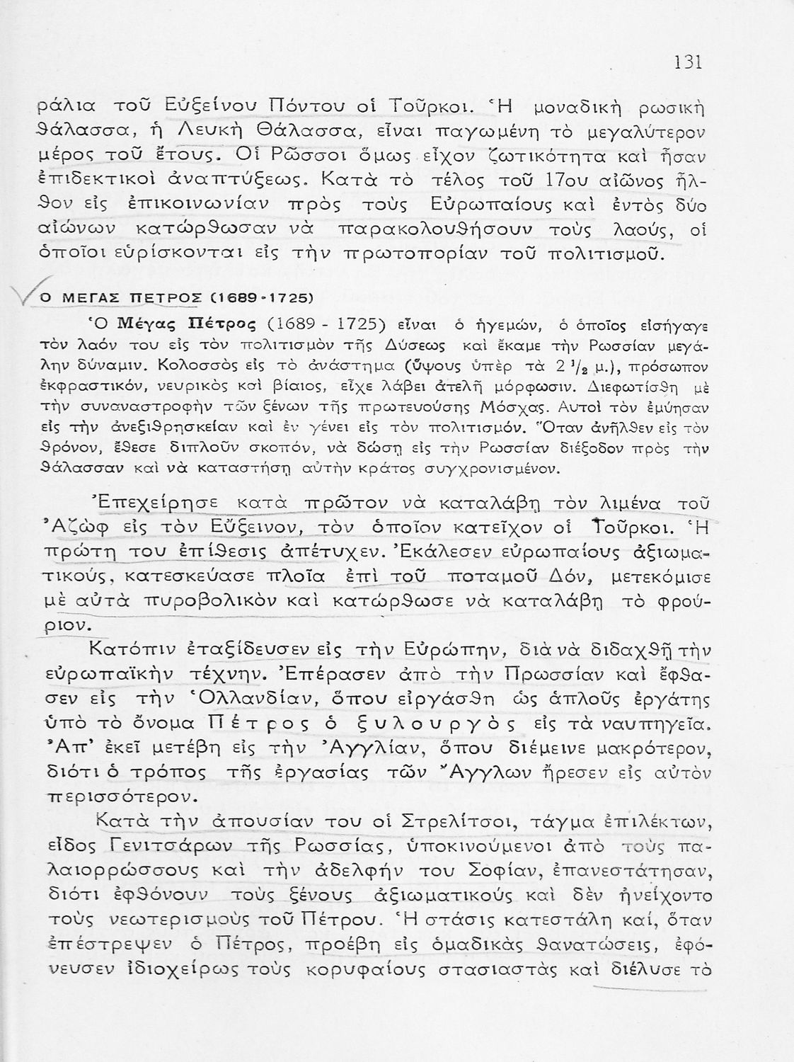 Κωδικός αναγνώρισης: 01-45232 Τίτλος: Ιστορία των νεότερων χρόνων. Ελληνική και Ευρωπαϊκή (1453-1821). Δια την Ε΄ Τάξιν του Εξατάξιου Γυμνασίου Νέου Τύπου Συγγραφέας: Αναστ. Λαζάρου Μέγεθος και υπόστρωμα: Σχολικό εγχειρίδιο, 262 σελίδες. Σκίτσα, χάρτης, εικόνες (ασπρόμαυρα). |