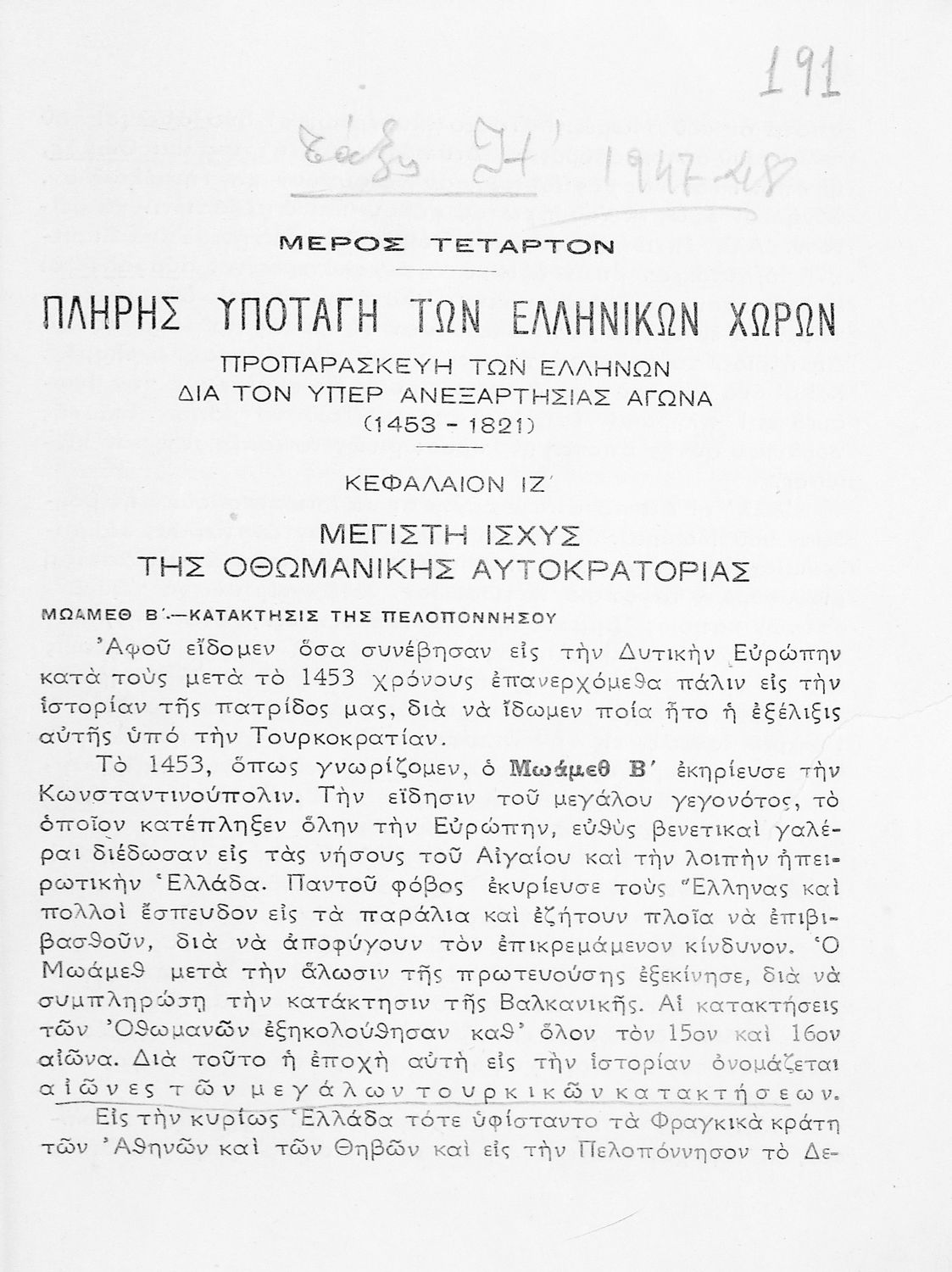 Ιστορία των νεότερων χρόνων. Ελληνική και Ευρωπαϊκή (1453-1821). Δια την Ε΄ Τάξιν του Εξατάξιου Γυμνασίου Νέου Τύπου