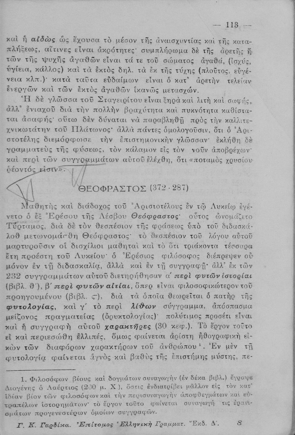 LDR 01812 2200217 4500 035 ## _a01-45233 040 ## _aΙνστιτούτο Εκπαιδευτικής Πολιτικής 041 ## _ael 100 ## _aΓεώργιος Γαρδίκας 110 ## _a45233 245 0# _aΕπίτομος Ελληνική Γραμματολογία, προς χρήσιν των μαθητών Γ΄, Δ΄, Ε΄ και ΣΤ΄ τάξεως του Γυμνασίου και των αντιστοίχων τάξεων των λοιπών σχολείων της Μέσης Εκπαιδεύσεως 250 ## _a4η Έκδοση 260 ## _aΑθήνα _bΒιβλιοπωλείο Ιωάννη Ν. Σιδέρη _c1935 300 ## _a198 _c19 520 ## _aΣχολικό εγχειρίδιο Αρχαίων και Νέων Ελληνικών για τις Γ΄, Δ΄, Ε΄, ΣΤ΄ Γυμνασίου που παρουσιάζει τα είδη λογοτεχνίας και την εξέλιξη της ελληνικής γλώσσας από την εποχή του Όμηρου μέχρι την Ελληνική Επανάσταση. Περιέχει και αναφορά στα δημοτικά τραγούδια και σύντομα βιογραφικά σημειώματα επιφανών λογοτεχνών. Ο συγγραφέας ήταν Καθηγητής Ελληνικών Γραμμάτων στο Εθνικό Πανεπιστήμιο και Γυμνασιάρχης στο Αρσάκειο. 521 ## _aΓ' Γυμνασίου / Δ' Γυμνασίου / Ε' Γυμνασίου 522 ## _aΕλλάδα 546 ## _aΚαθαρεύουσα 563 ## _aΣκληρό Εξώφυλλο 583 ## _a42993/28-7-1930 _c1930 650 #4 _aΈπος _aΠοίηση _aΡητορική _aΤραγωδία _aΦιλοσοφία