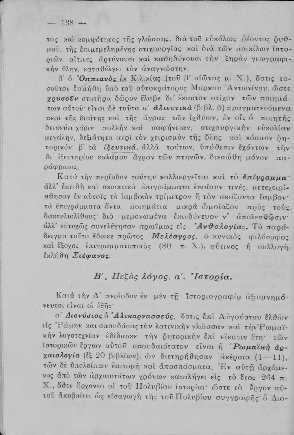 Σχολικό εγχειρίδιο Αρχαίων και Νέων Ελληνικών για τις Γ΄, Δ΄, Ε΄, ΣΤ΄ Γυμνασίου που παρουσιάζει τα είδη λογοτεχνίας και την εξέλιξη της ελληνικής γλώσσας από την εποχή του Όμηρου μέχρι την Ελληνική Επανάσταση. Περιέχει και αναφορά στα δημοτικά τραγούδια και σύντομα βιογραφικά σημειώματα επιφανών λογοτεχνών. Ο συγγραφέας ήταν Καθηγητής Ελληνικών Γραμμάτων στο Εθνικό Πανεπιστήμιο και Γυμνασιάρχης στο Αρσάκειο.