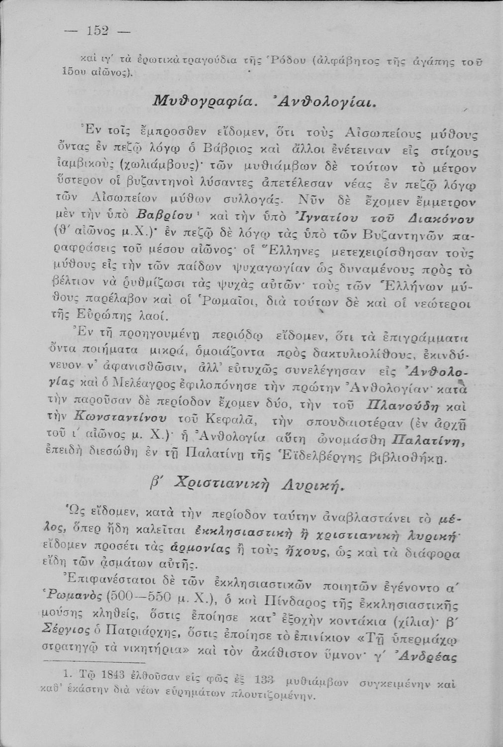 Σχολικό εγχειρίδιο Αρχαίων και Νέων Ελληνικών για τις Γ΄, Δ΄, Ε΄, ΣΤ΄ Γυμνασίου που παρουσιάζει τα είδη λογοτεχνίας και την εξέλιξη της ελληνικής γλώσσας από την εποχή του Όμηρου μέχρι την Ελληνική Επανάσταση. Περιέχει και αναφορά στα δημοτικά τραγούδια και σύντομα βιογραφικά σημειώματα επιφανών λογοτεχνών. Ο συγγραφέας ήταν Καθηγητής Ελληνικών Γραμμάτων στο Εθνικό Πανεπιστήμιο και Γυμνασιάρχης στο Αρσάκειο.