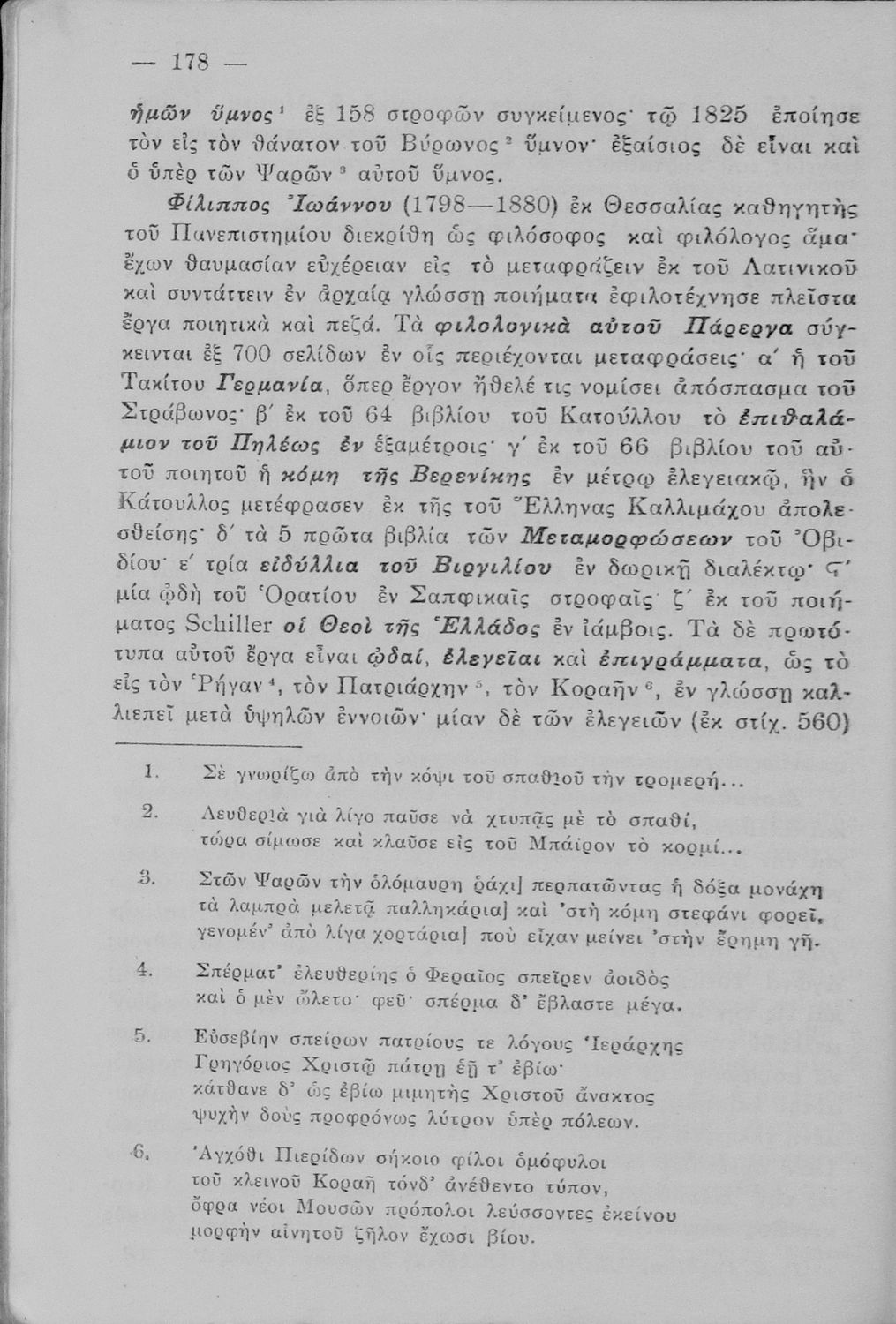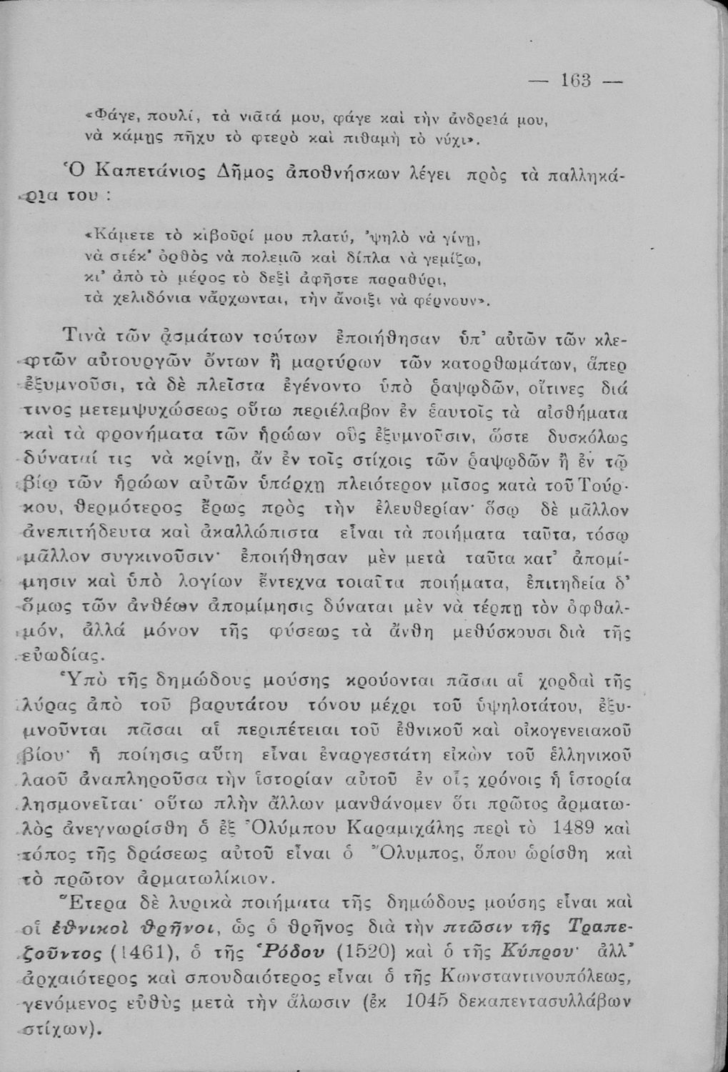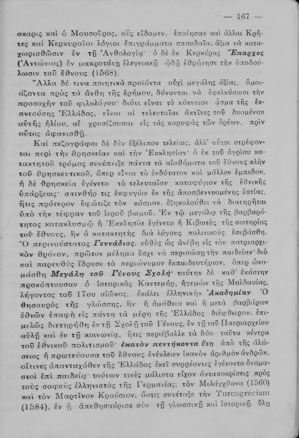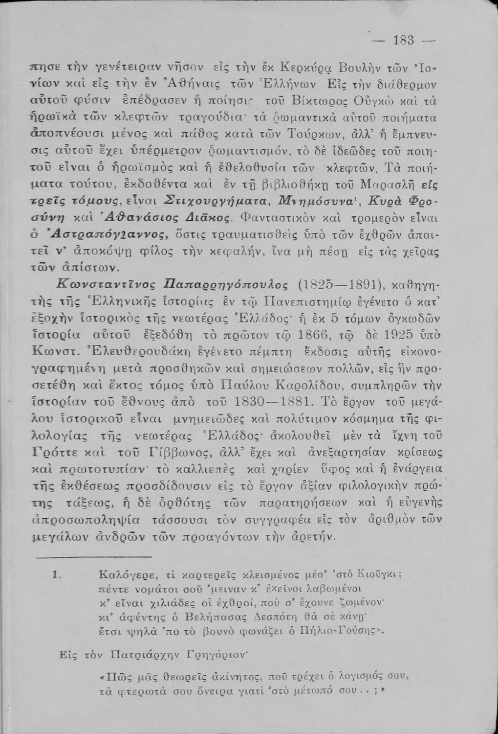 Σχολικό εγχειρίδιο Αρχαίων και Νέων Ελληνικών για τις Γ΄, Δ΄, Ε΄, ΣΤ΄ Γυμνασίου που παρουσιάζει τα είδη λογοτεχνίας και την εξέλιξη της ελληνικής γλώσσας από την εποχή του Όμηρου μέχρι την Ελληνική Επανάσταση. Περιέχει και αναφορά στα δημοτικά τραγούδια και σύντομα βιογραφικά σημειώματα επιφανών λογοτεχνών. Ο συγγραφέας ήταν Καθηγητής Ελληνικών Γραμμάτων στο Εθνικό Πανεπιστήμιο και Γυμνασιάρχης στο Αρσάκειο.