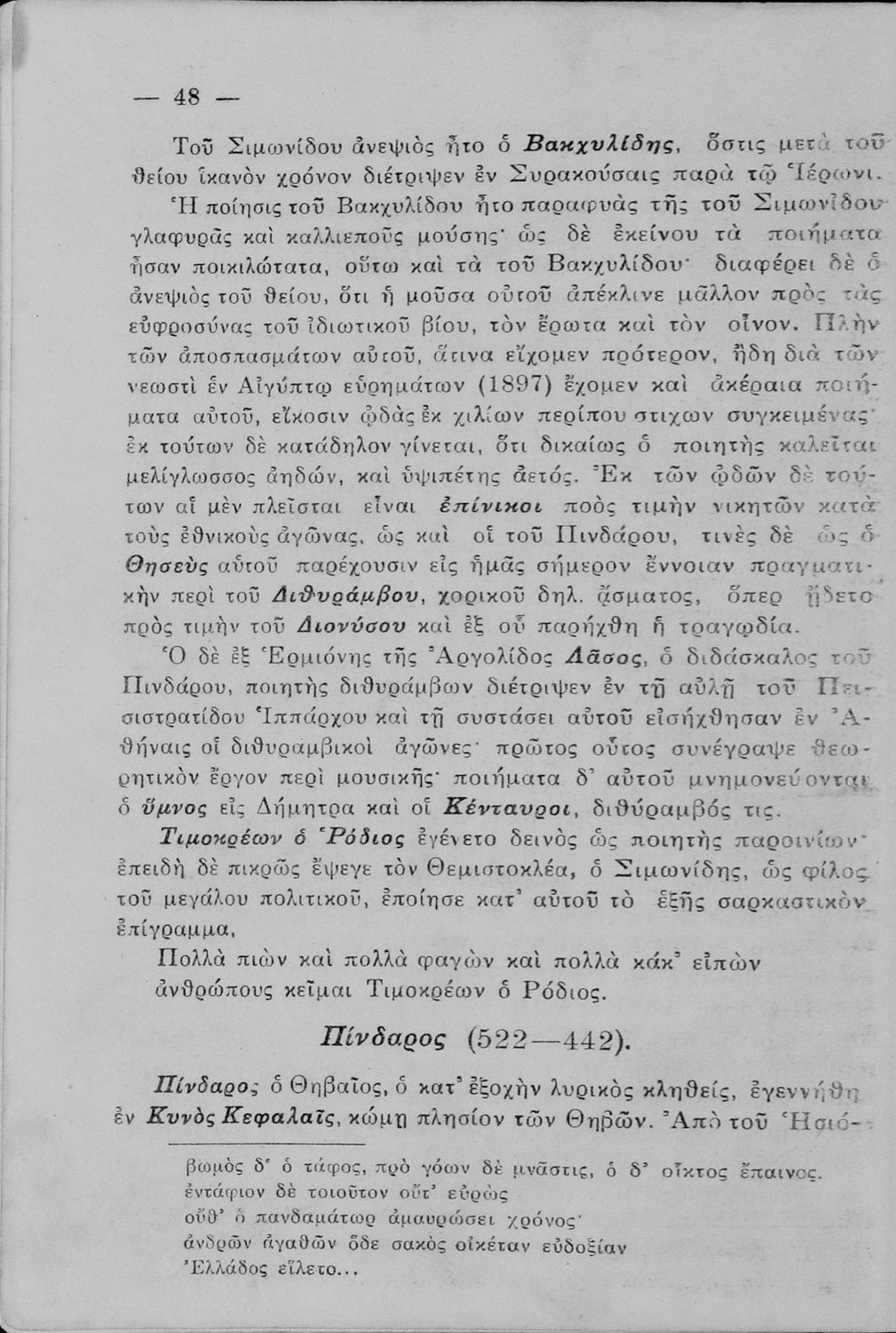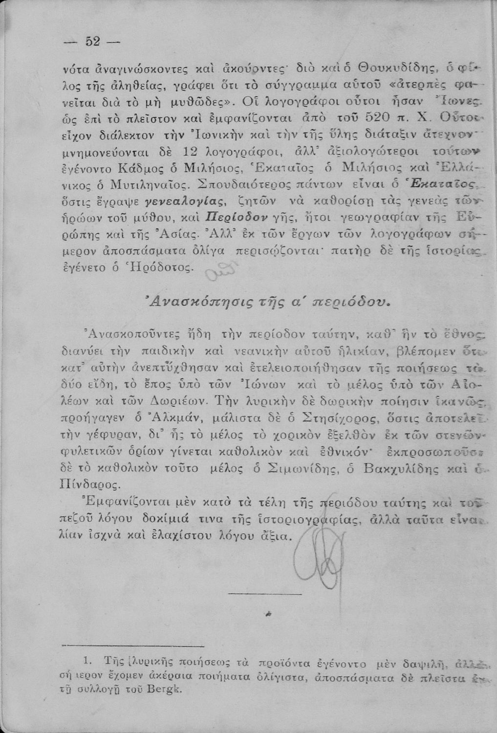 Σχολικό εγχειρίδιο Αρχαίων και Νέων Ελληνικών για τις Γ΄, Δ΄, Ε΄, ΣΤ΄ Γυμνασίου που παρουσιάζει τα είδη λογοτεχνίας και την εξέλιξη της ελληνικής γλώσσας από την εποχή του Όμηρου μέχρι την Ελληνική Επανάσταση. Περιέχει και αναφορά στα δημοτικά τραγούδια και σύντομα βιογραφικά σημειώματα επιφανών λογοτεχνών. Ο συγγραφέας ήταν Καθηγητής Ελληνικών Γραμμάτων στο Εθνικό Πανεπιστήμιο και Γυμνασιάρχης στο Αρσάκειο.