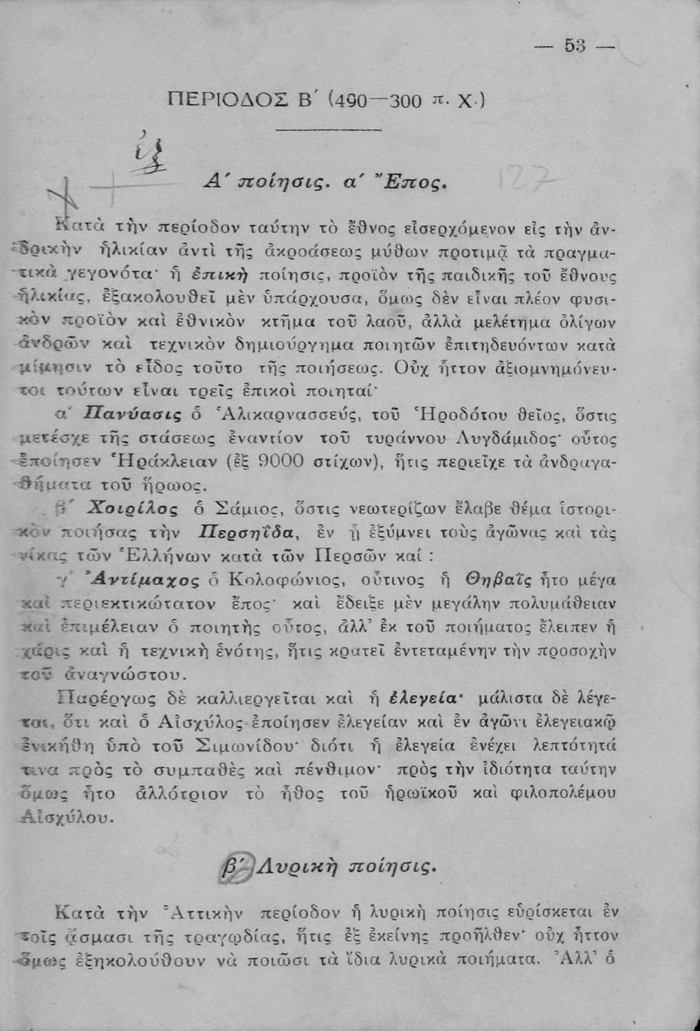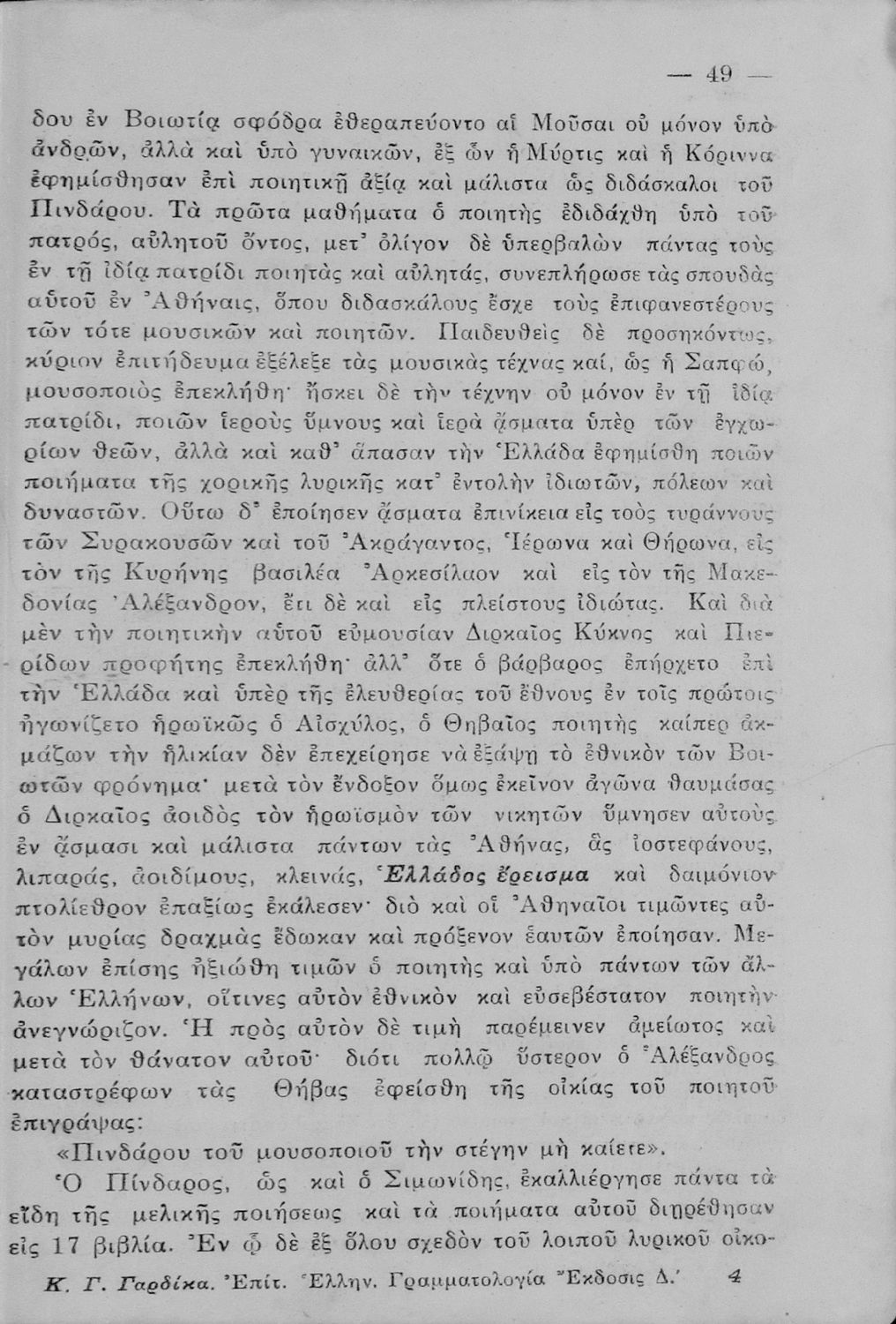 LDR 01812 2200217 4500 035 ## _a01-45233 040 ## _aΙνστιτούτο Εκπαιδευτικής Πολιτικής 041 ## _ael 100 ## _aΓεώργιος Γαρδίκας 110 ## _a45233 245 0# _aΕπίτομος Ελληνική Γραμματολογία, προς χρήσιν των μαθητών Γ΄, Δ΄, Ε΄ και ΣΤ΄ τάξεως του Γυμνασίου και των αντιστοίχων τάξεων των λοιπών σχολείων της Μέσης Εκπαιδεύσεως 250 ## _a4η Έκδοση 260 ## _aΑθήνα _bΒιβλιοπωλείο Ιωάννη Ν. Σιδέρη _c1935 300 ## _a198 _c19 520 ## _aΣχολικό εγχειρίδιο Αρχαίων και Νέων Ελληνικών για τις Γ΄, Δ΄, Ε΄, ΣΤ΄ Γυμνασίου που παρουσιάζει τα είδη λογοτεχνίας και την εξέλιξη της ελληνικής γλώσσας από την εποχή του Όμηρου μέχρι την Ελληνική Επανάσταση. Περιέχει και αναφορά στα δημοτικά τραγούδια και σύντομα βιογραφικά σημειώματα επιφανών λογοτεχνών. Ο συγγραφέας ήταν Καθηγητής Ελληνικών Γραμμάτων στο Εθνικό Πανεπιστήμιο και Γυμνασιάρχης στο Αρσάκειο. 521 ## _aΓ' Γυμνασίου / Δ' Γυμνασίου / Ε' Γυμνασίου 522 ## _aΕλλάδα 546 ## _aΚαθαρεύουσα 563 ## _aΣκληρό Εξώφυλλο 583 ## _a42993/28-7-1930 _c1930 650 #4 _aΈπος _aΠοίηση _aΡητορική _aΤραγωδία _aΦιλοσοφία