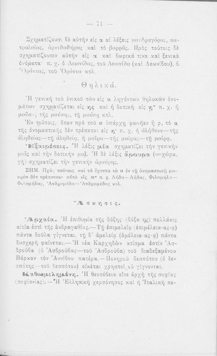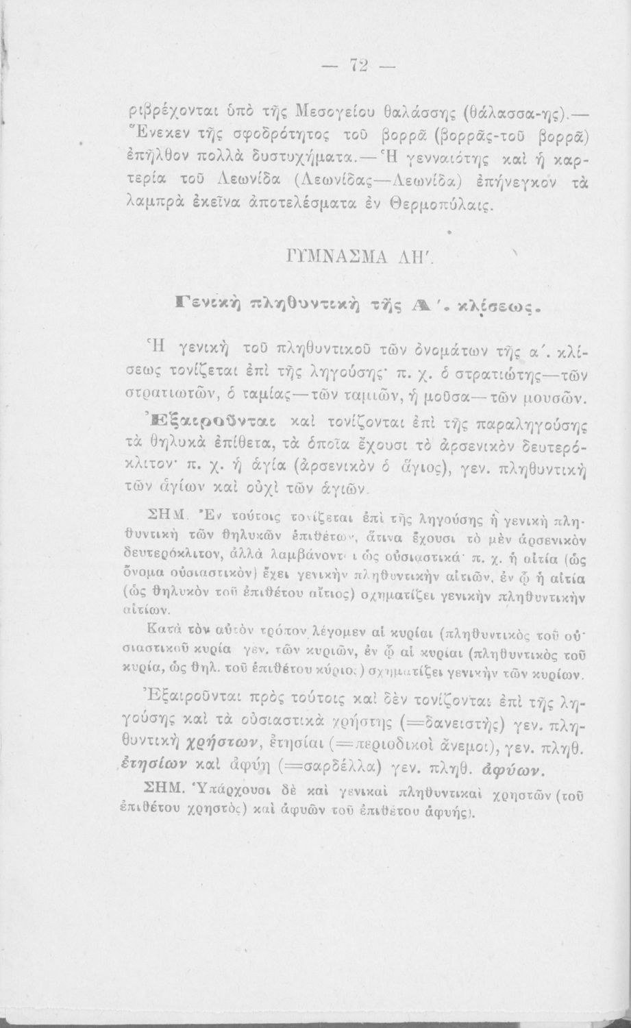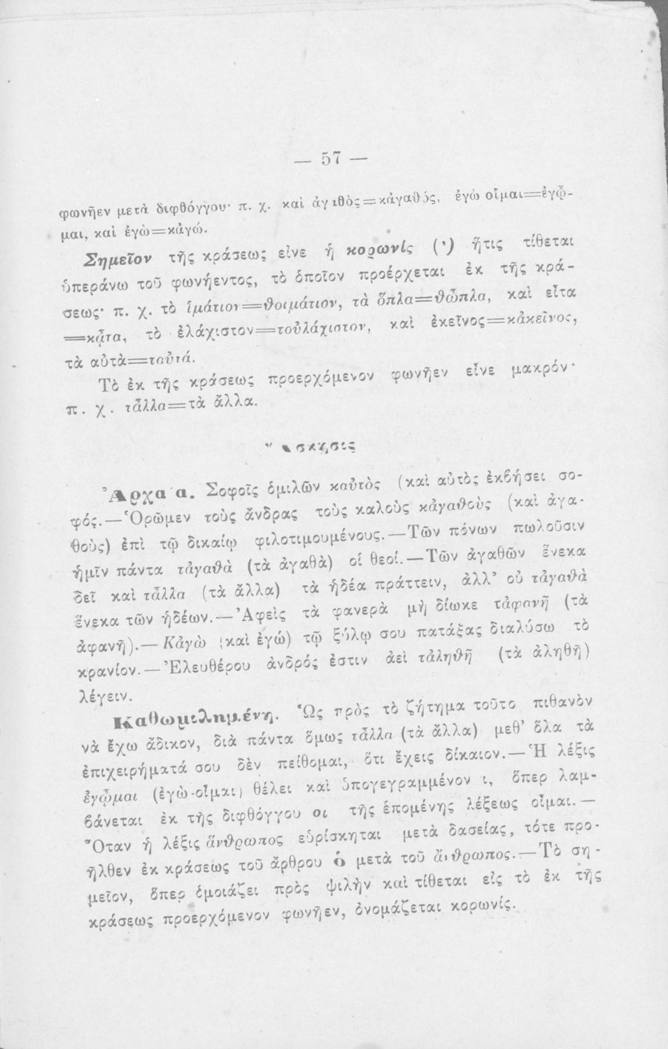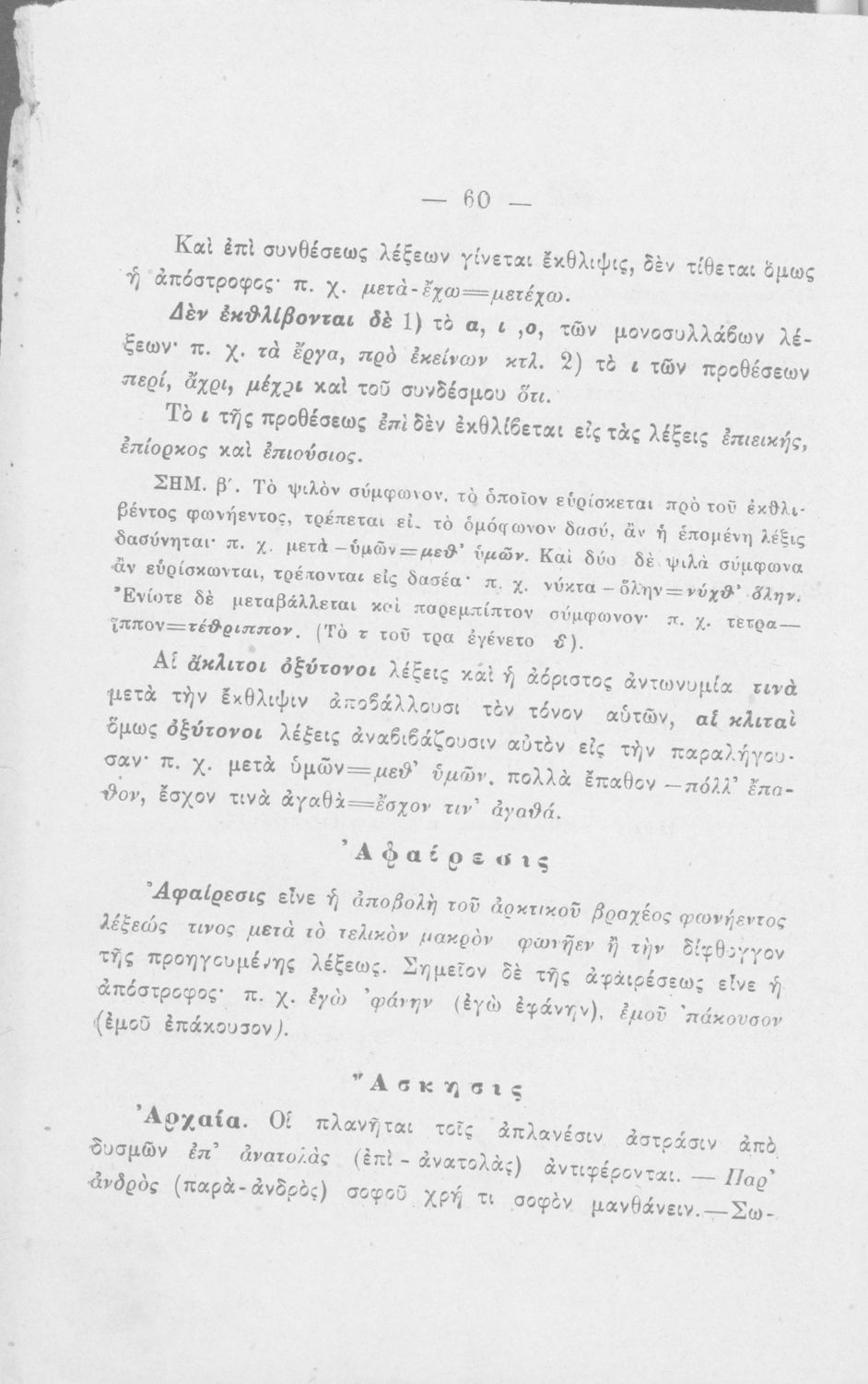 Σχολικό εγχειρίδιο Αρχαίων Ελληνικών για τους μαθητές των Ελληνικών Σχολείων και Παρθεναγωγείων που εξετάζει τα μέρη του λόγου και την σύνταξή τους.