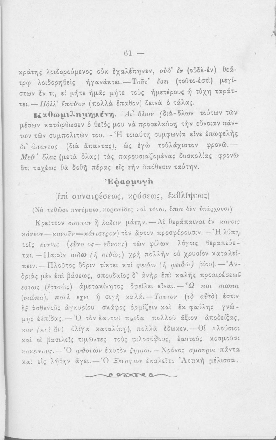 Βαθμίδα εκπαίδευσης: Δευτεροβάθμια Τάξη: Ελληνικό Σχολείο / Παρθεναγωγείο Μάθημα: Αρχαία Ελληνικά Γλώσσα: Καθαρεύουσα Παρουσίαση περιεχομένου: Σχολικό εγχειρίδιο Αρχαίων Ελληνικών για τους μαθητές των Ελληνικών Σχολείων και Παρθεναγωγείων που εξετάζει τα μέρη του λόγου και την σύνταξή τους. |