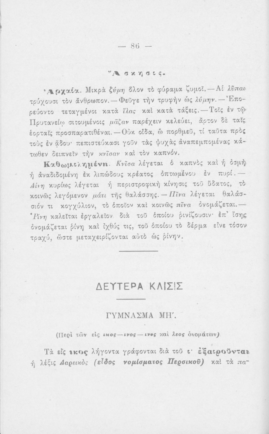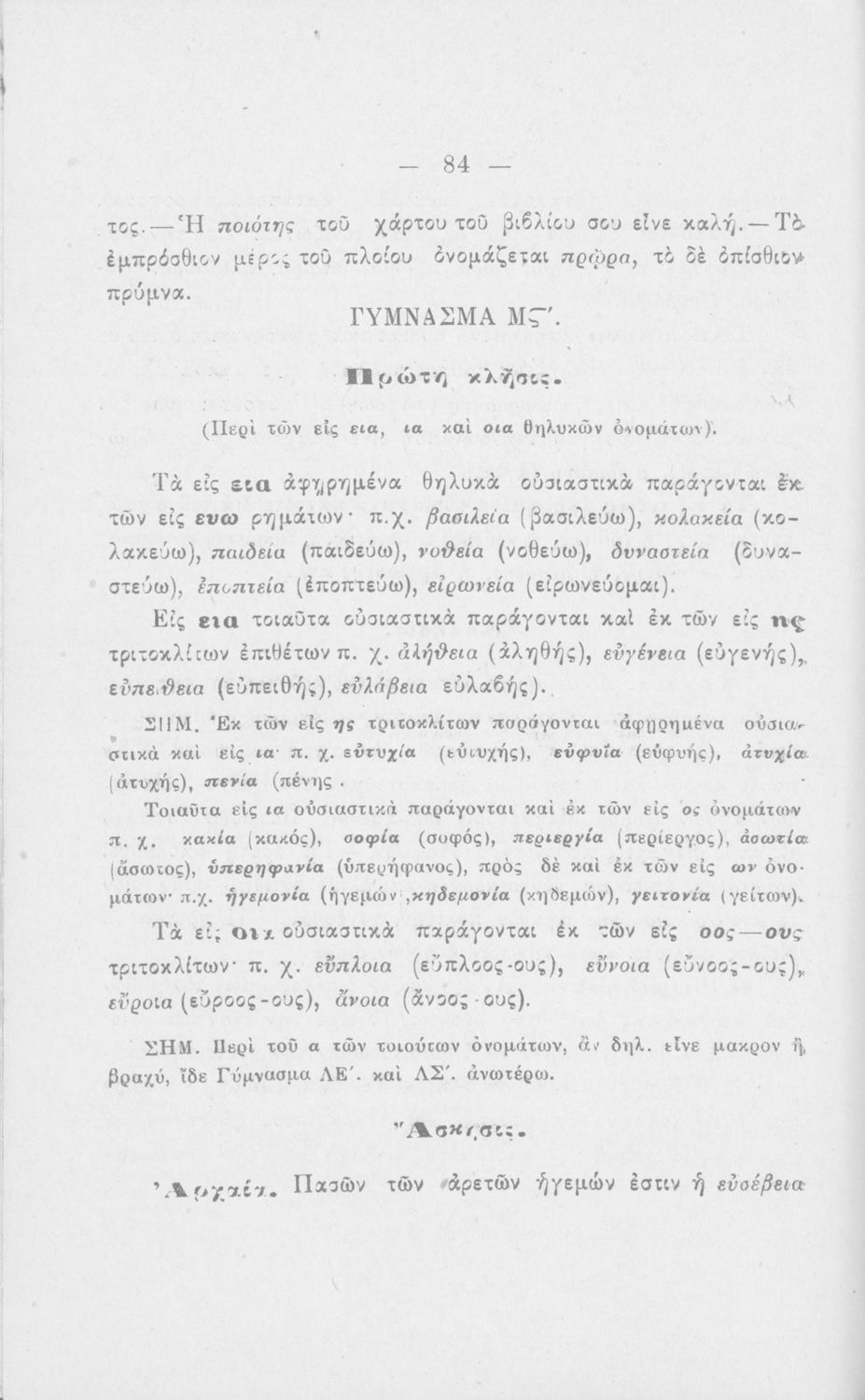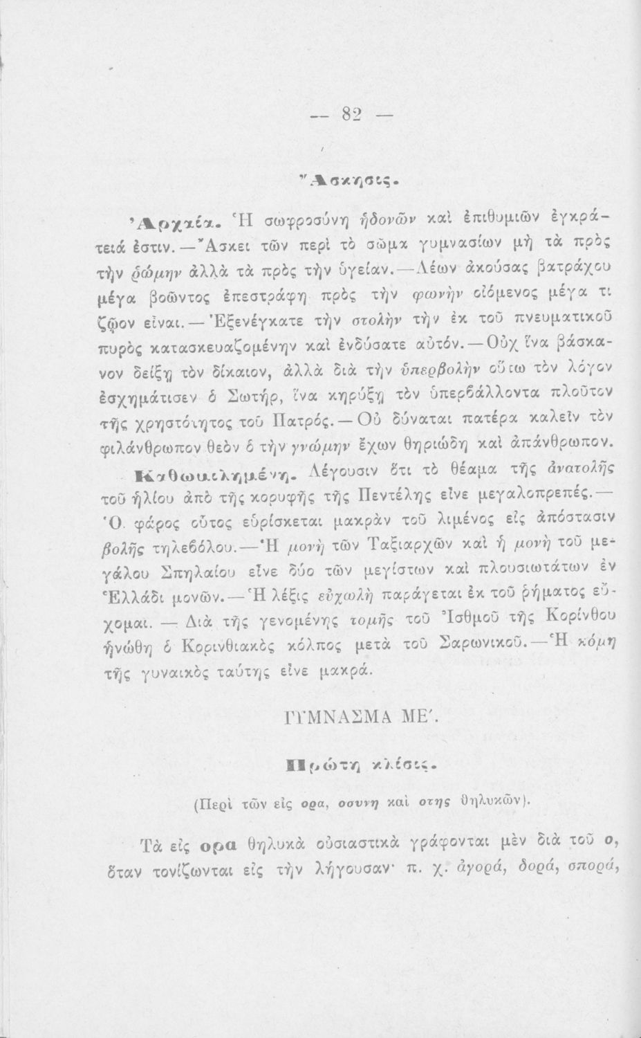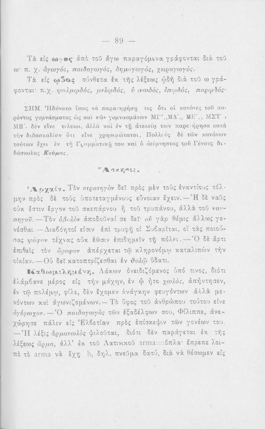 Σχολικό εγχειρίδιο Αρχαίων Ελληνικών για τους μαθητές των Ελληνικών Σχολείων και Παρθεναγωγείων που εξετάζει τα μέρη του λόγου και την σύνταξή τους.