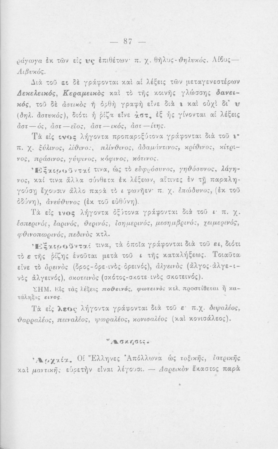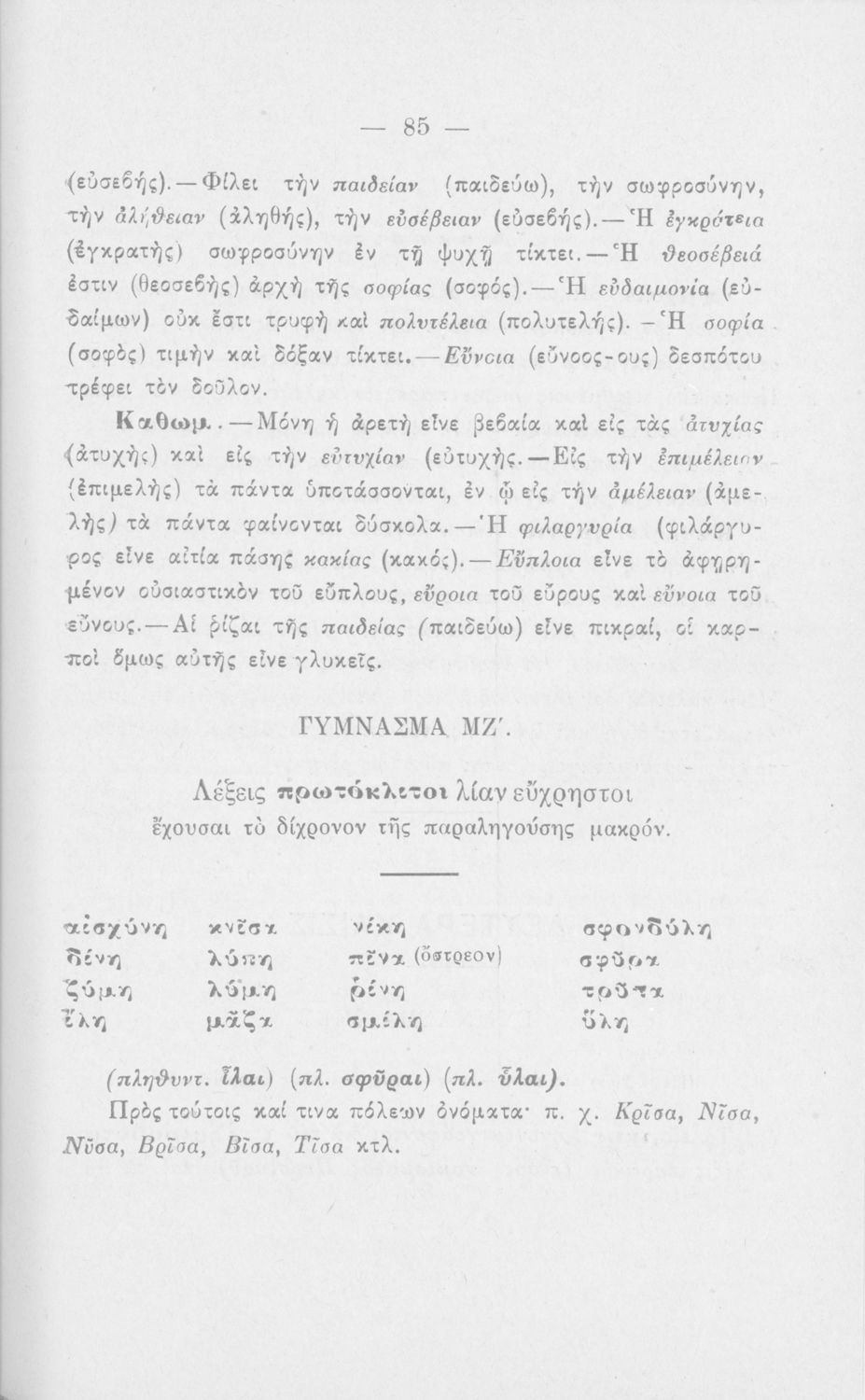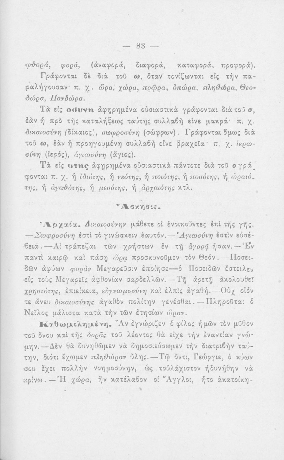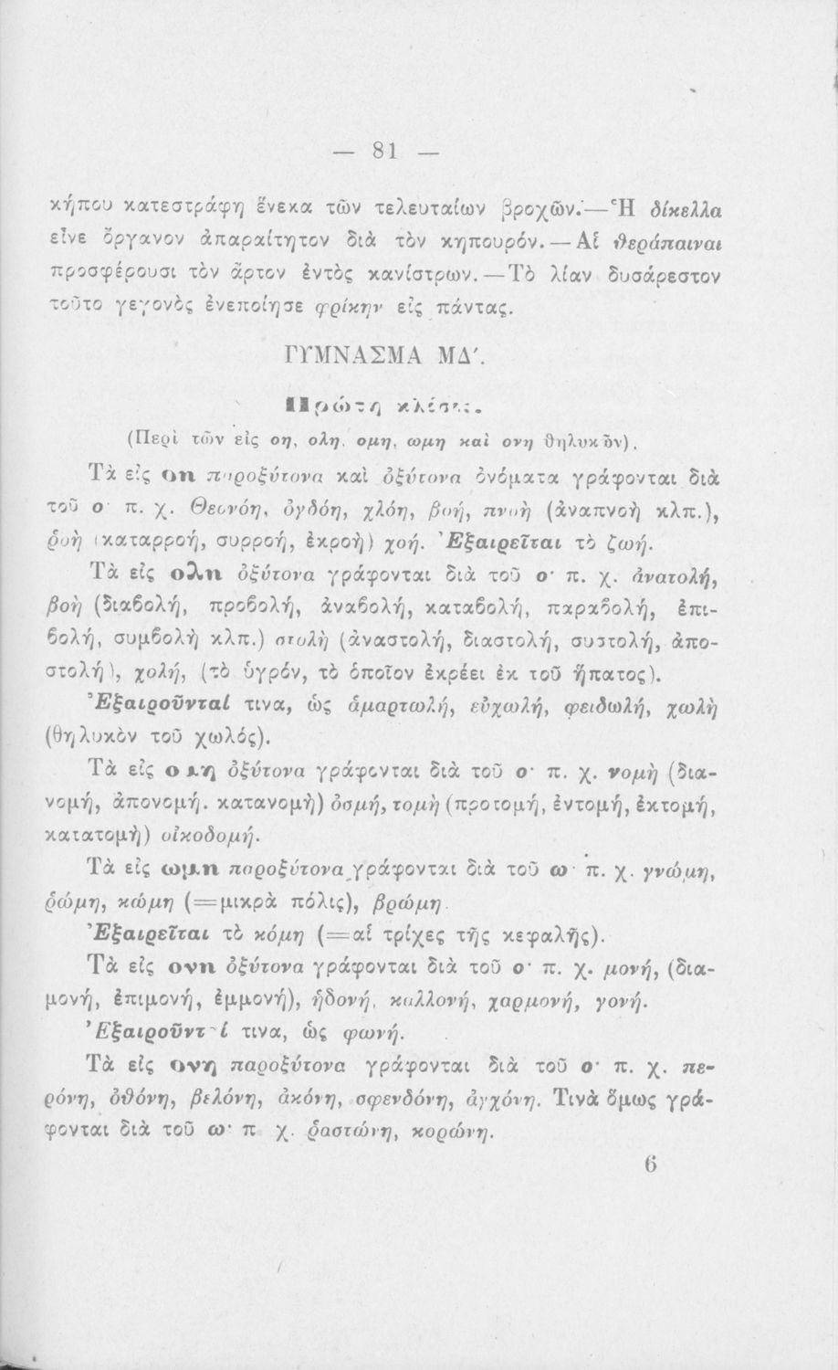 Σχολικό εγχειρίδιο Αρχαίων Ελληνικών για τους μαθητές των Ελληνικών Σχολείων και Παρθεναγωγείων που εξετάζει τα μέρη του λόγου και την σύνταξή τους.