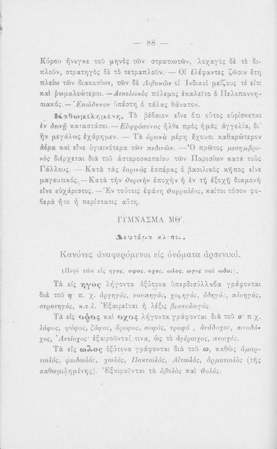 Σχολικό εγχειρίδιο Αρχαίων Ελληνικών για τα Ελληνικά Σχολεία και Παρθεναγωγεία που εστιάζει στα μέρη του λόγου και στην σύνταξή τους.