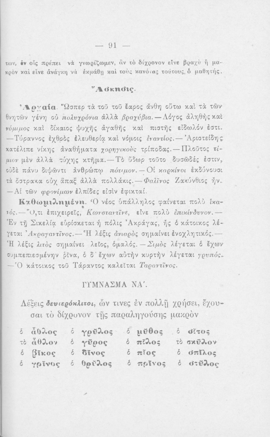 Σχολικό εγχειρίδιο Αρχαίων Ελληνικών για τους μαθητές των Ελληνικών Σχολείων και Παρθεναγωγείων που περιέχει τους συντακτικούς κανόνες.