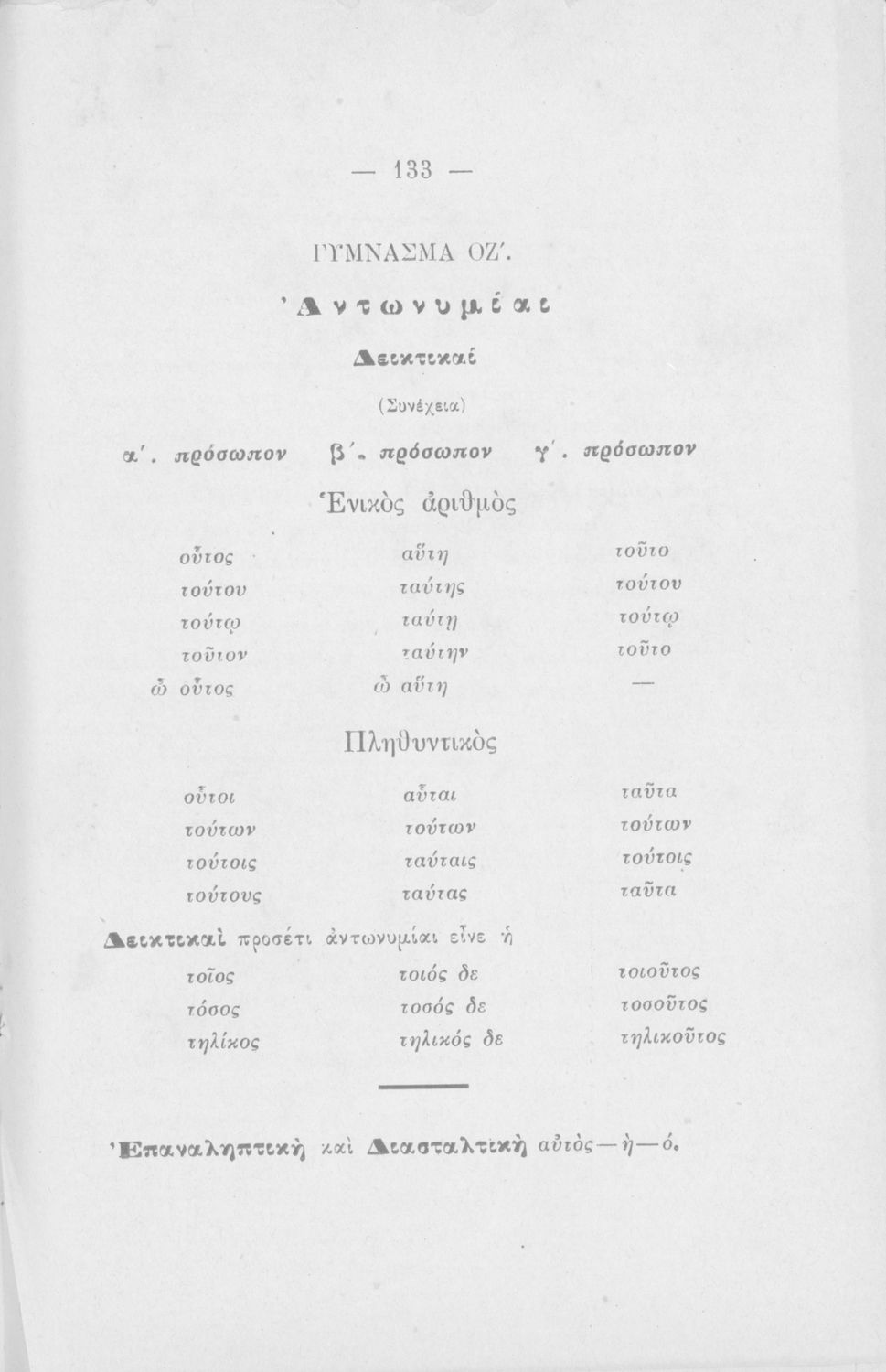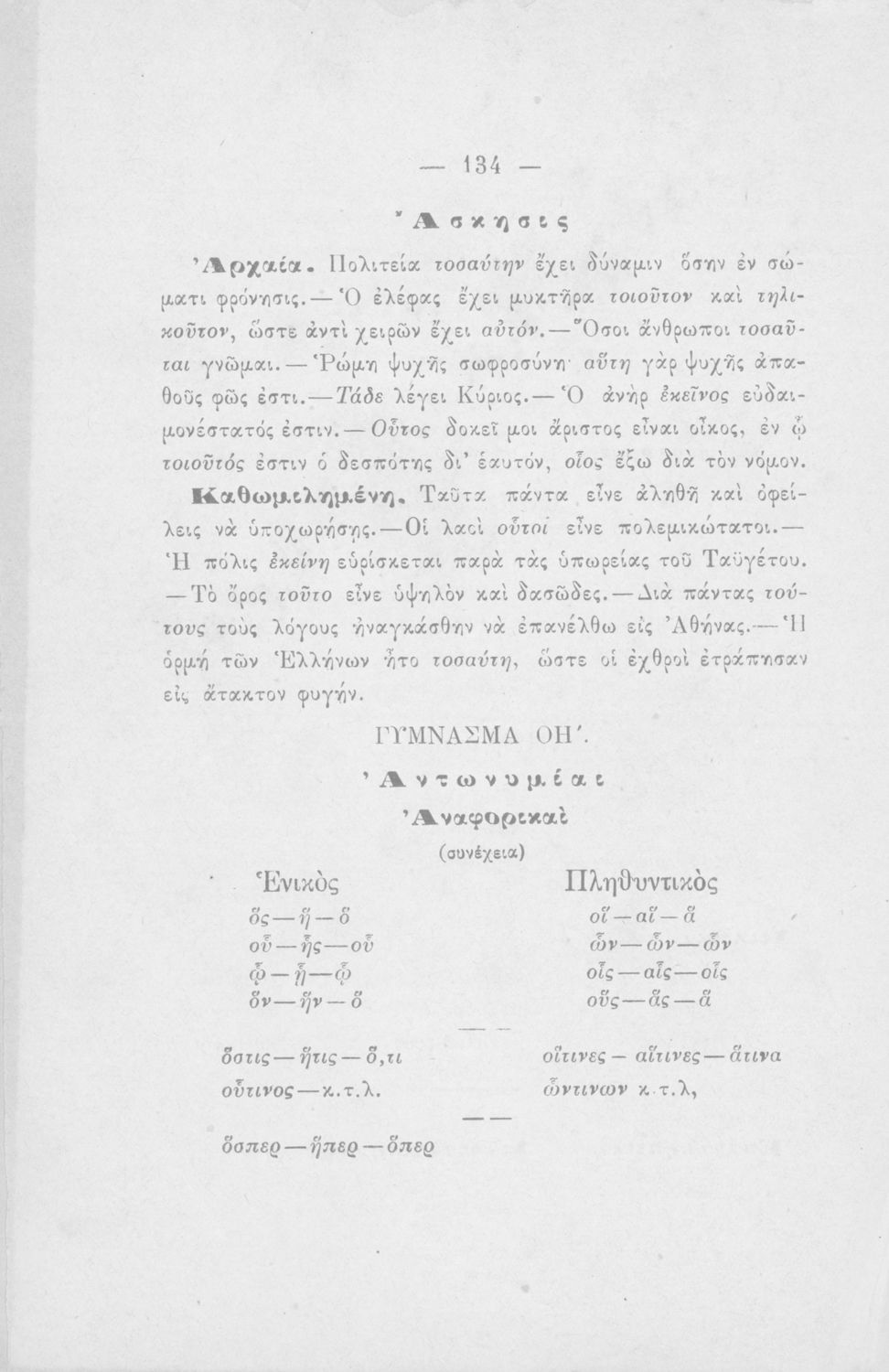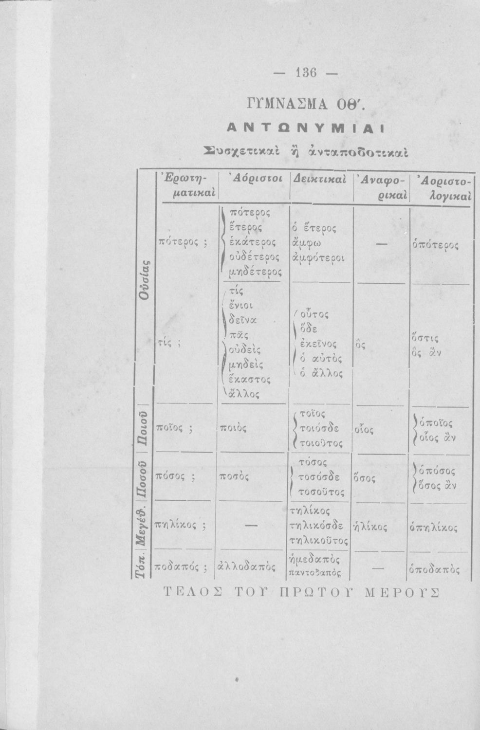 Σχολικό εγχειρίδιο Αρχαίων Ελληνικών για τα Ελληνικά Σχολεία και Παρθεναγωγεία που εστιάζει στα μέρη του λόγου και στην σύνταξή τους.