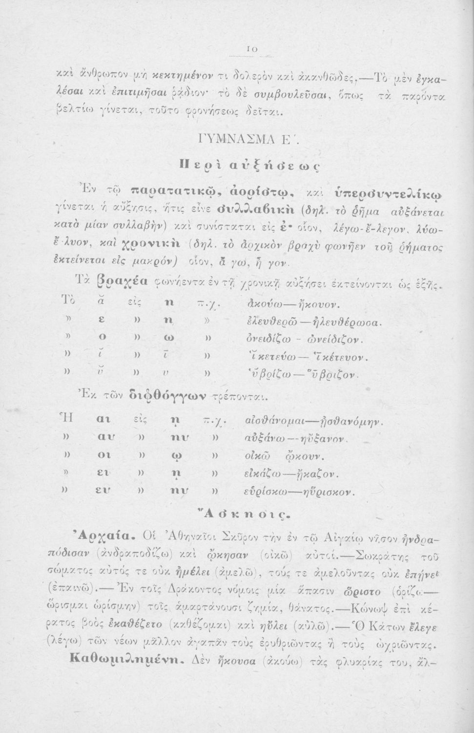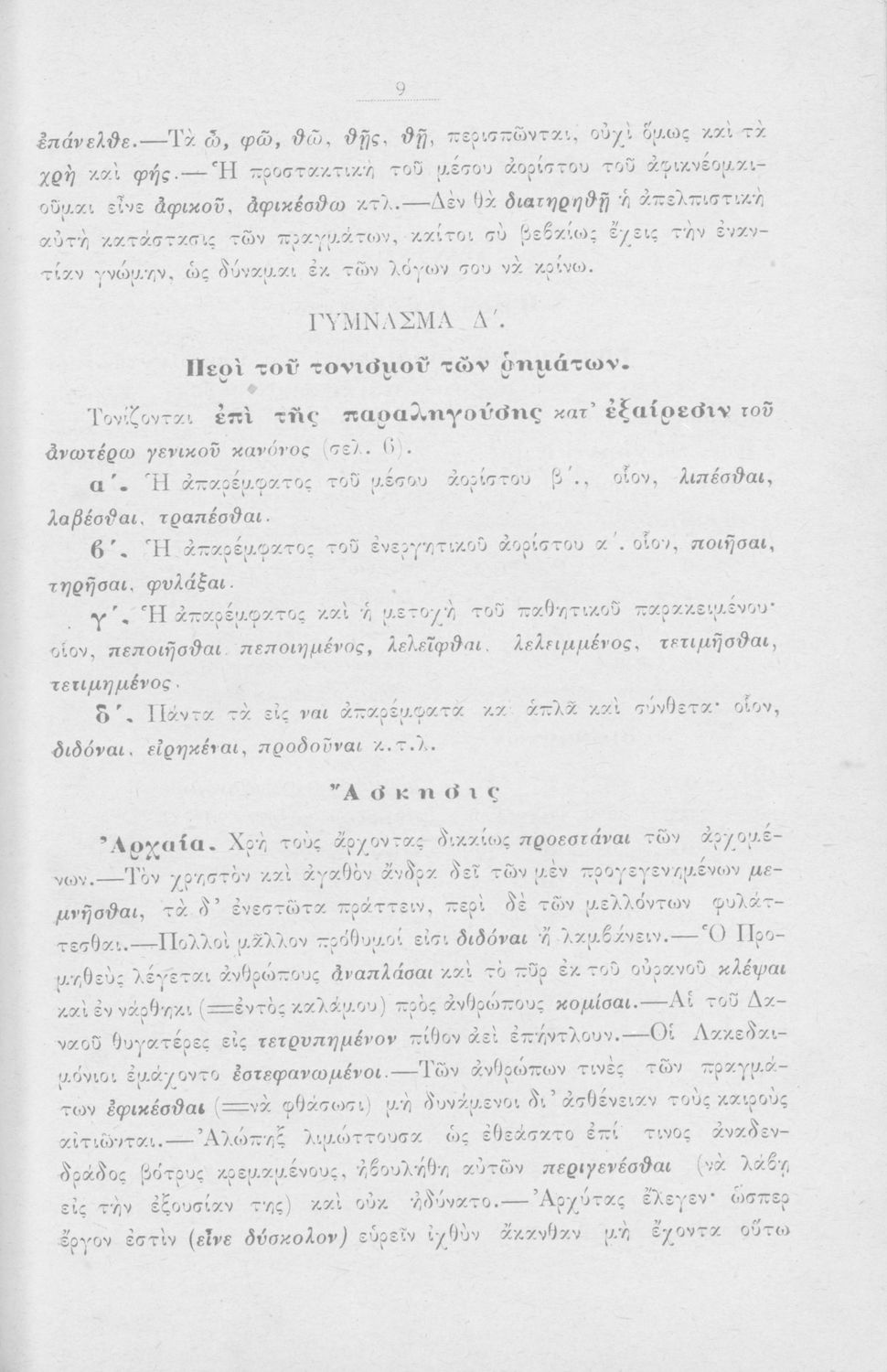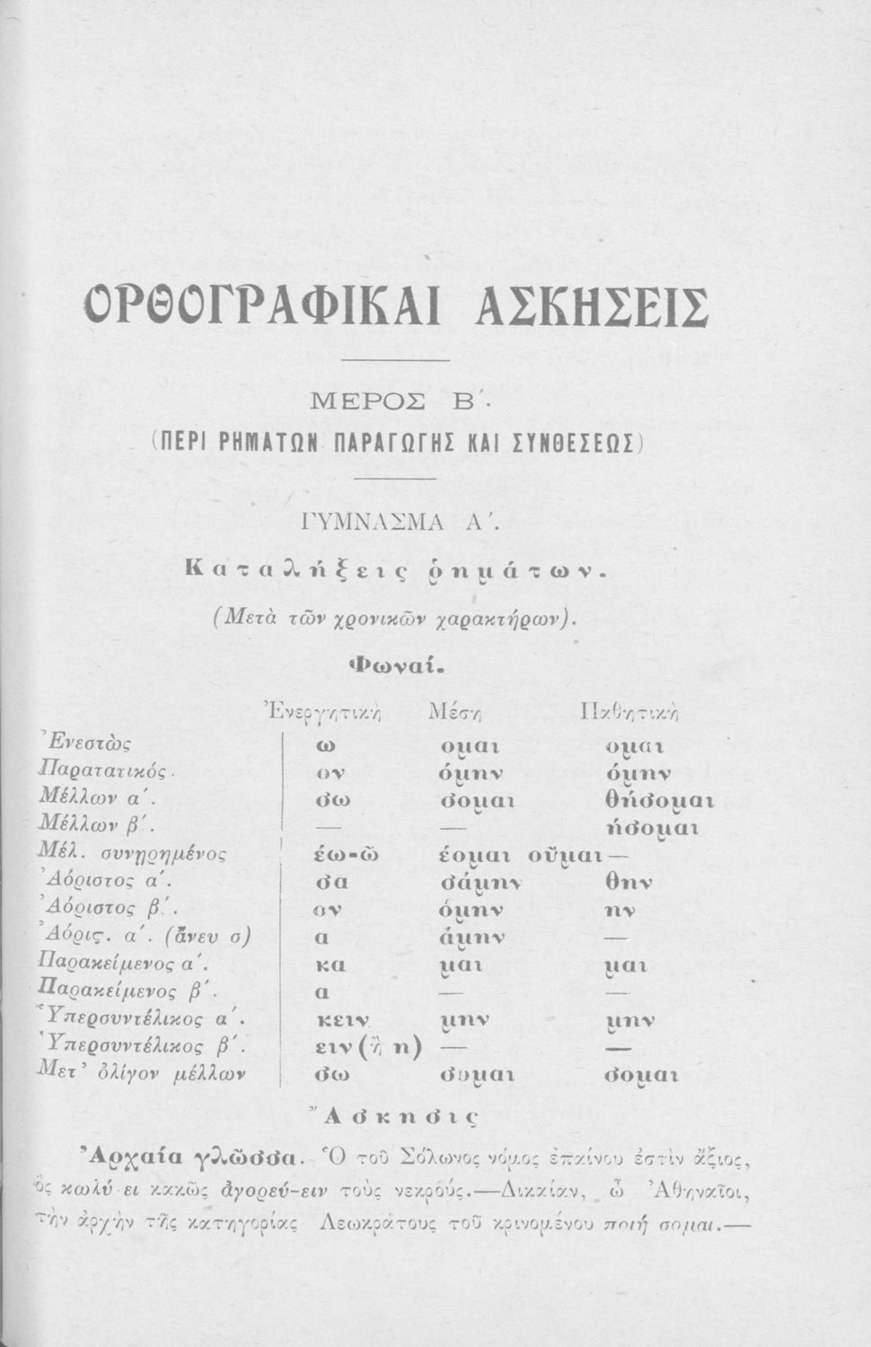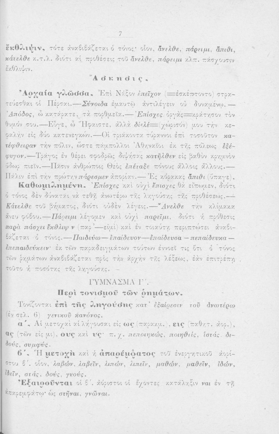 Σχολικό εγχειρίδιο Αρχαίων Ελληνικών για τους μαθητές των Ελληνικών Σχολείων και Παρθεναγωγείων που περιέχει τους συντακτικούς κανόνες.