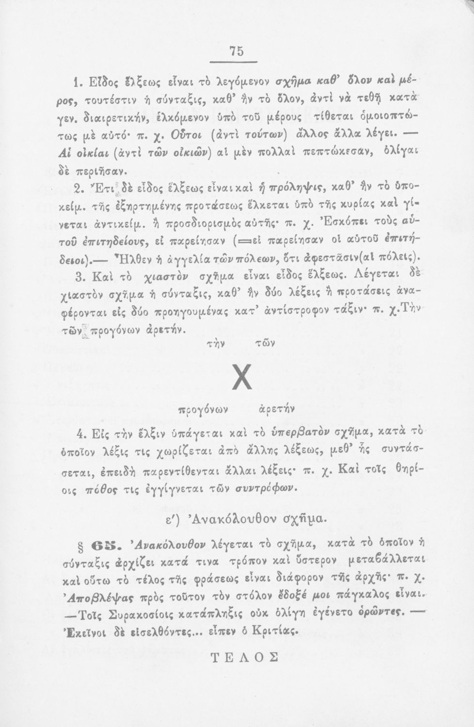Σχολικό εγχειρίδιο Αρχαίων Ελληνικών για τους μαθητές των Ελληνικών Σχολείων και Παρθεναγωγείων που περιέχει τους συντακτικούς κανόνες.