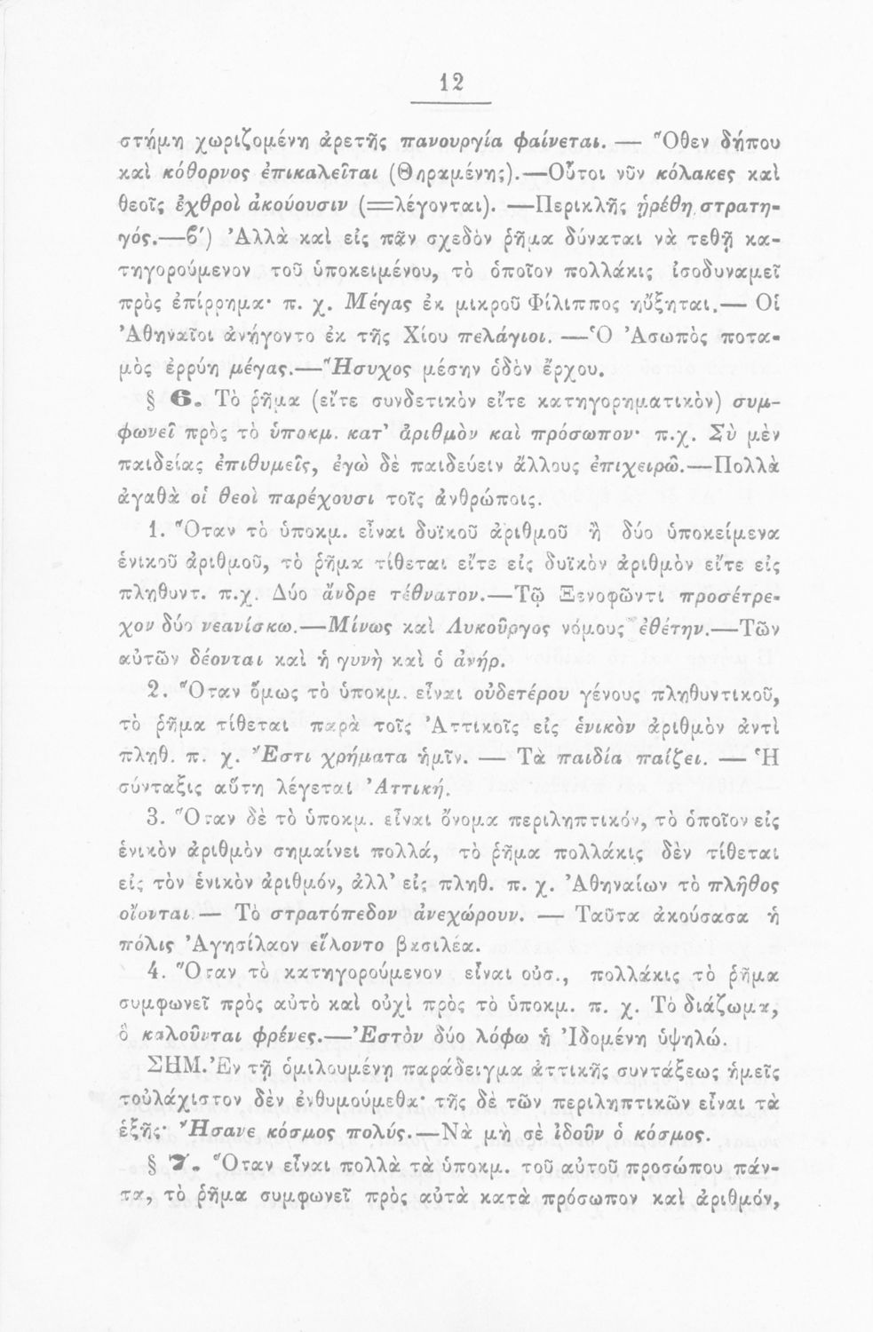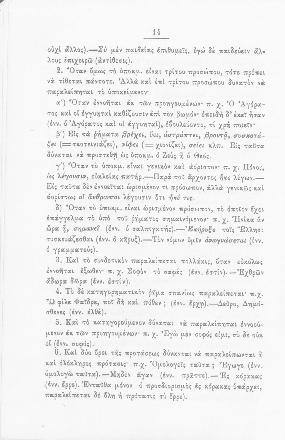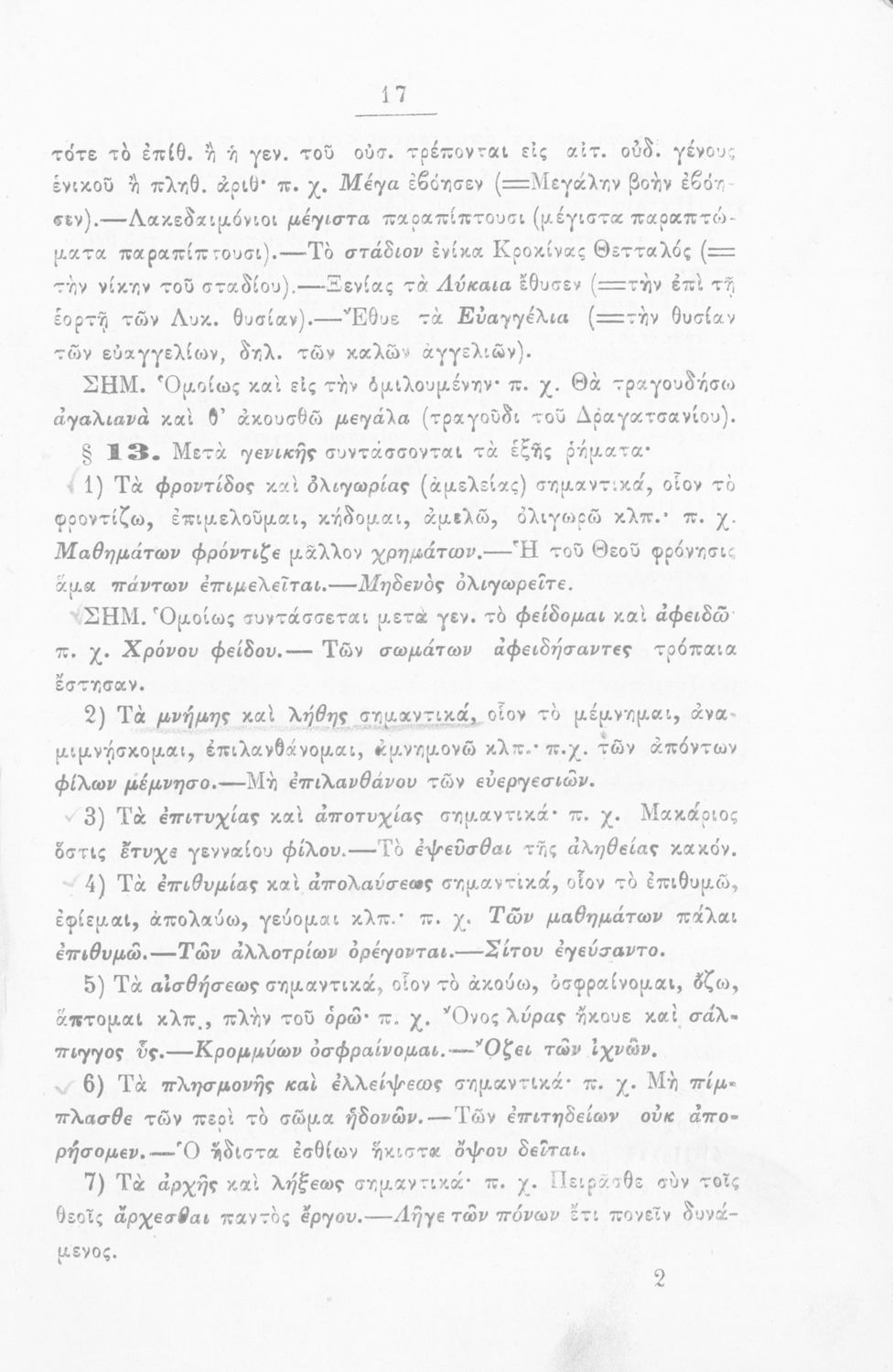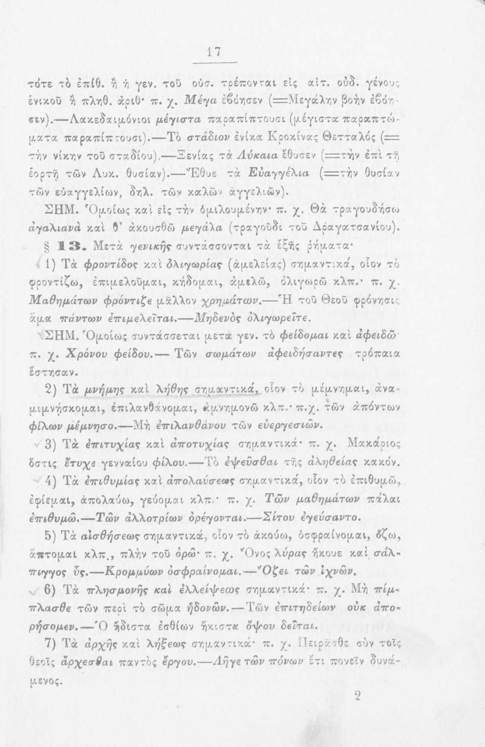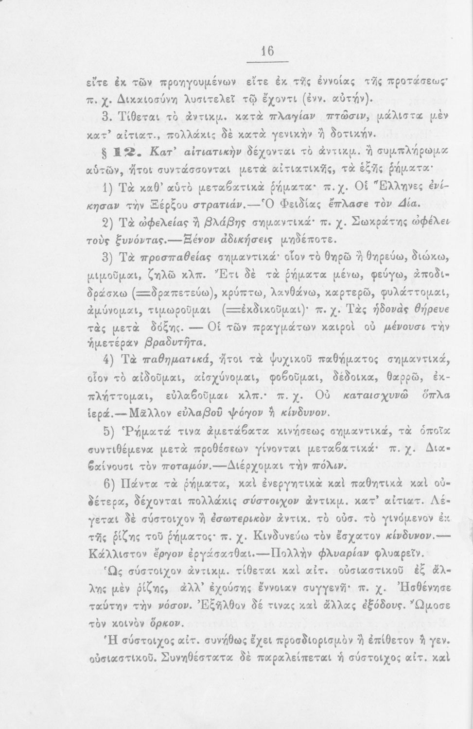 Σχολικό εγχειρίδιο Αρχαίων Ελληνικών για τους μαθητές των Ελληνικών Σχολείων και Παρθεναγωγείων που εξετάζει τα μέρη του λόγου και την σύνταξή τους.