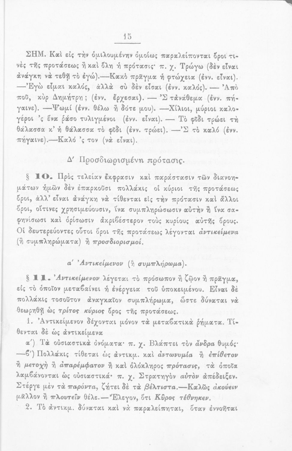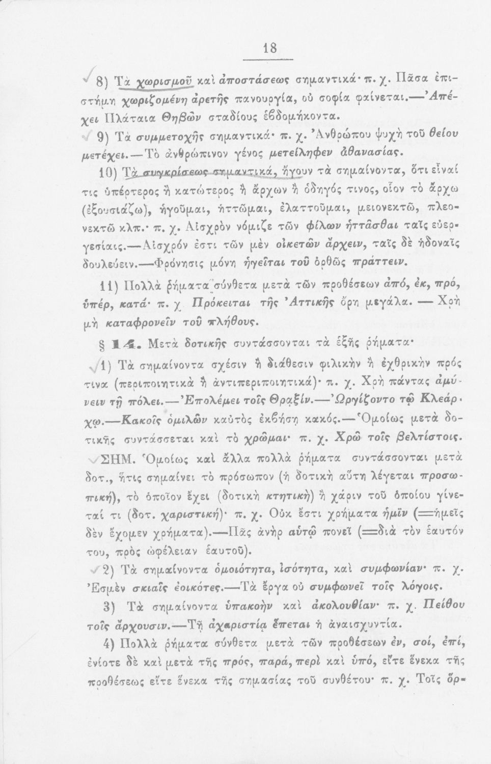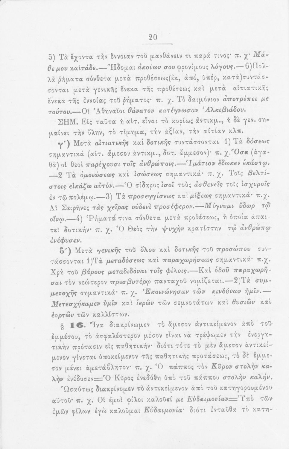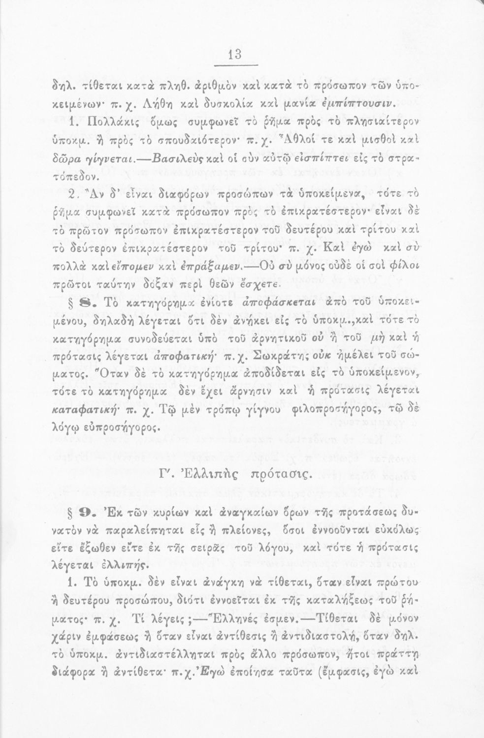 Σχολικό εγχειρίδιο Αρχαίων Ελληνικών για τους μαθητές των Ελληνικών Σχολείων και Παρθεναγωγείων που εξετάζει τα μέρη του λόγου και την σύνταξή τους.