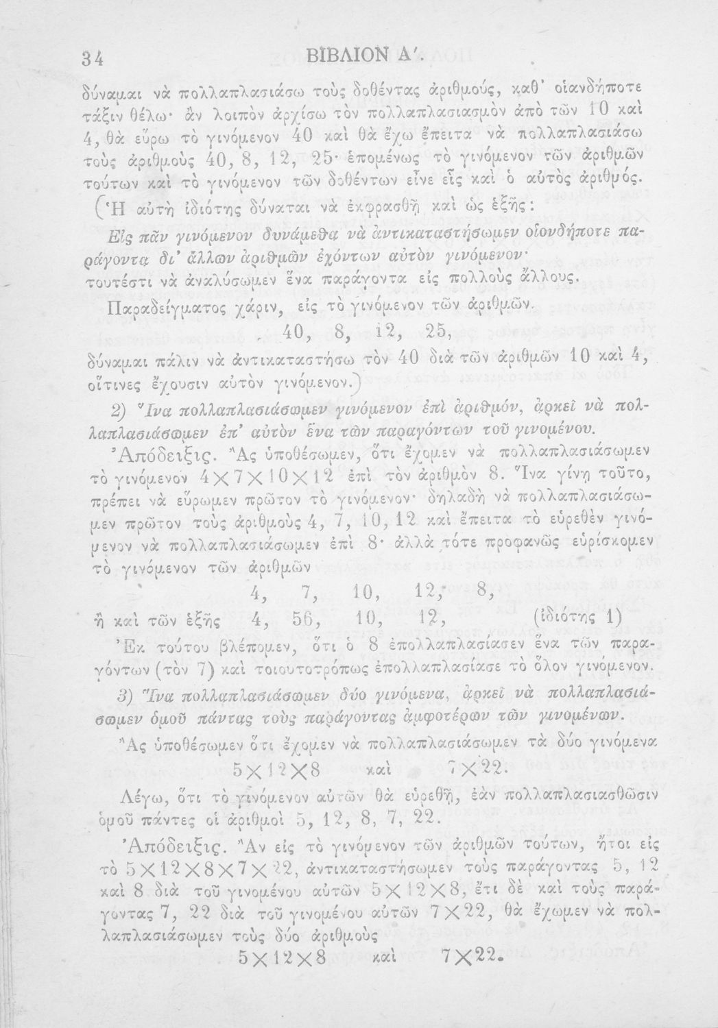 Σχολικό εγχειρίδιο Αριθμητικής Γυμνασίου που είναι χωρισμένο σε θεωρήματα και ασκήσεις και εστιάζει στις αριθμητικές πράξεις και τις ιδιότητές τους.