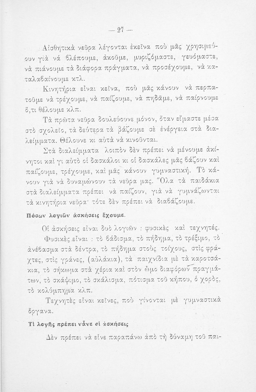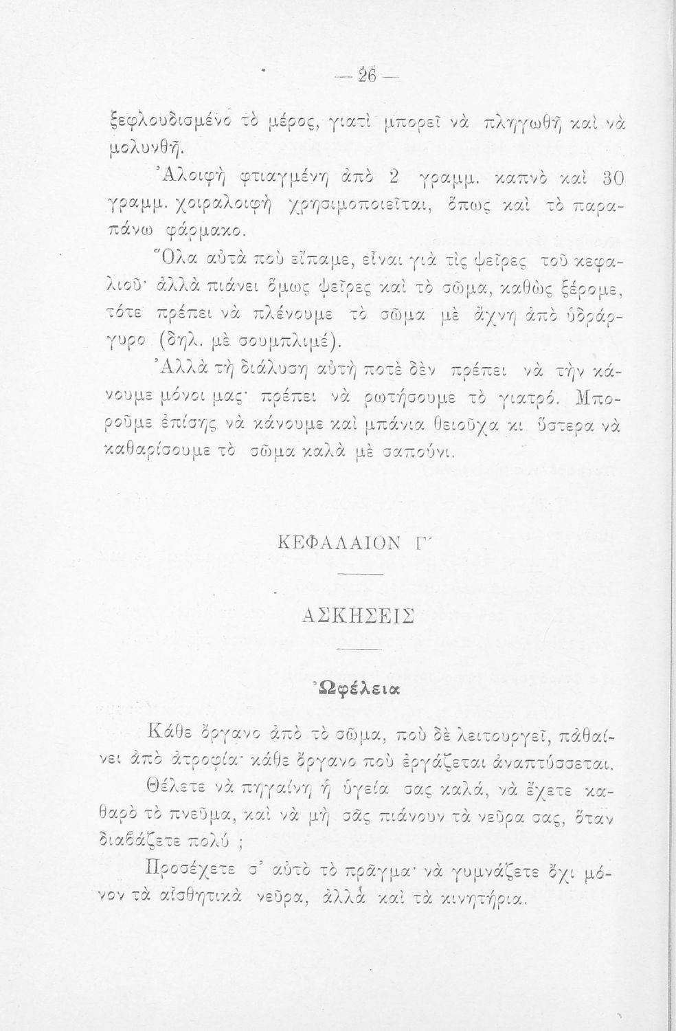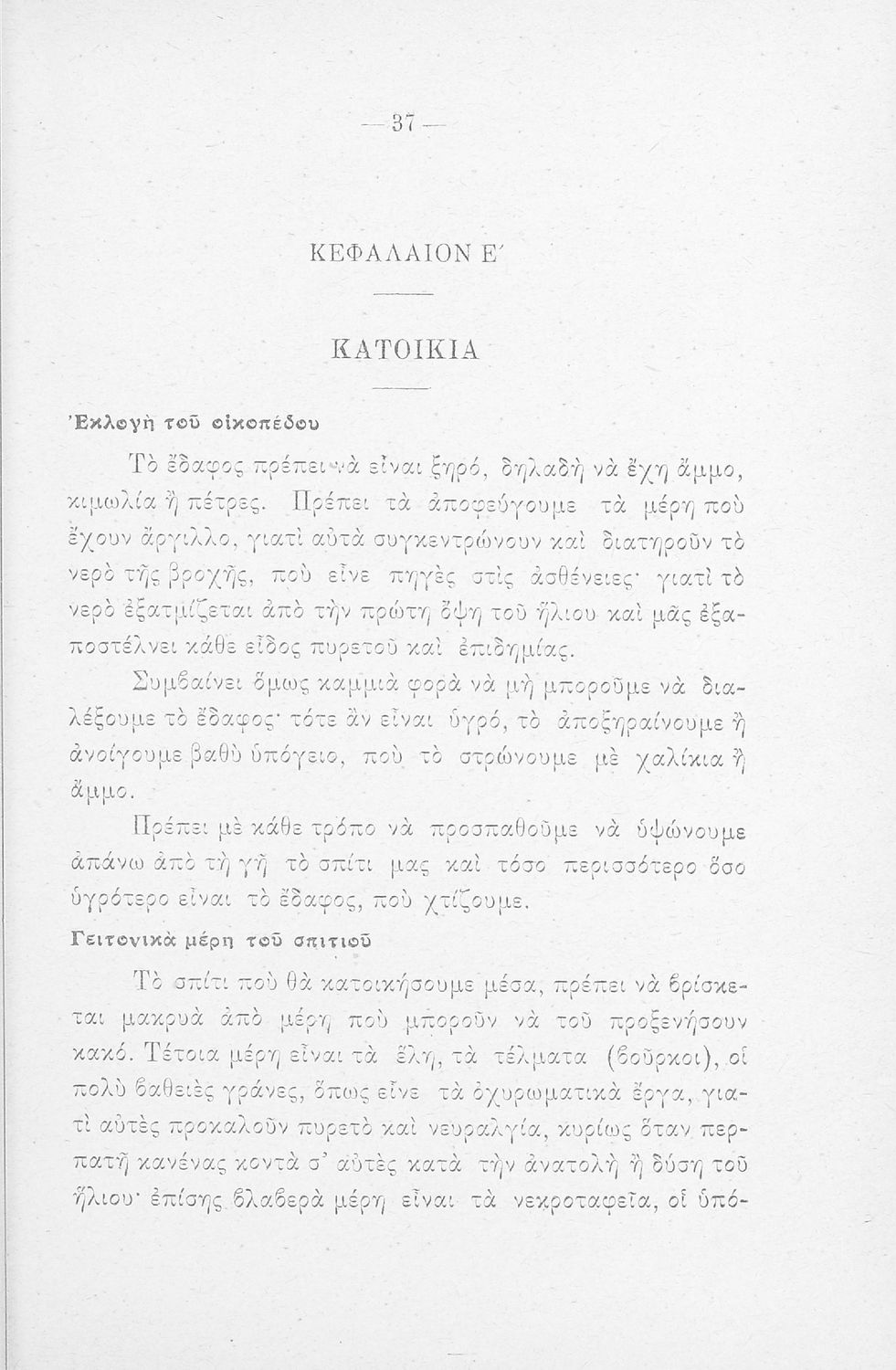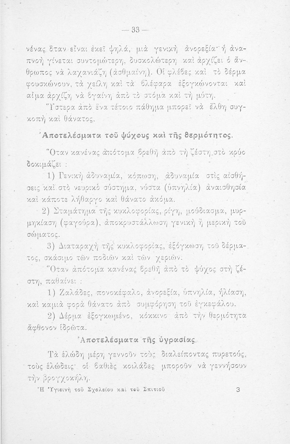 Επιστημονικό σύγγραμμα με εκτενείς αναφορές στην σχετική ξενόγλωσση βιβλιογραφία που πραγματεύεται ζητήματα υγιεινής των σχολικών κτηρίων και της διδασκαλίας και ιατρικής εποπτείας.