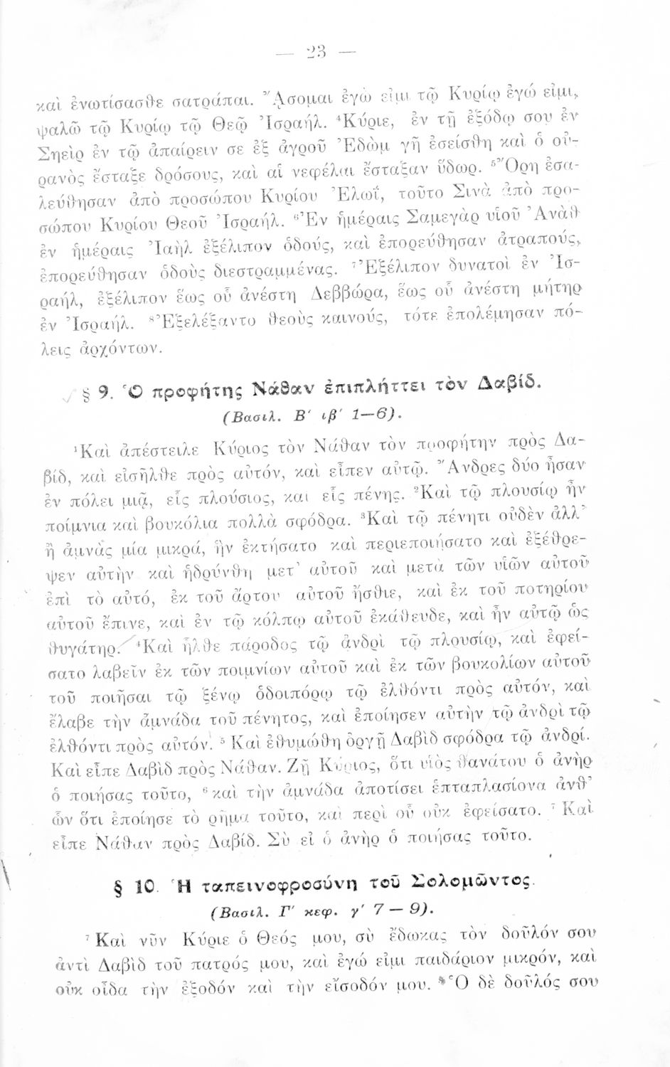 Βαθμίδα εκπαίδευσης: Δευτεροβάθμια Τάξη: Δ' Γυμνασίου Μάθημα: Θρησκευτικά Γλώσσα: Καθαρεύουσα Παρουσίαση περιεχομένου: Σχολικό εγχειρίδιο Θρησκευτικών Δ' Γυμνασίου που περιέχει ιστορικές, ποιητικές, προφητικές και χριστολογικές περικοπές από την Παλαιά Διαθήκη και ερμηνευτικές σημειώσεις. Περιέχει και σύντομη ιστορία του Ισραηλίτικου λαού. |