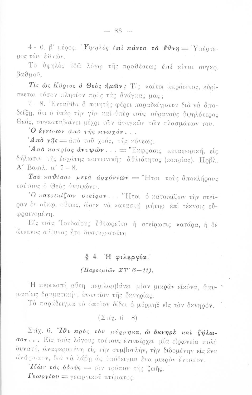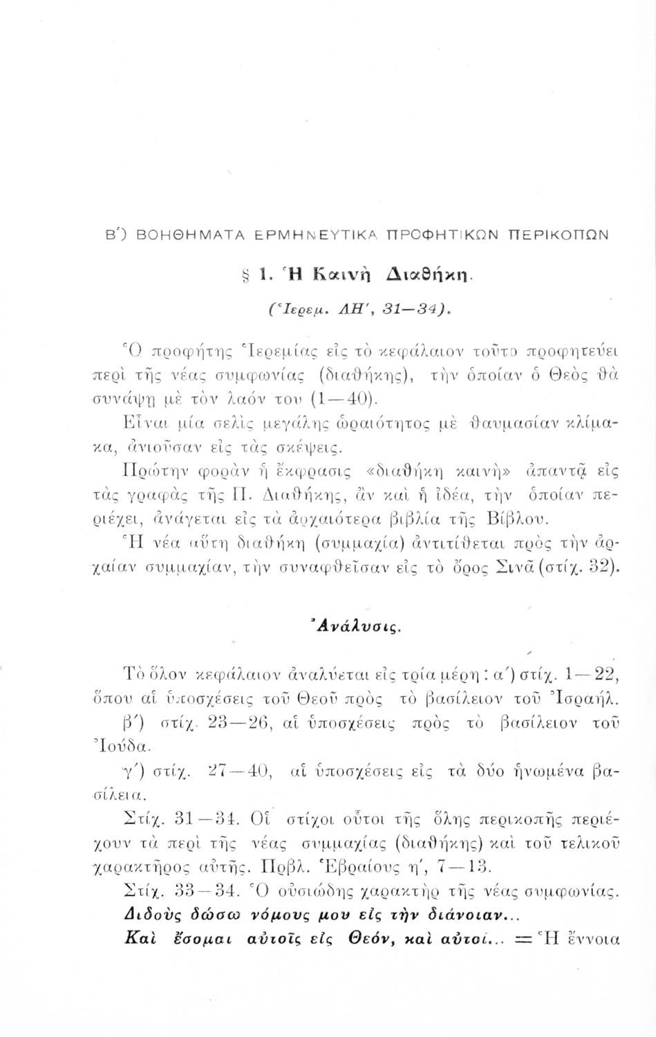 Βαθμίδα εκπαίδευσης: Δευτεροβάθμια Τάξη: Δ' Γυμνασίου Μάθημα: Θρησκευτικά Γλώσσα: Καθαρεύουσα Παρουσίαση περιεχομένου: Σχολικό εγχειρίδιο Θρησκευτικών Δ' Γυμνασίου που περιέχει ιστορικές, ποιητικές, προφητικές και χριστολογικές περικοπές από την Παλαιά Διαθήκη και ερμηνευτικές σημειώσεις. Περιέχει και σύντομη ιστορία του Ισραηλίτικου λαού. |