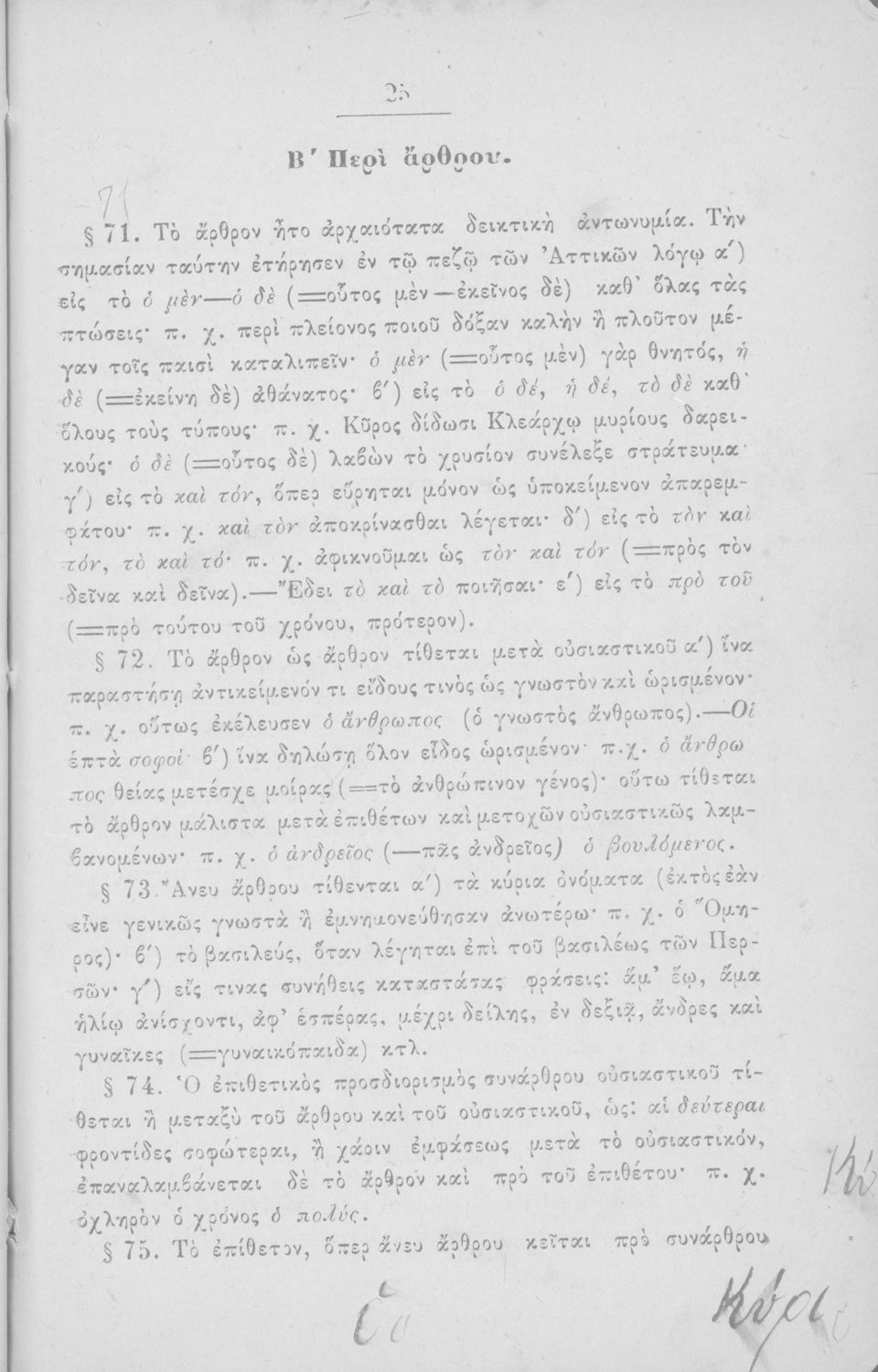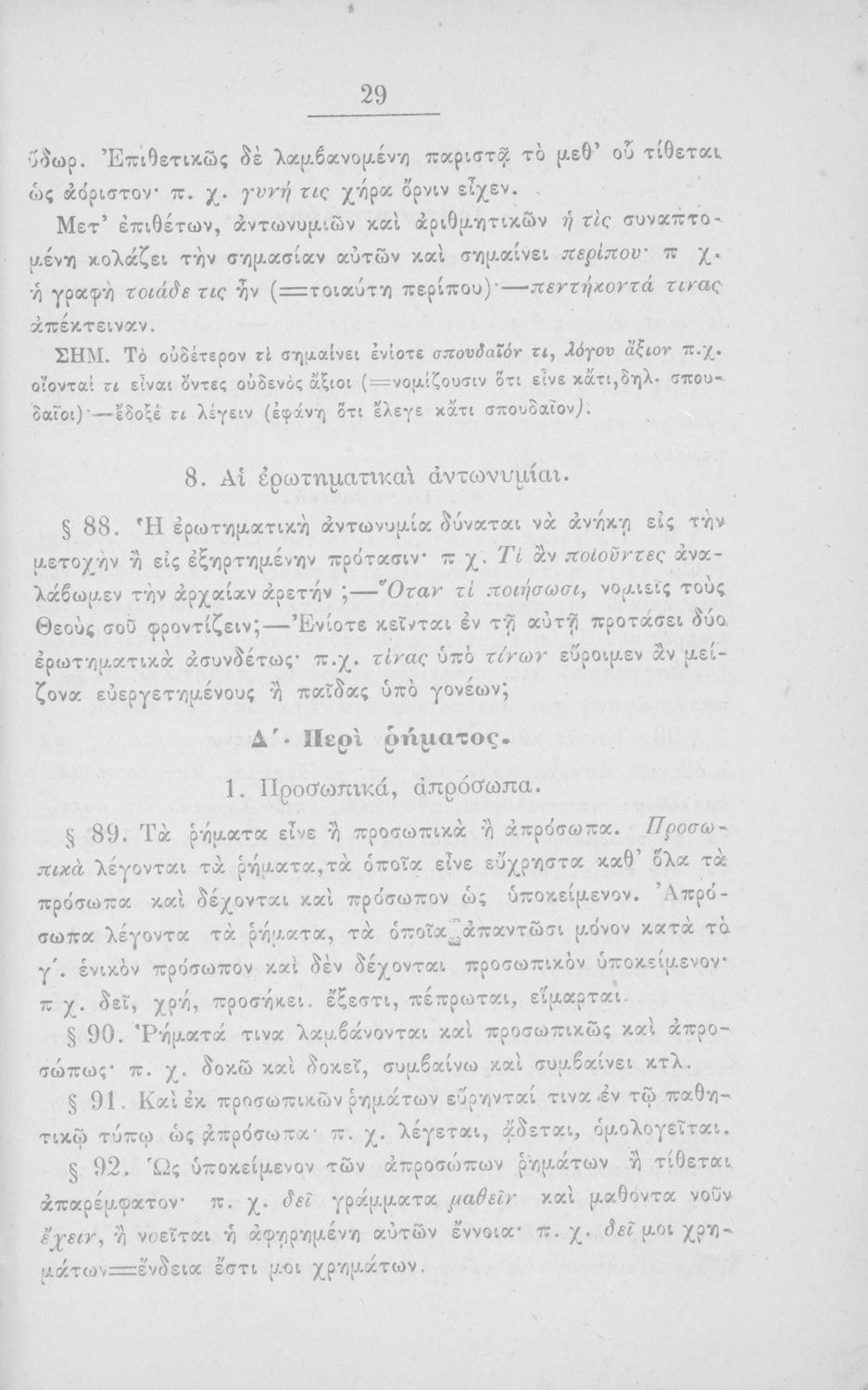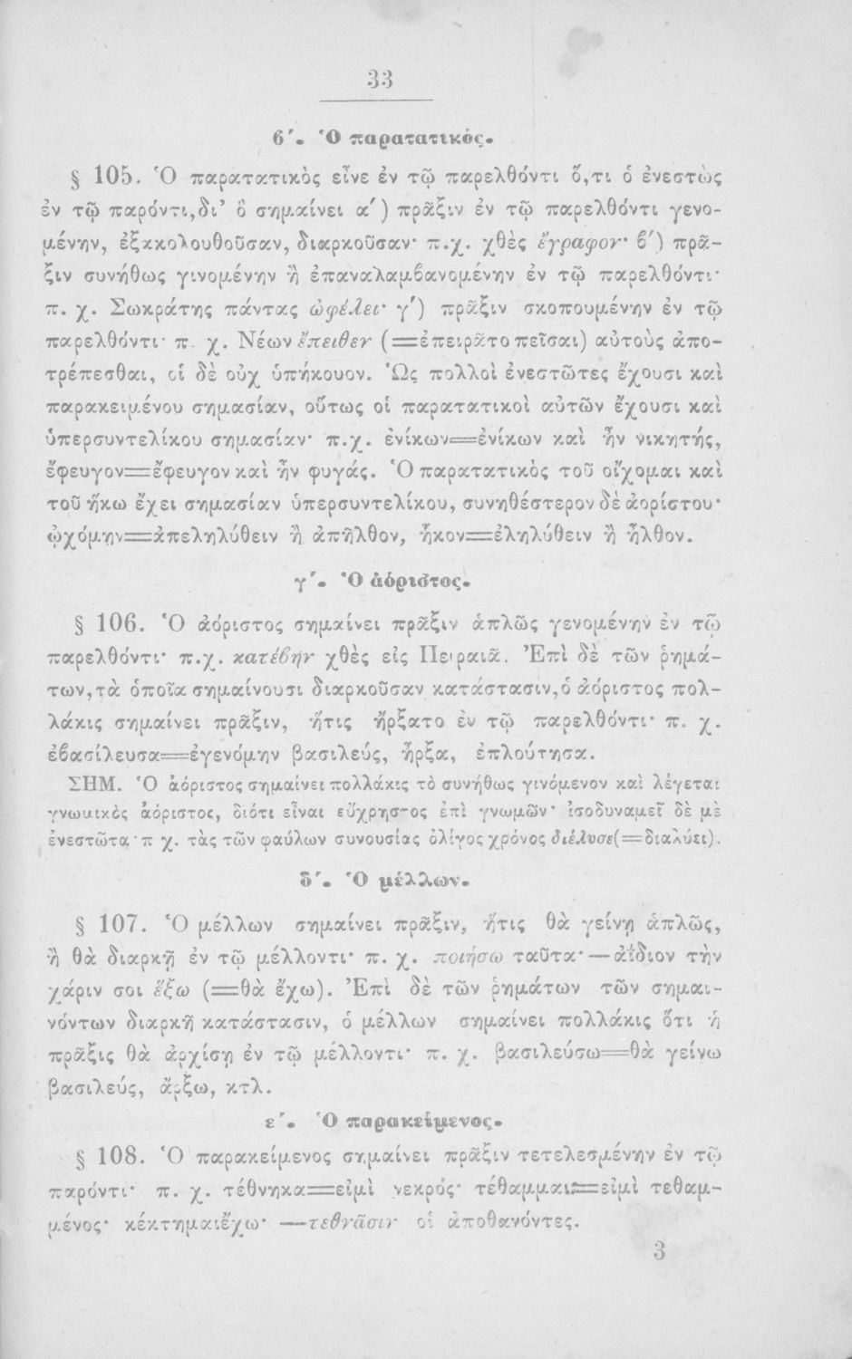 Σχολικό εγχειρίδιο Αρχαίων Ελληνικών για τα Ελληνικά Σχολεία και Παρθεναγωγεία που περιέχει τους κανόνες γραμματικής και είναι χωρισμένο σε φθογγολογικό, τυπολογικό και ετυμολογικό μέρος.