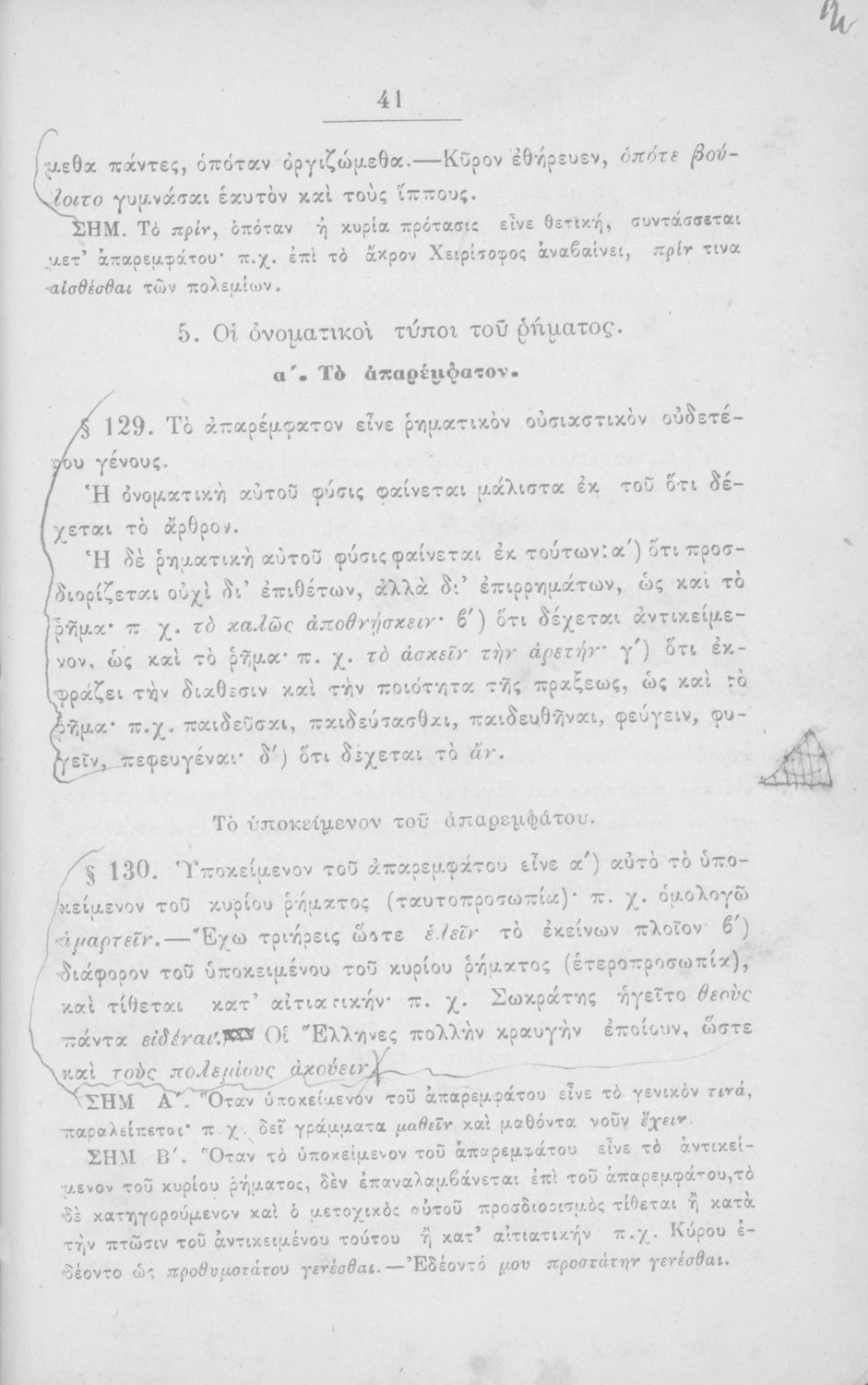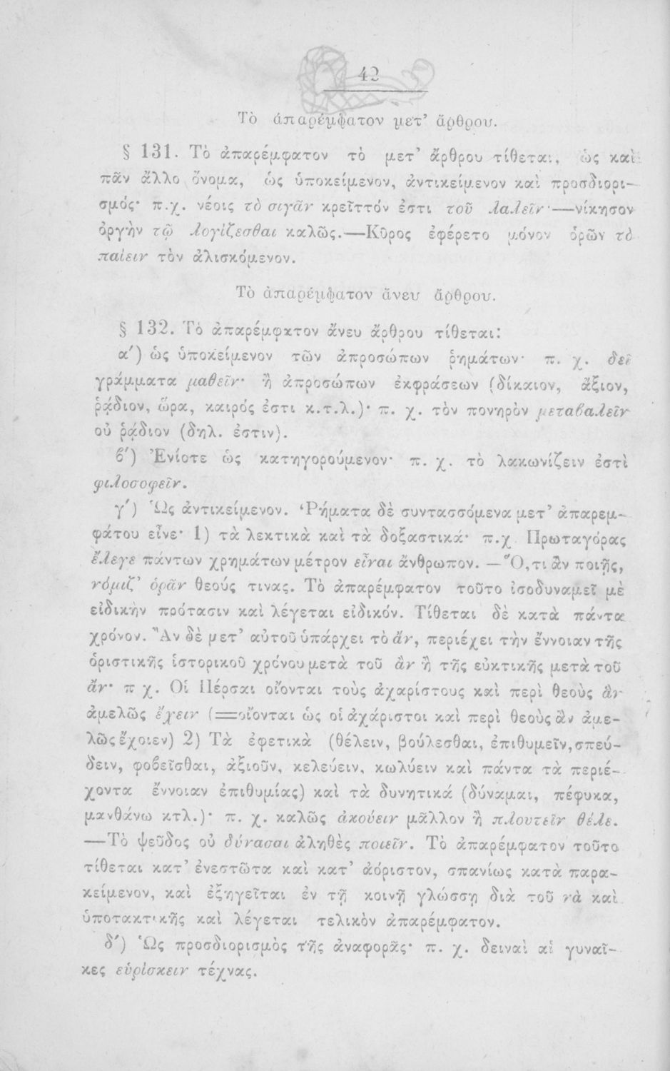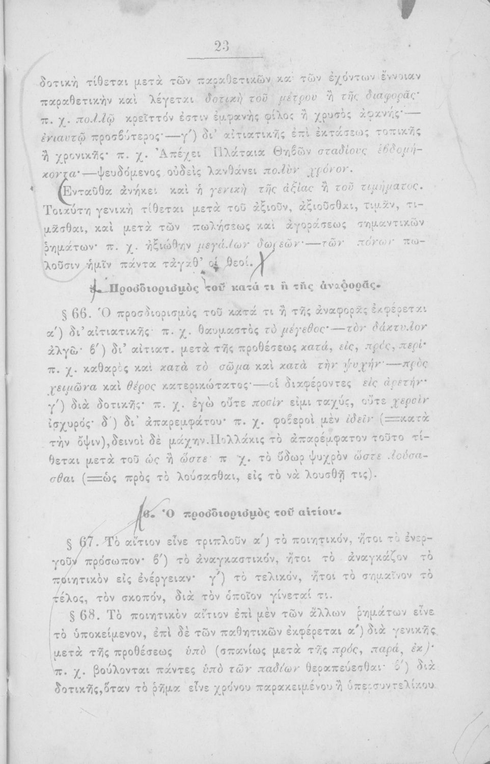 Σχολικό εγχειρίδιο Αρχαίων Ελληνικών για τα Ελληνικά Σχολεία και Παρθεναγωγεία που περιέχει τους κανόνες γραμματικής και είναι χωρισμένο σε φθογγολογικό, τυπολογικό και ετυμολογικό μέρος.