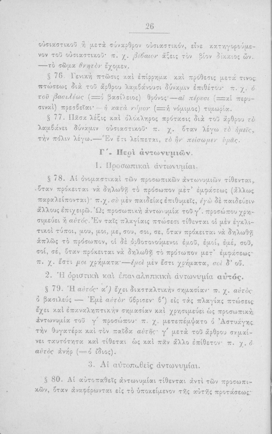 Σχολικό εγχειρίδιο Αρχαίων Ελληνικών για τα Ελληνικά Σχολεία, Παρθεναγωγεία και Γυμνάσια που περιέχει τους κανόνες γραμματικής και είναι χωρισμένο σε φθογγολογικό, τυπολογικό και ετυμολογικό μέρος.