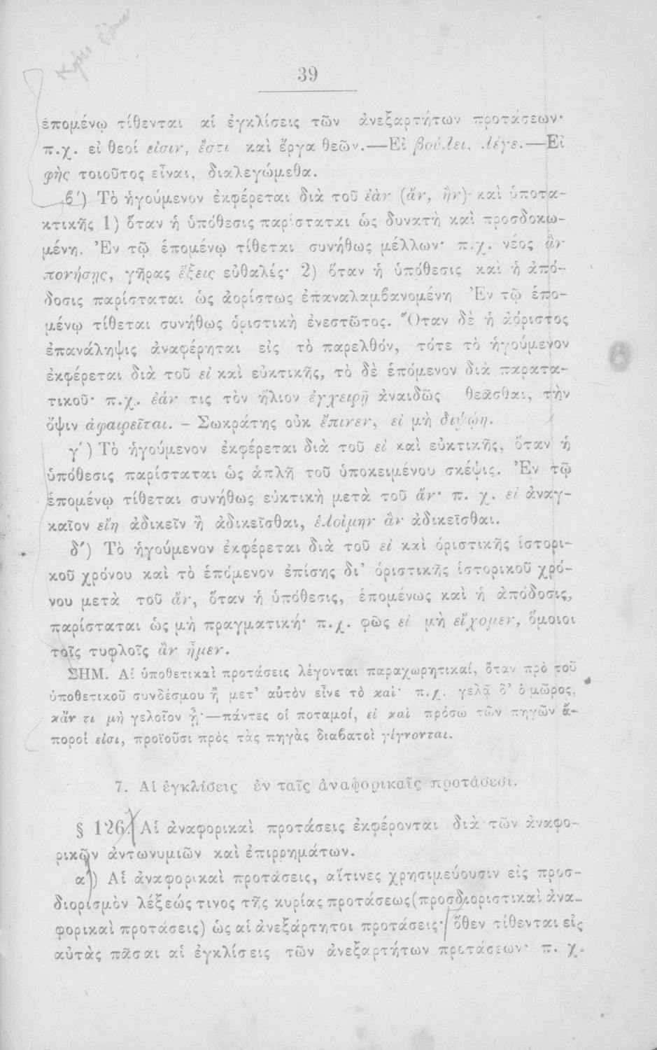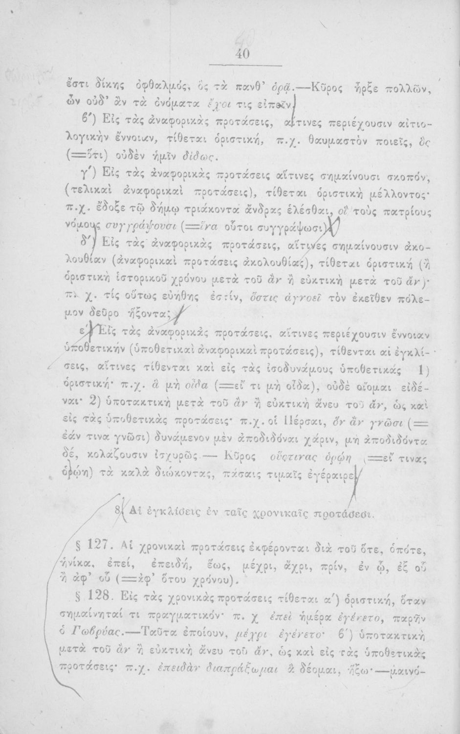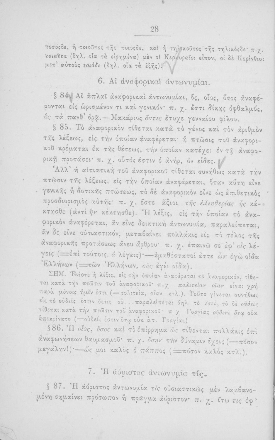 Σχολικό εγχειρίδιο Αρχαίων Ελληνικών για τα Ελληνικά Σχολεία και τα Ανώτερα Παρθεναγωγεία που εξετάζει τα μέρη του λόγου και την σύνταξή τους.