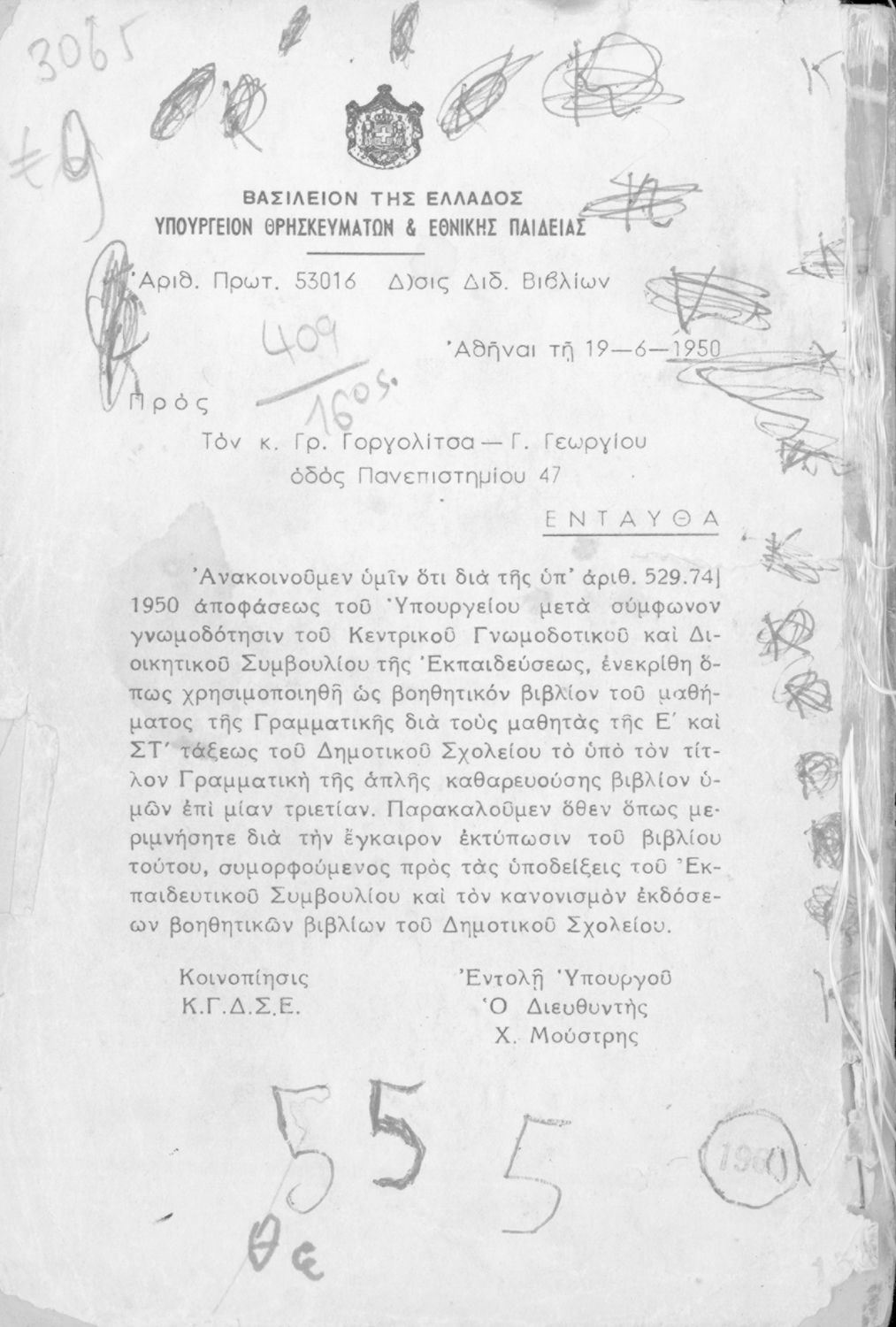 Γραμματική της καθαρευούσης διά τους μαθητάς Ε' και ΣΤ΄ τάξεως Δημοτικών Σχολείων