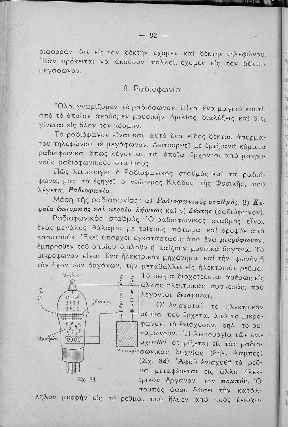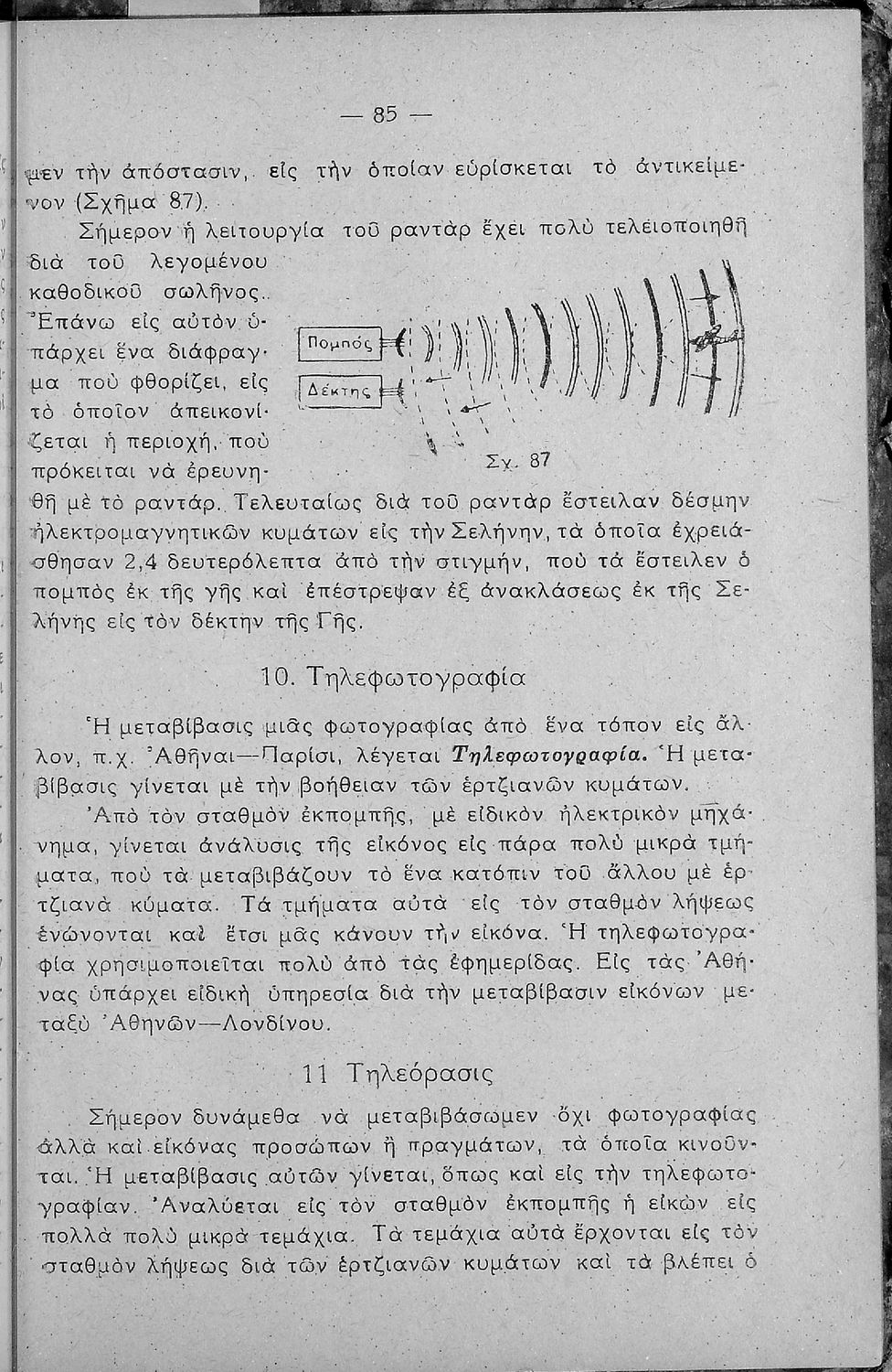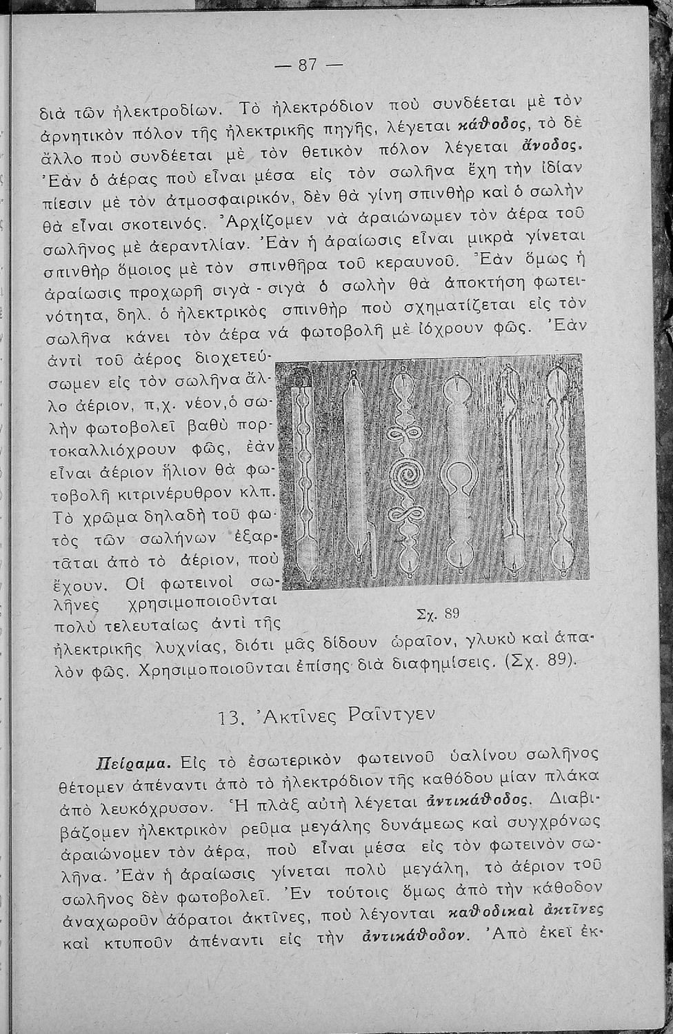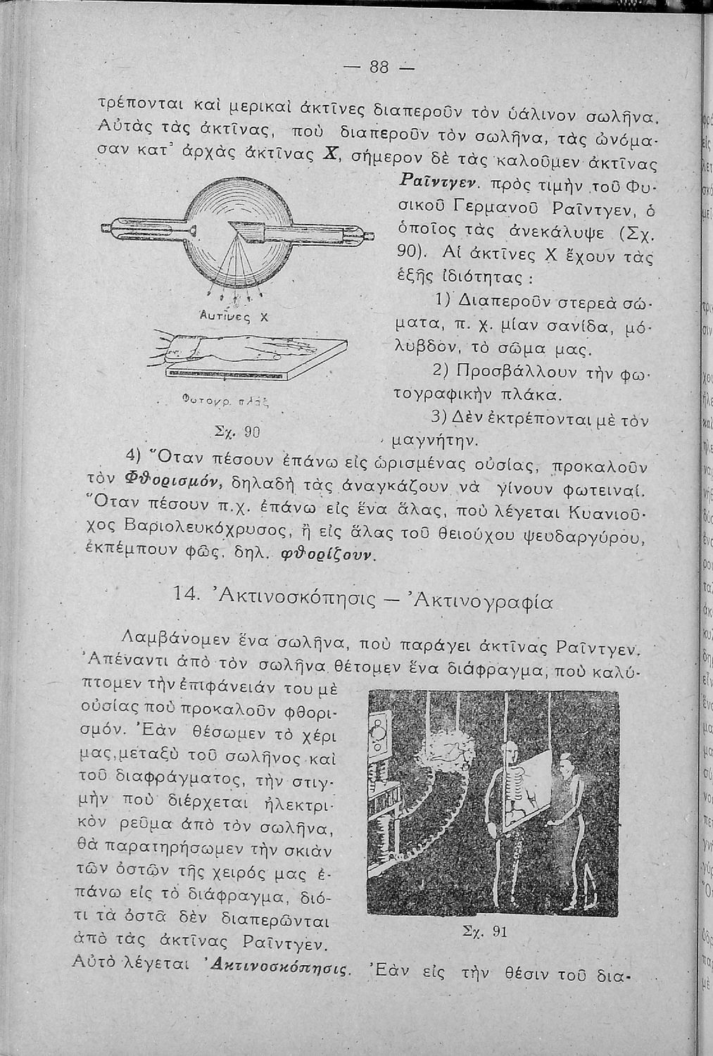 Παρουσίαση περιεχομένου: Το σύγγραμμα ήταν μαθητικό βοήθημα για το μάθημα της Φυσικής στο Δημοτικό . Παρέχει βασικές γνώσεις της φυσικής επιστήμης και της χημείας. Αναλύει τις ιδιότητες των σωμάτων, καθώς και της οπτικής, ακουστικής, της θερμότητας, του ηλεκτρισμού και του μαγνητισμού, την υδροστατική, την βαρύτητα και την αεροστατική. Σχετικά με τη χημεία αναφέρεται στα μέταλλα, στα οξέα, τις βάσεις, τα άλατα. Αναφέρεται στην πρακτική εφαρμογή της φυσικής και της χημείας στην καθημερινότητά. Επίσης, περιλαμβάνει πολλά από τα όργανα, που χρησιμοποιούνται στη φυσική, και τη χημεία. Περιέχει εικόνες και σχεδιαγράμματα τα οποία βοηθούν τη διδασκαλία. Προτείνεται μια συγκεκριμένη δομή για τη διδασκαλία σύμφωνα με την οποία το μάθημα διαρθρώνεται αρχικά με την ανάγνωση, που αναφέρεται στη θεωρία, στην περίληψη των σημαντικότερων σημείων, στις ερωτήσεις κατανόησης και τέλος στο γύμνασμα, το οποίο είναι η πρακτική εφαρμογή για την εμπέδωση της θεωρίας.