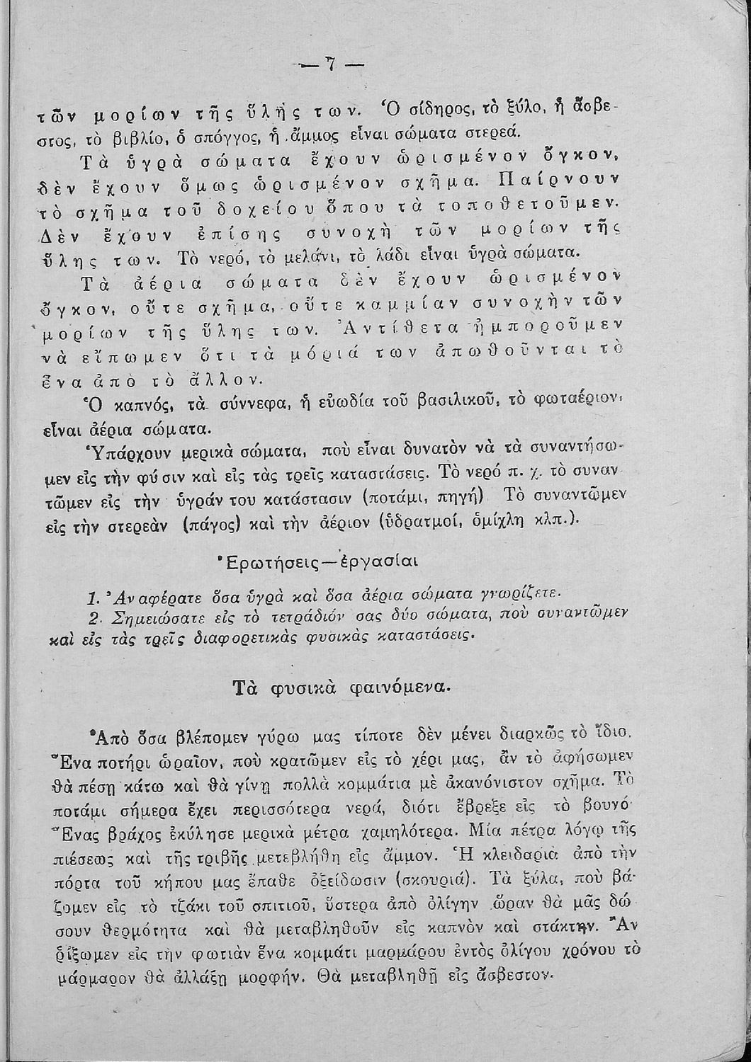 Σχολικό εγχειρίδιο της Ε΄ και ΣΤ΄ Τάξης των Δημοτικών Σχολείων και την Α΄ Τάξη των Οκτατάξιων Γυμνασίων, Προγυμνασίων και Αστικών Σχολείων για το μάθημα της Φυσικής. Παρέχει βασικές γνώσεις της φυσικής ...