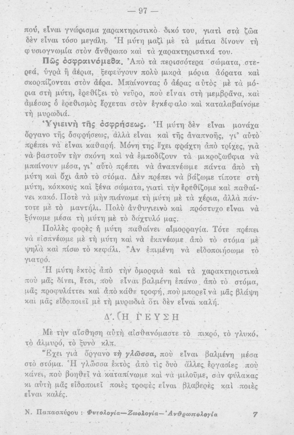Φυτολογία- Ζωολογία Ανθρωπολογία, Τάξη έκτη και 2ον έτος Ε΄ και ΣΤ΄