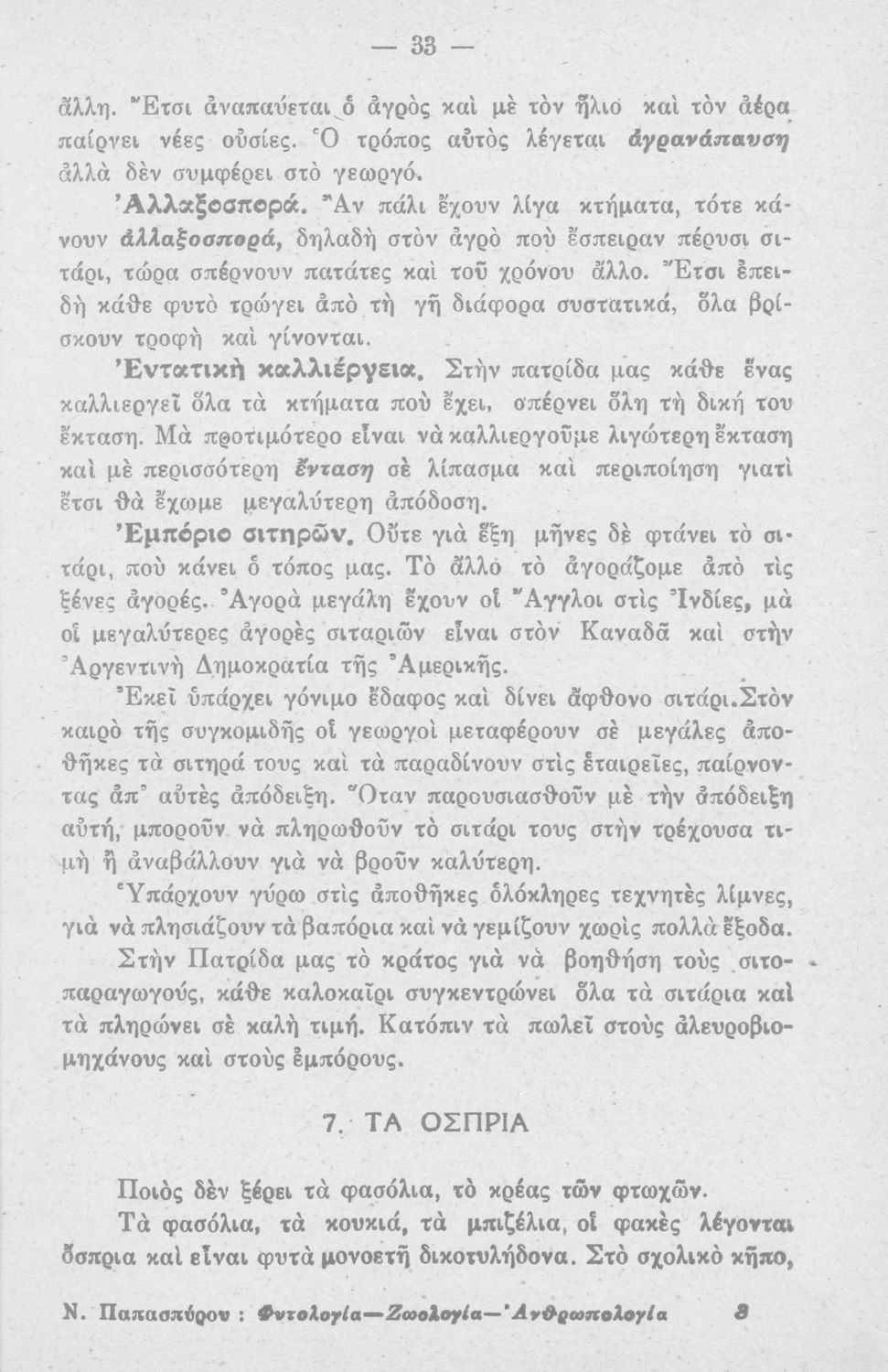 Κωδικός αναγνώρισης: 01-45247 Τίτλος: Φυτολογία- Ζωολογία Ανθρωπολογία, Τάξη έκτη και 2ον έτος Ε΄ και ΣΤ΄ Συγγραφέας: Νικόλαος Παπασπύρος Μέγεθος και υπόστρωμα: Μαθητικό βοήθημα, σκληρό εξώφυλλο, 128 σελίδες. Εικόνες (ασπρόμαυρες), σκίτσα (ασπρόμαυρα). |