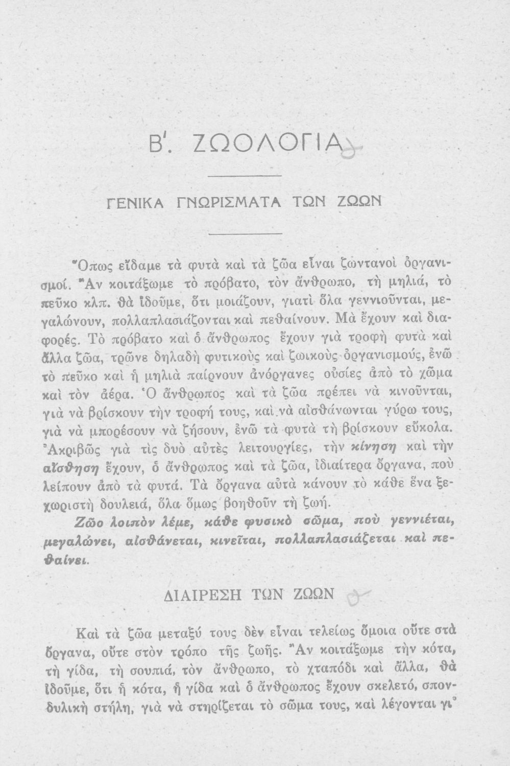 Φυτολογία- Ζωολογία Ανθρωπολογία, Τάξη έκτη και 2ον έτος Ε΄ και ΣΤ΄